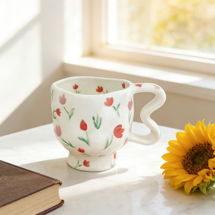 陶瓷杯 手捏小花