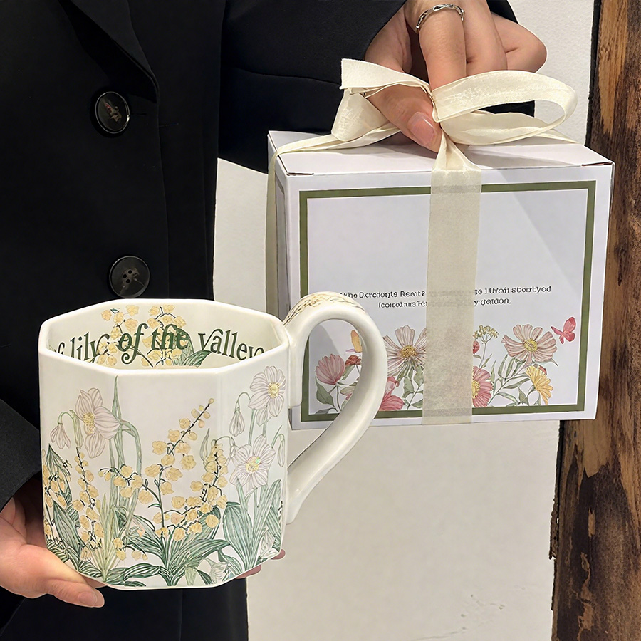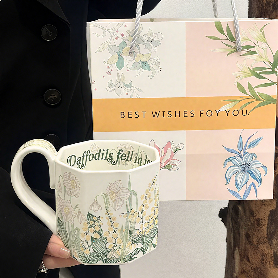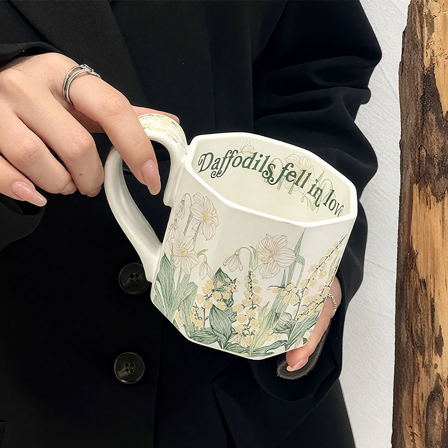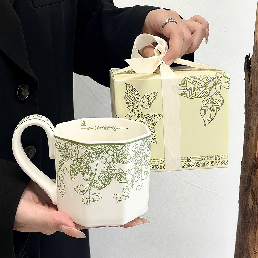 陶瓷杯 浮雕碎花