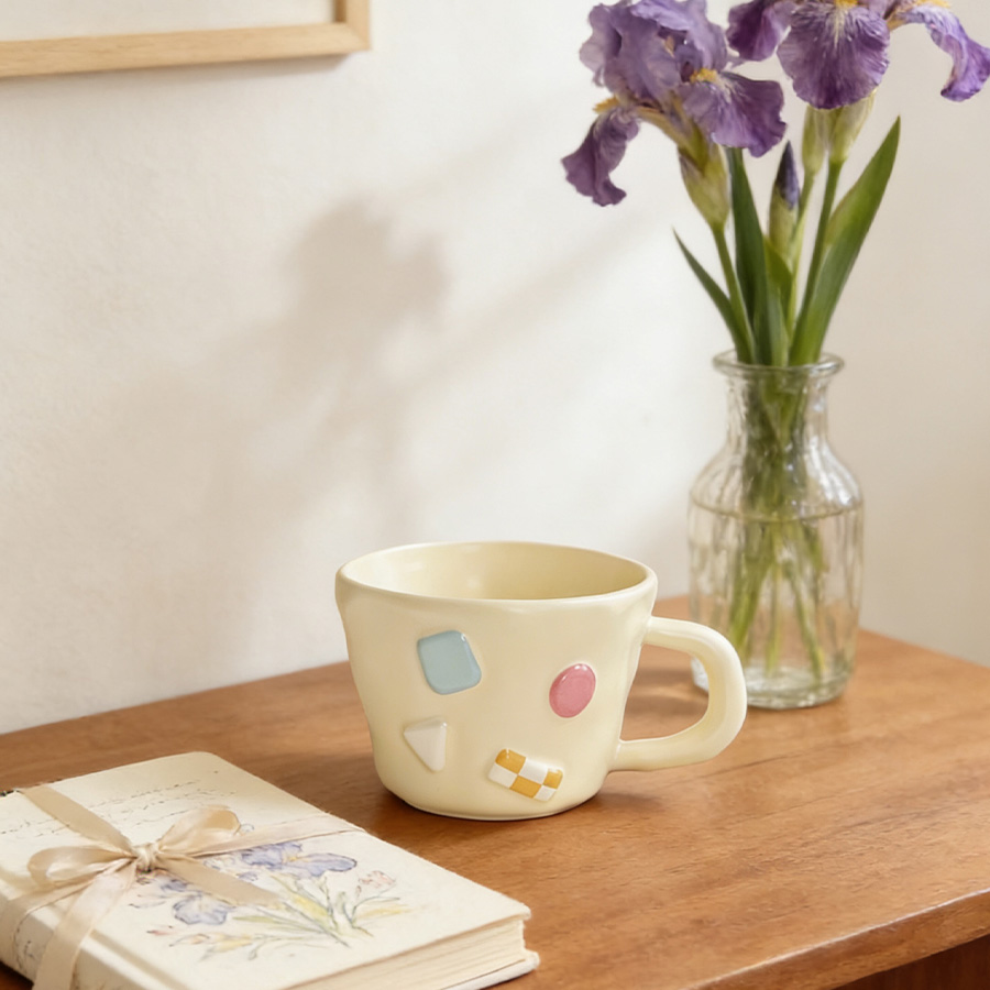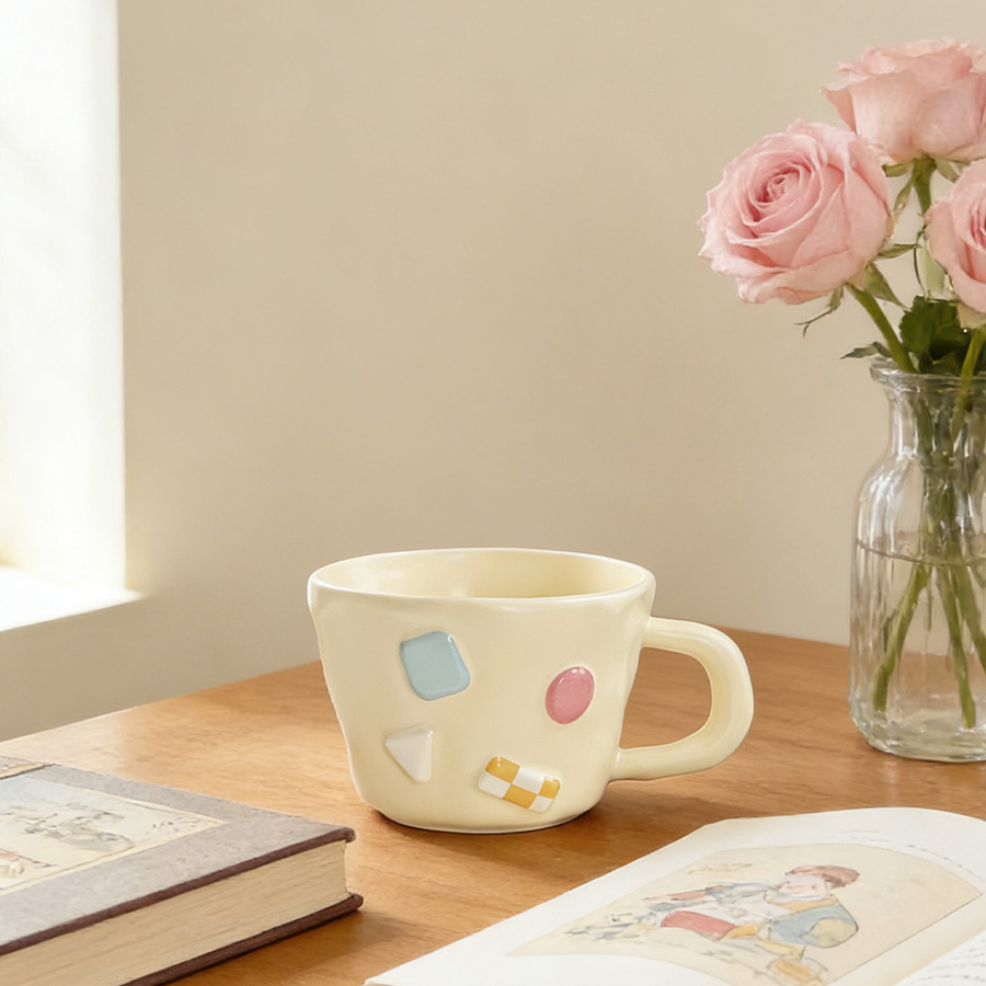 陶瓷杯 浮雕碎花