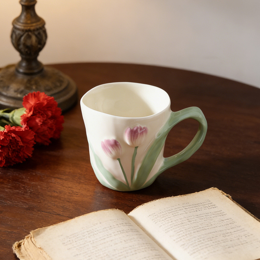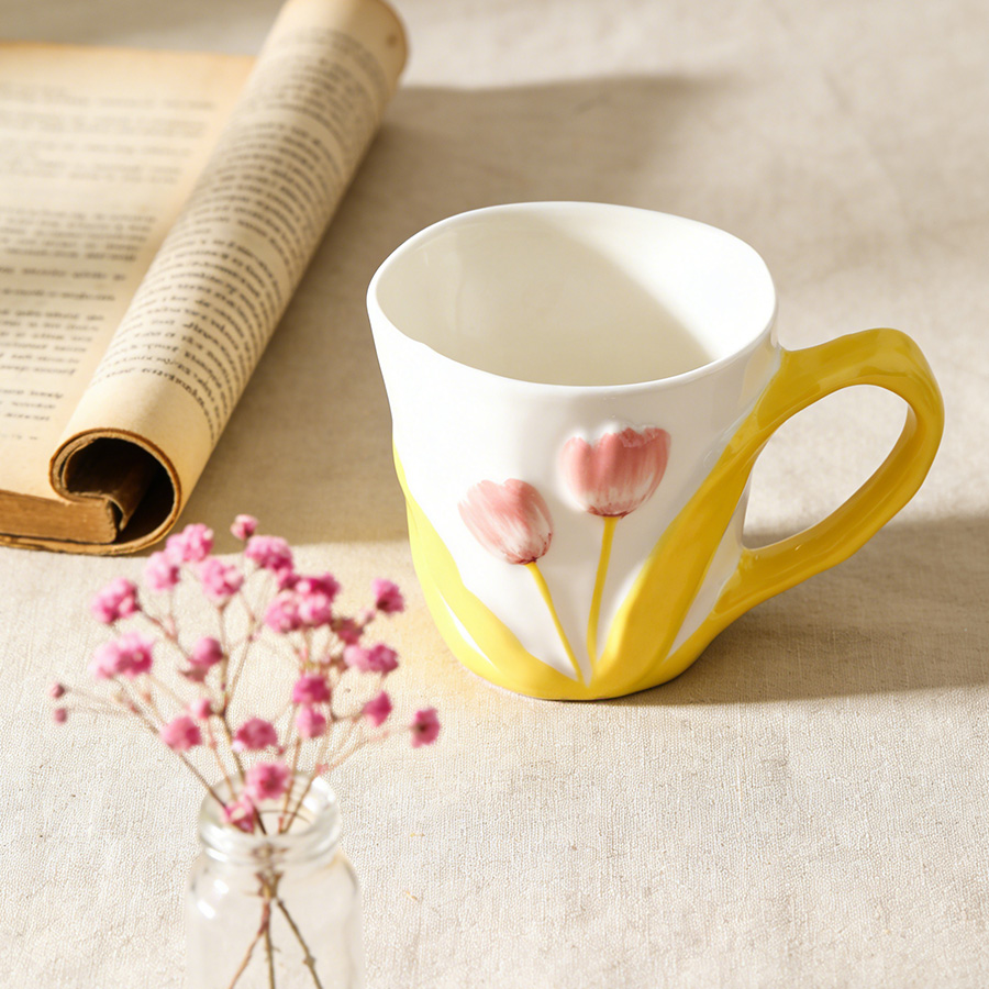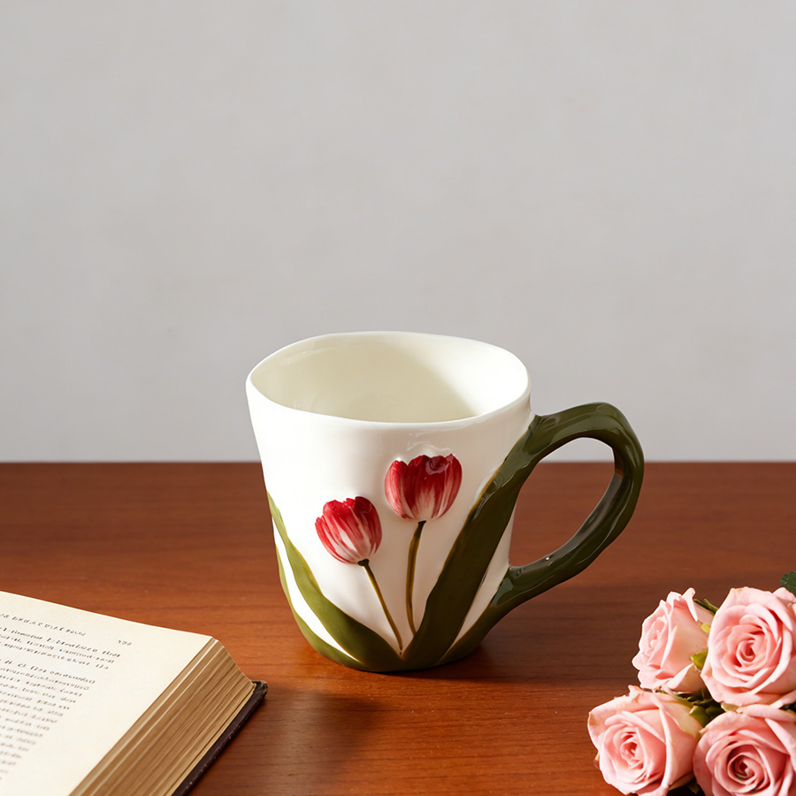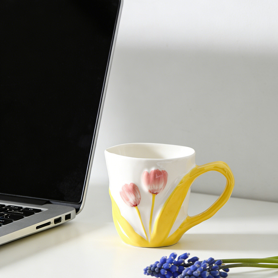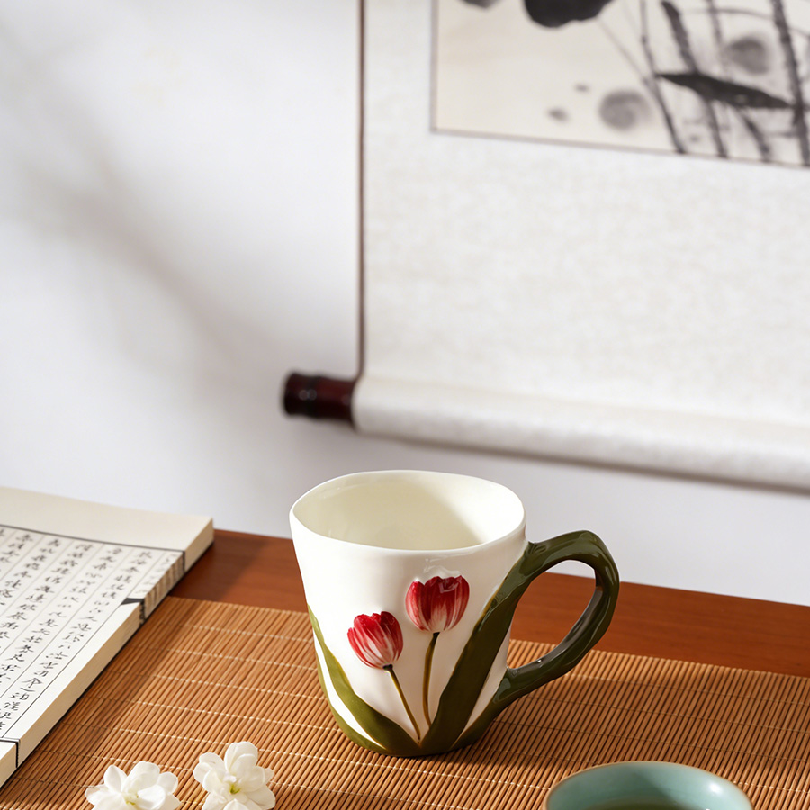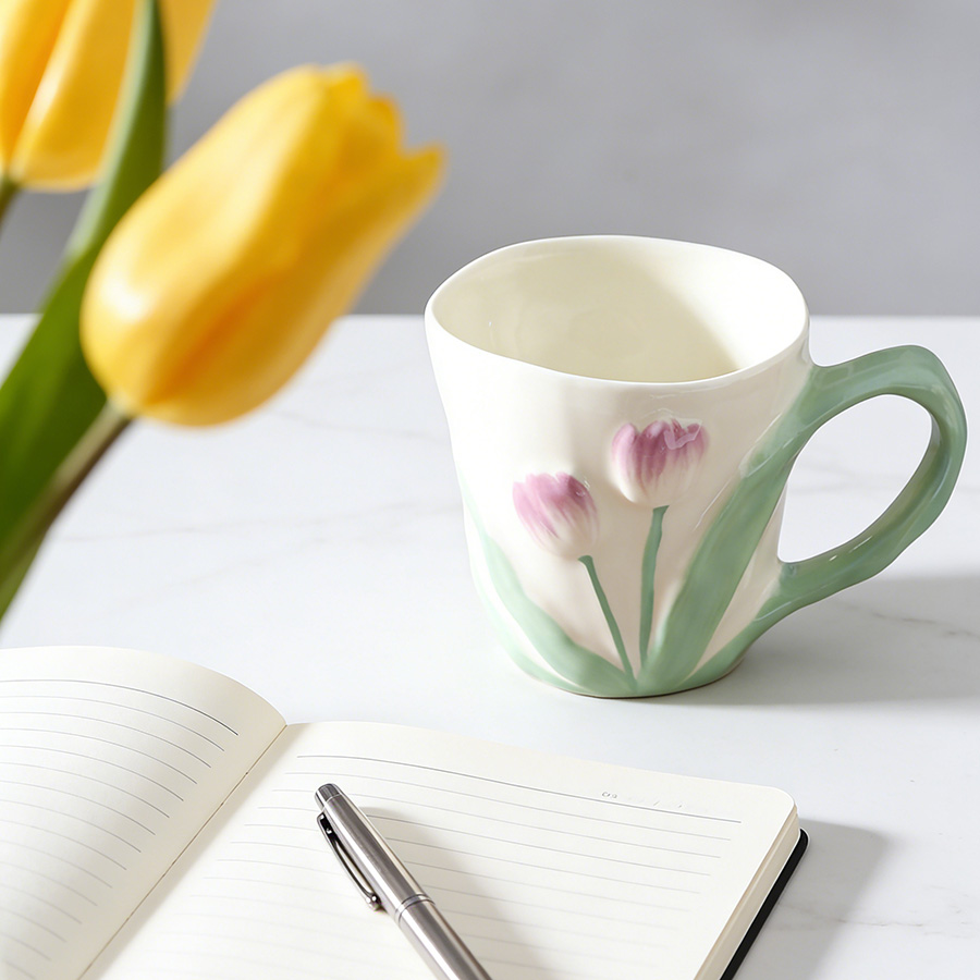 陶瓷杯 郁金香把手