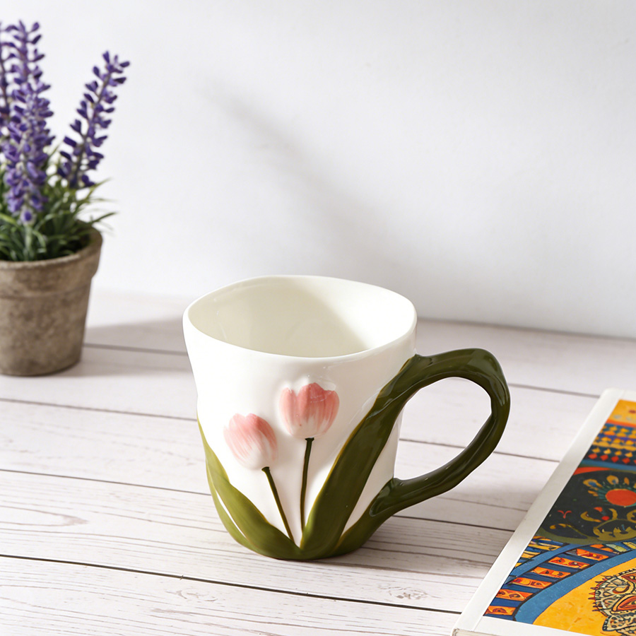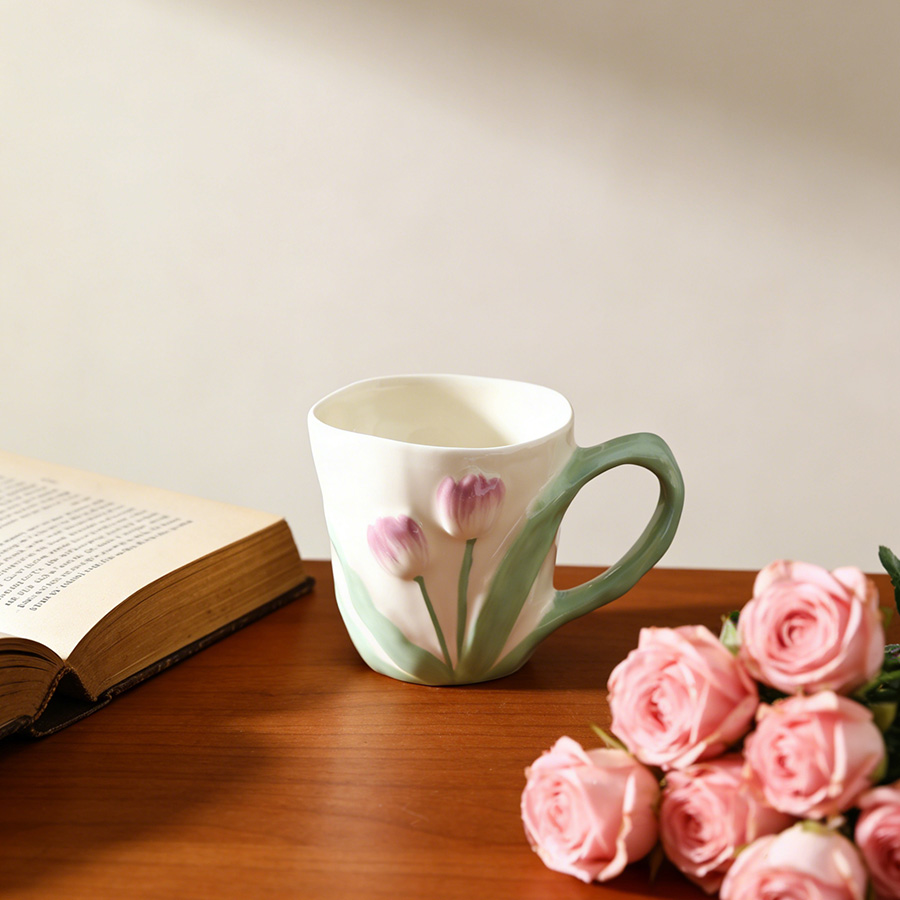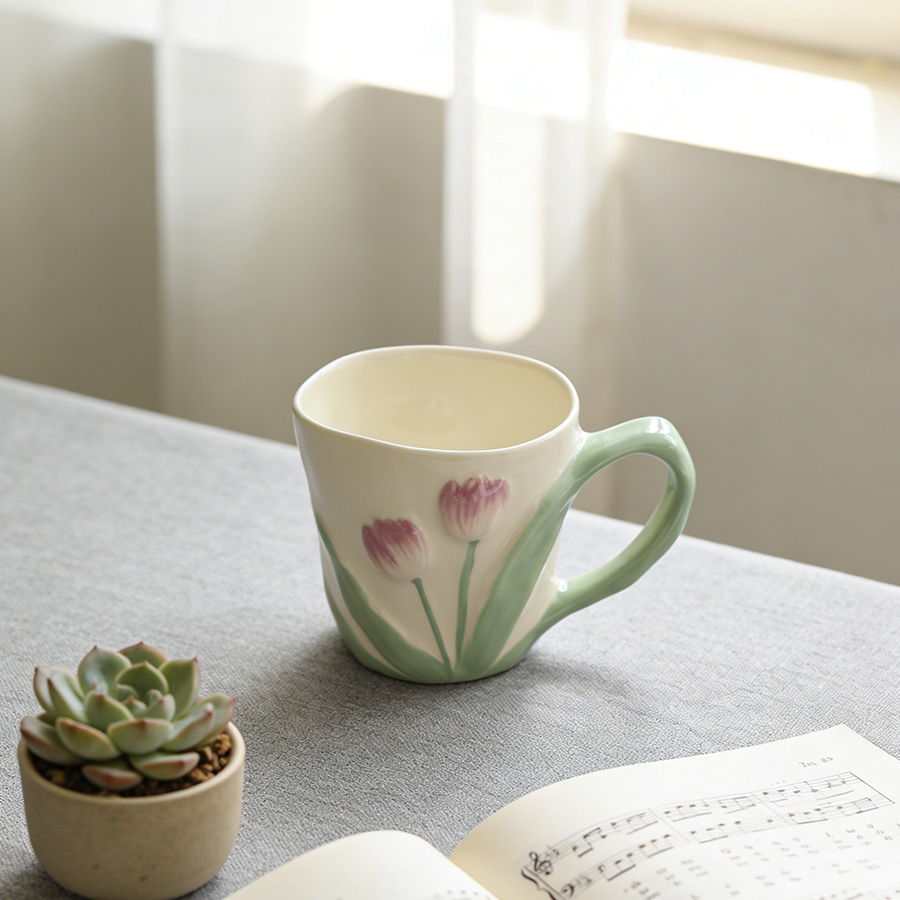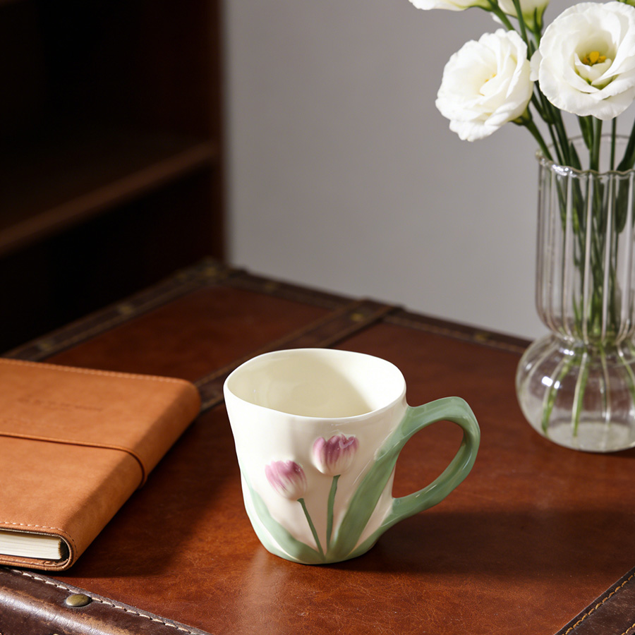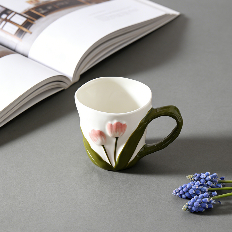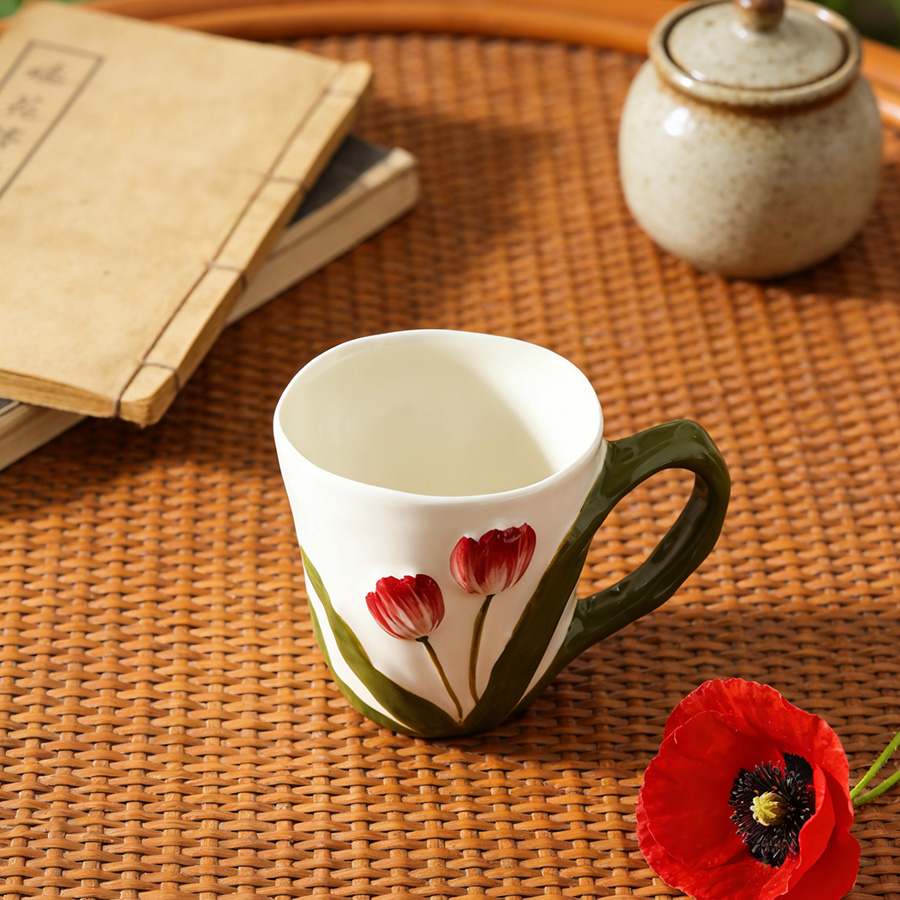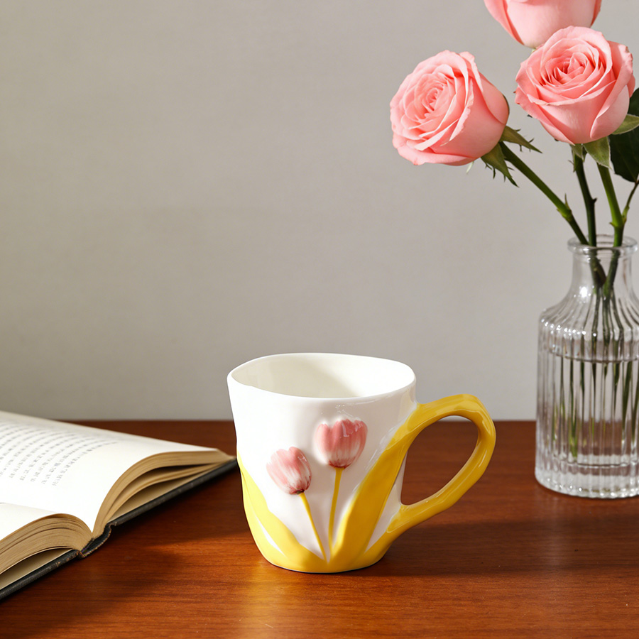陶瓷杯 郁金香把手
