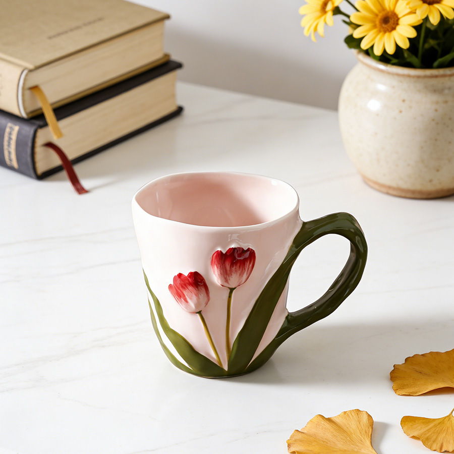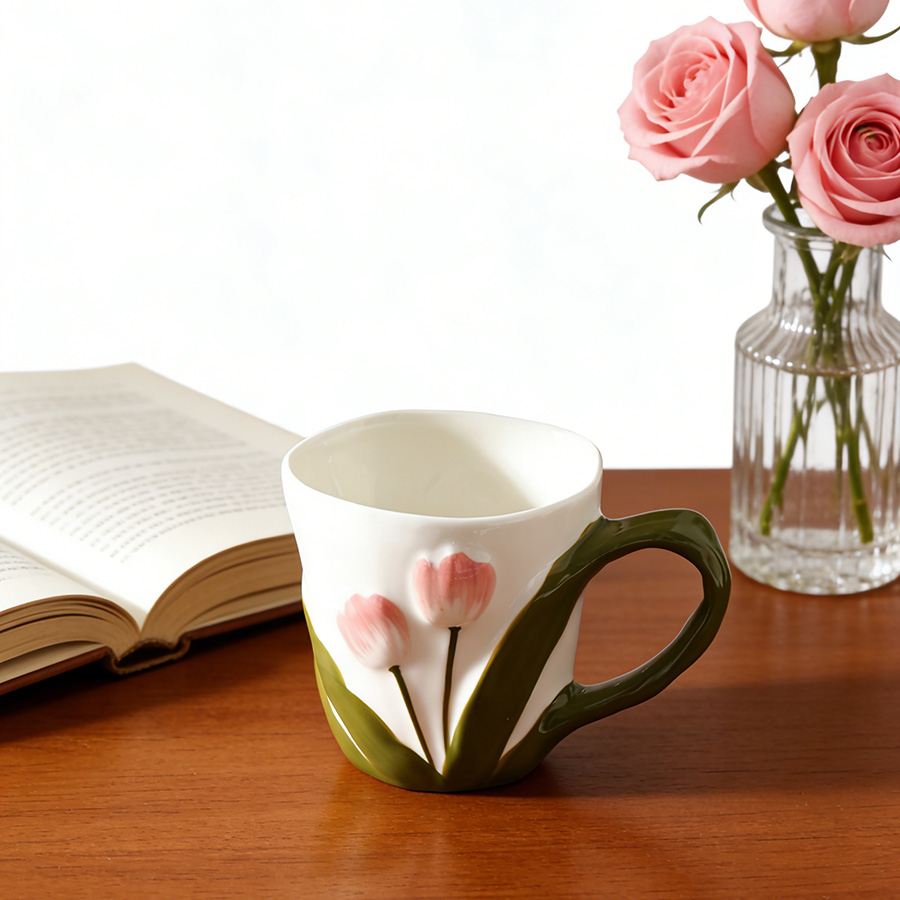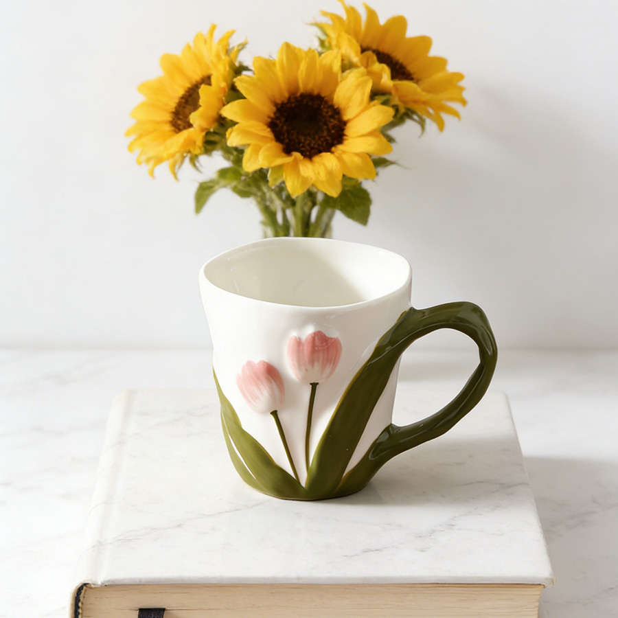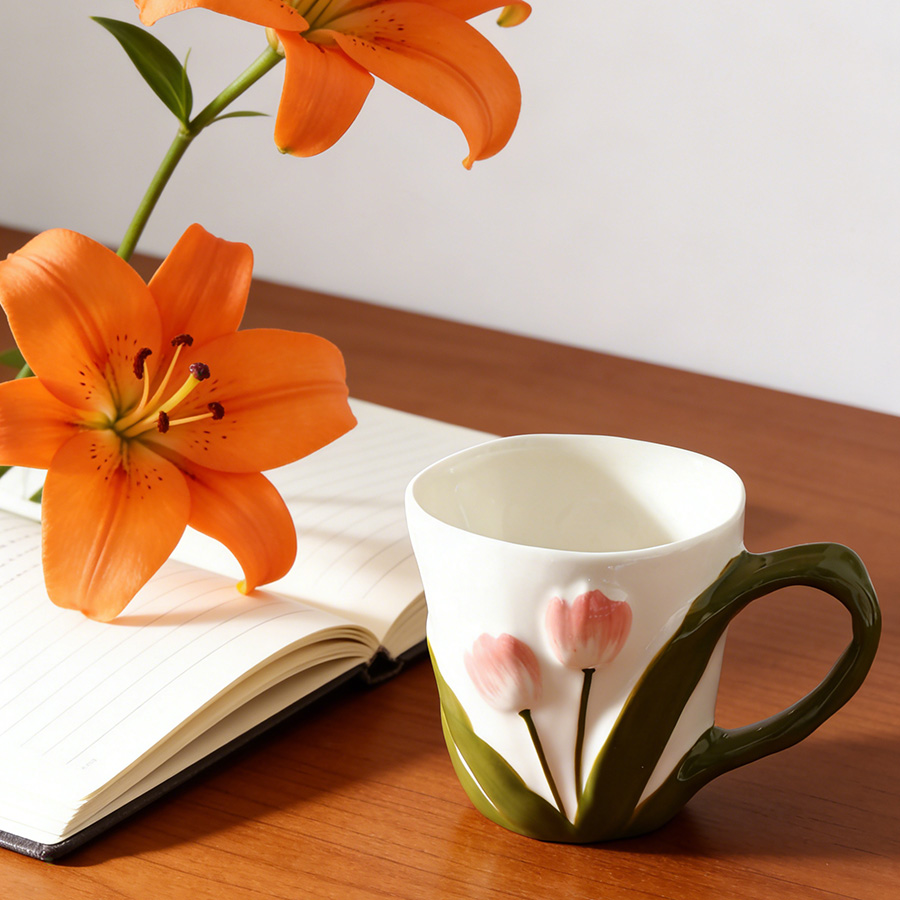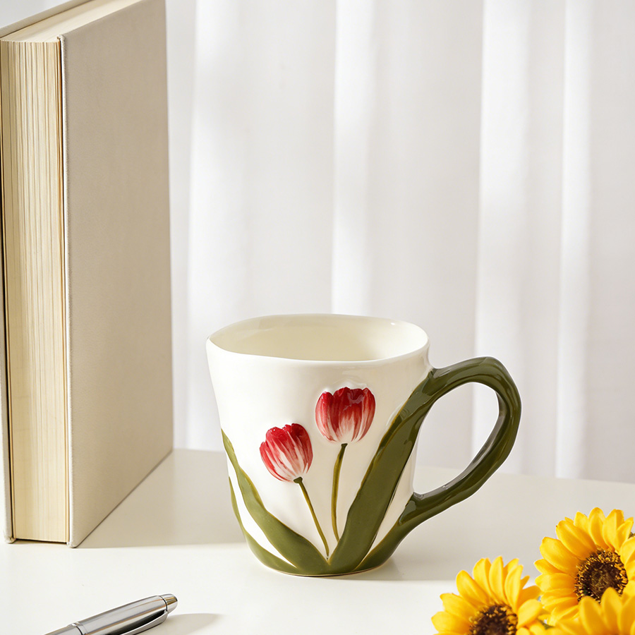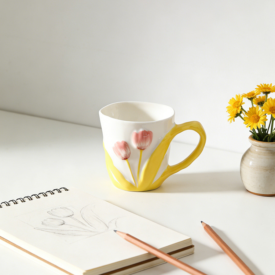 陶瓷杯 郁金香把手