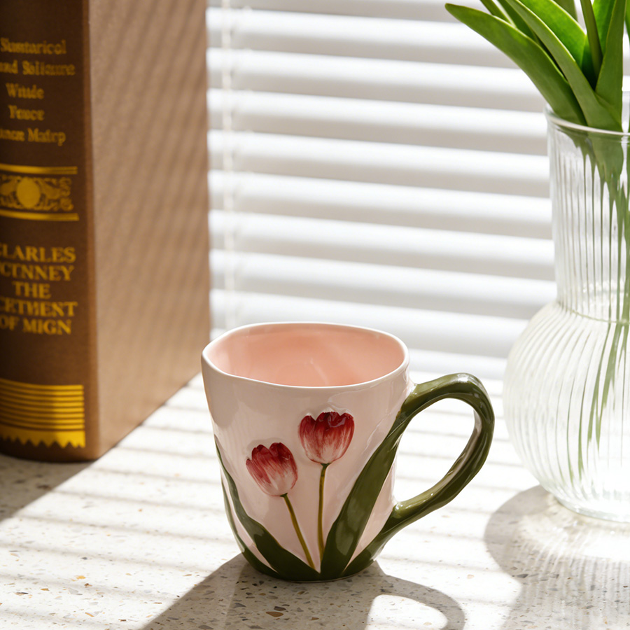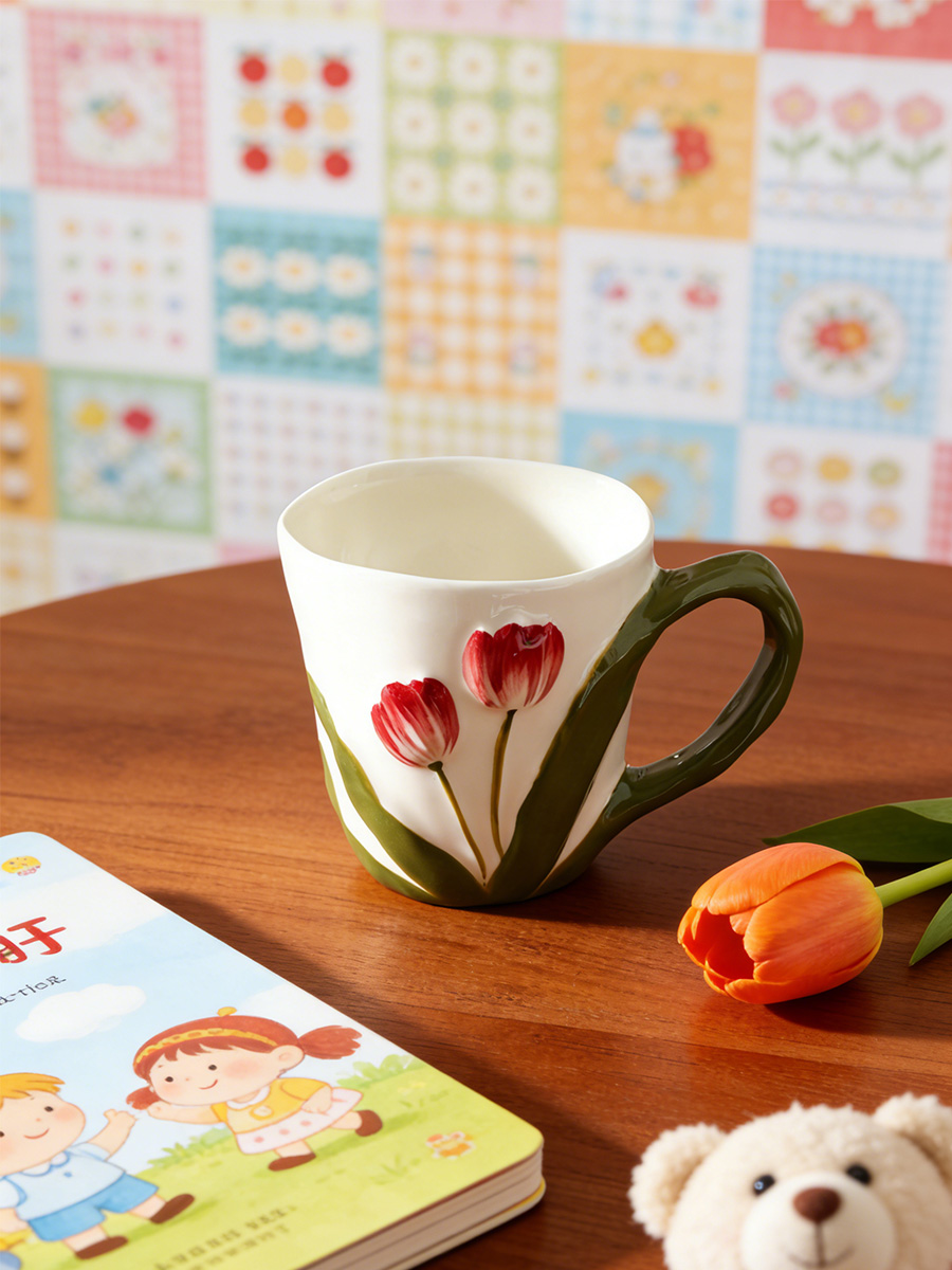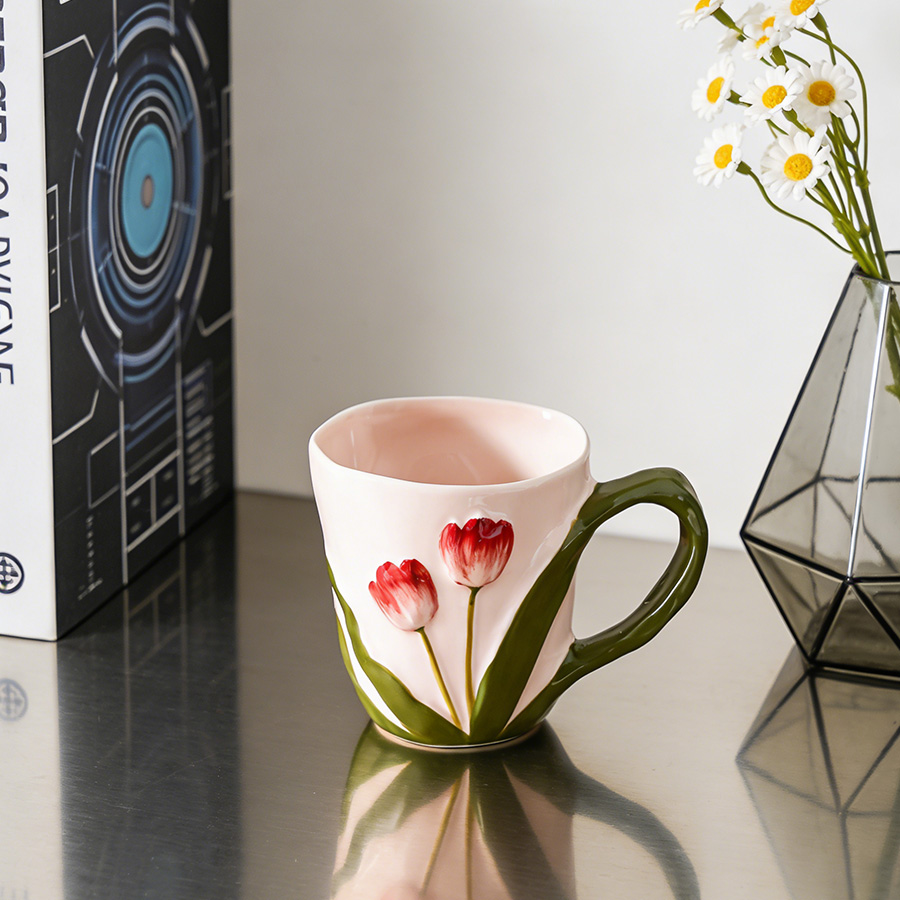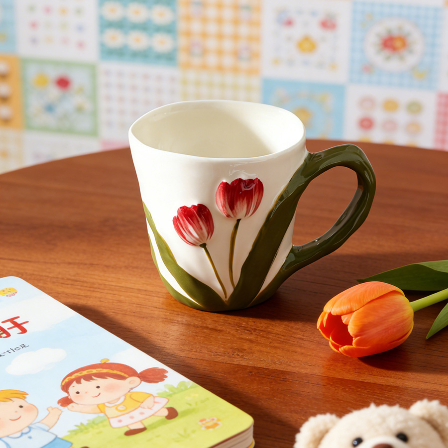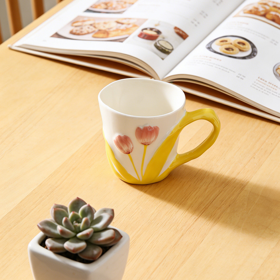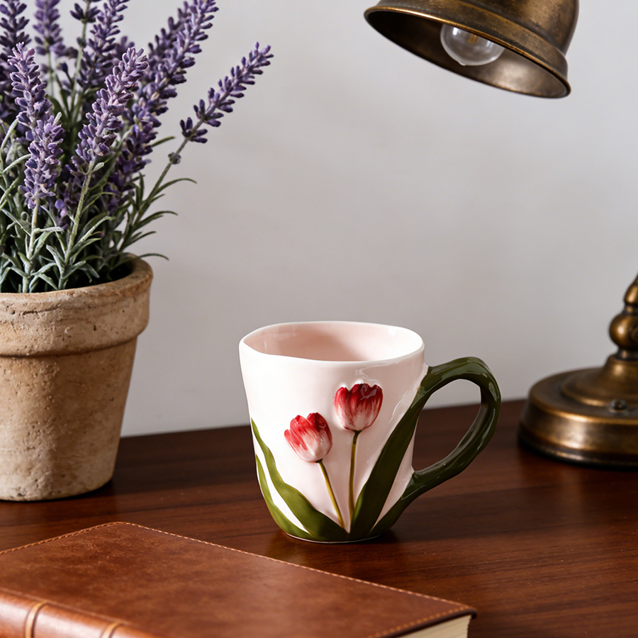 陶瓷杯 郁金香把手