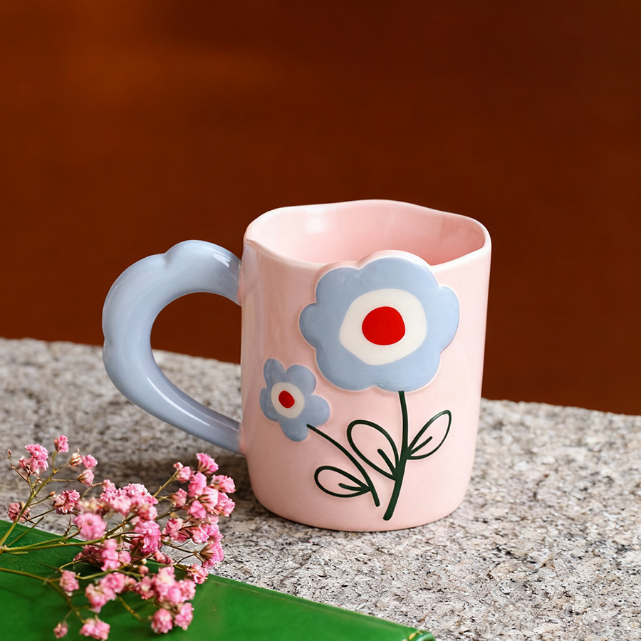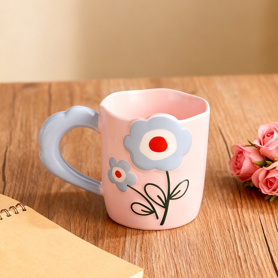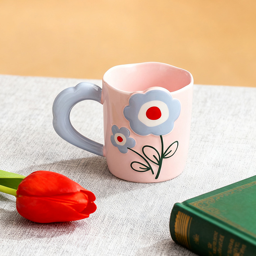 陶瓷杯 浮雕碎花