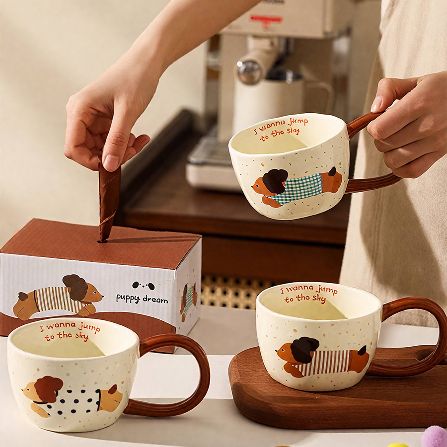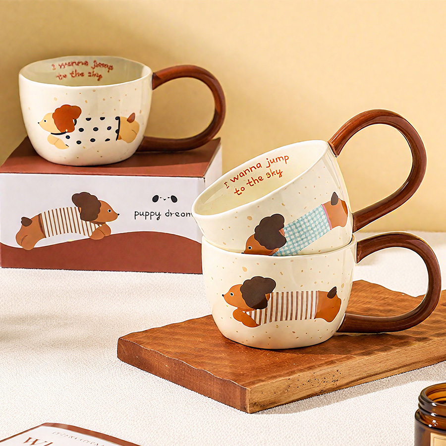 陶瓷杯 大耳腊肠狗