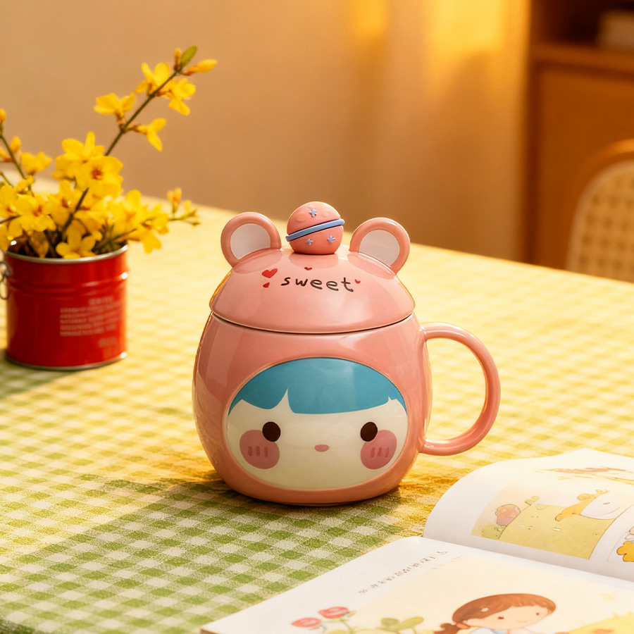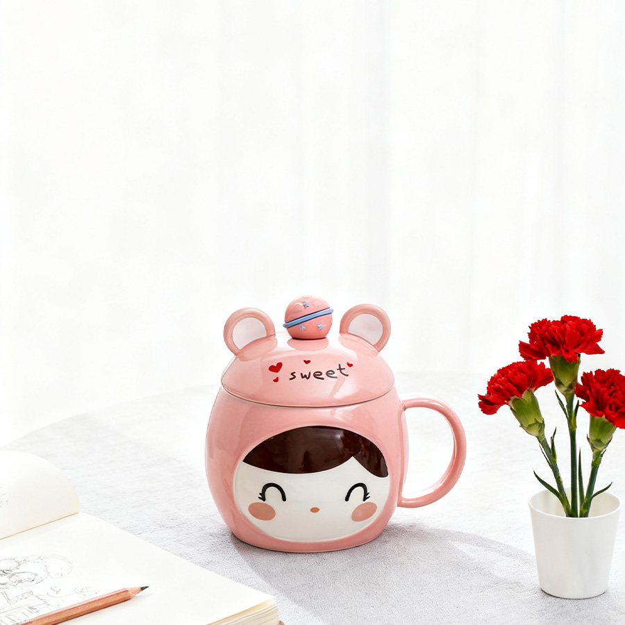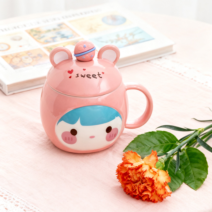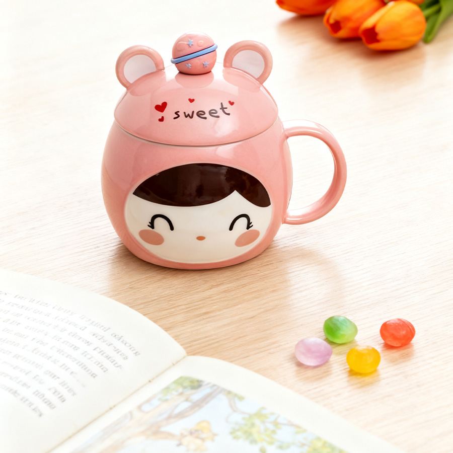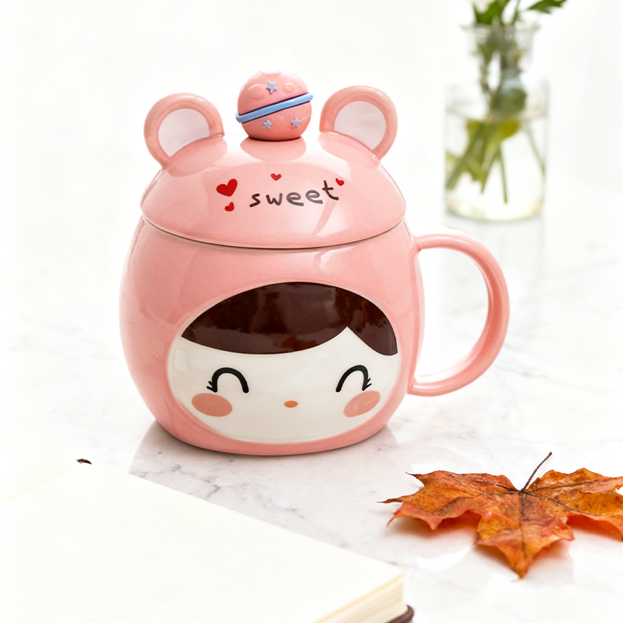 粉杯棕发【带盖+勺】