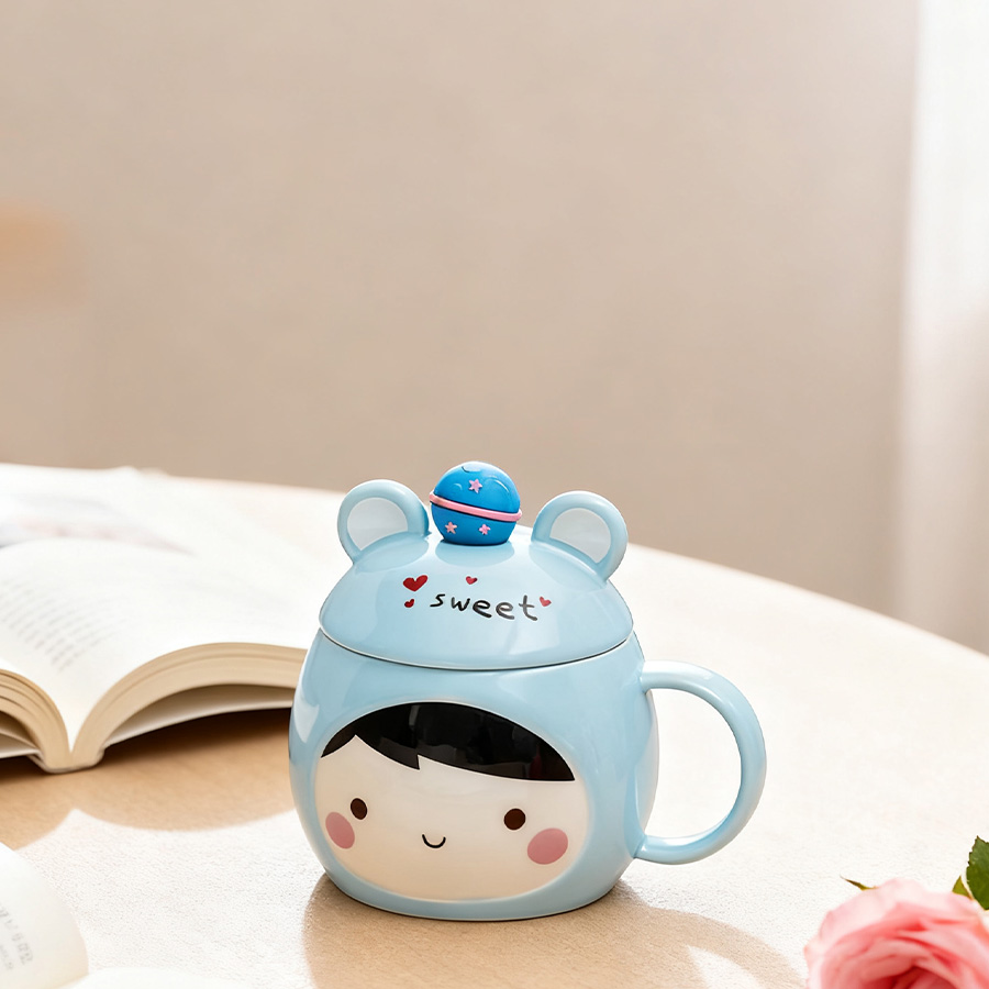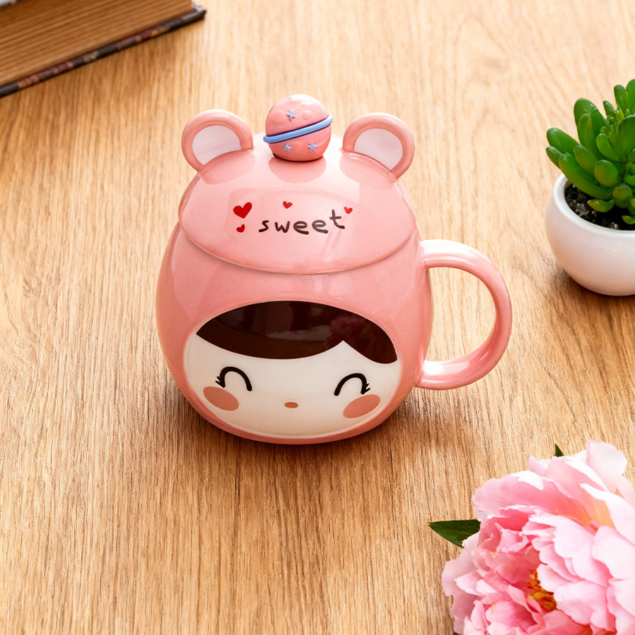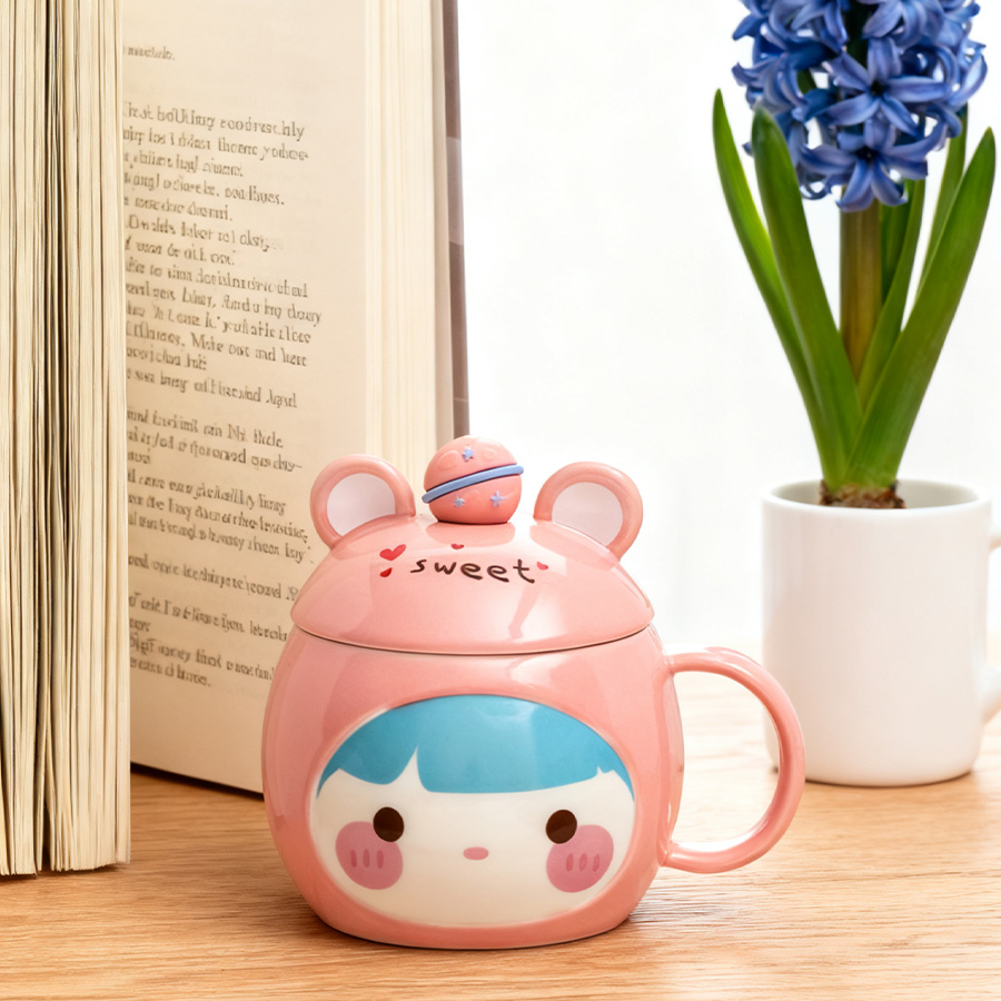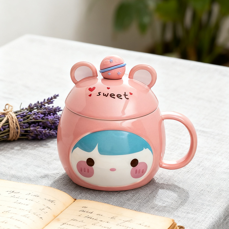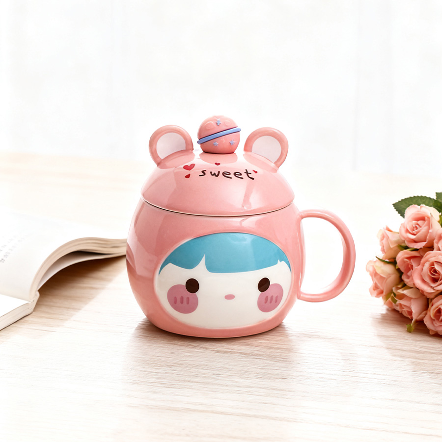 粉杯棕发【带盖+勺】