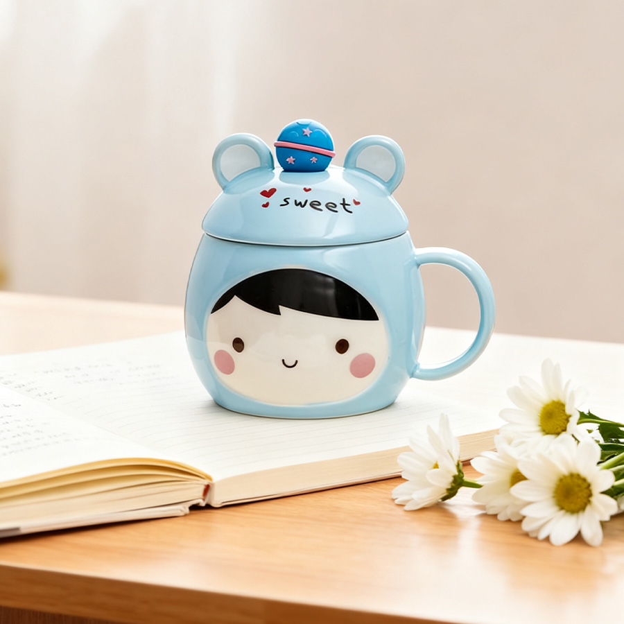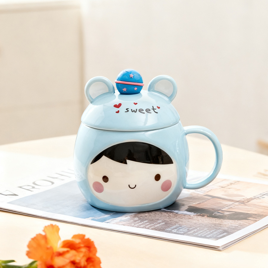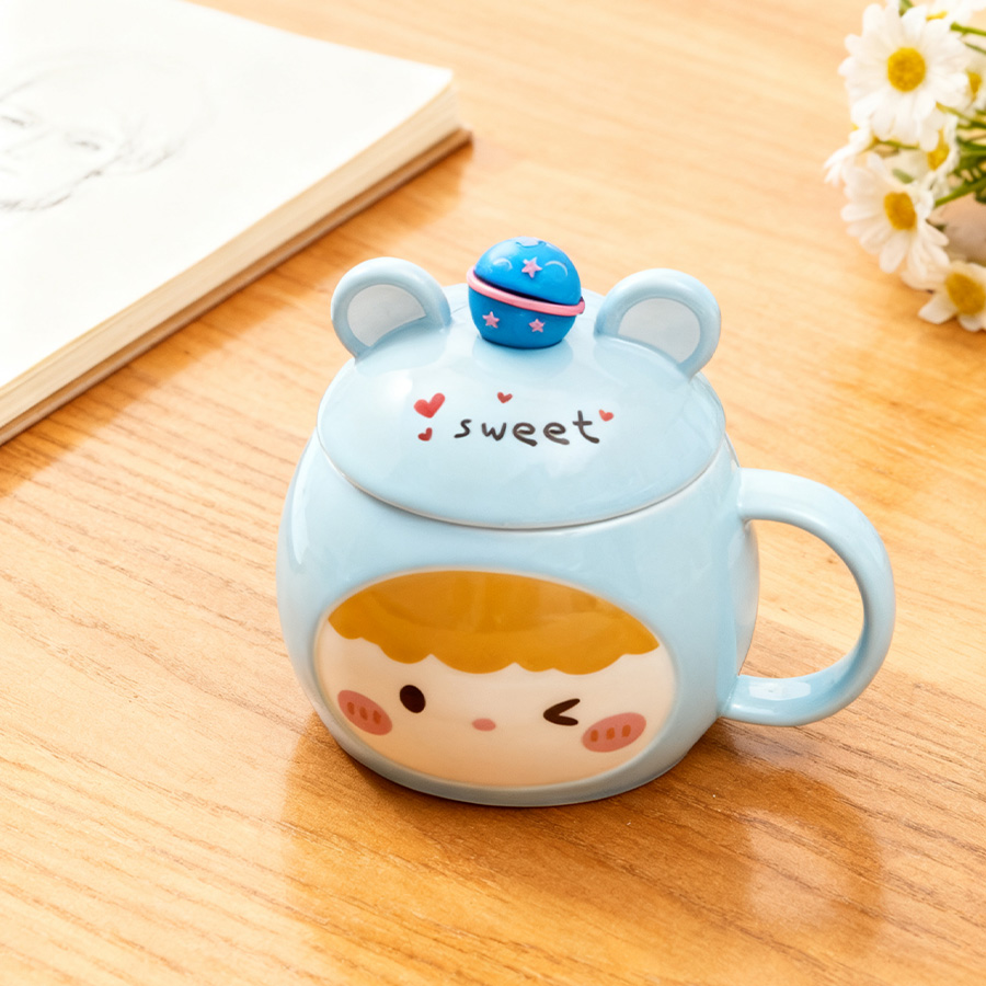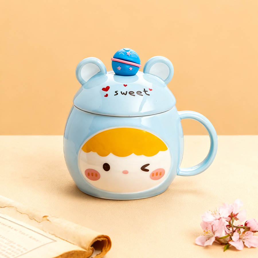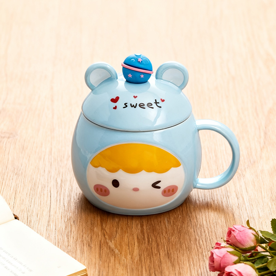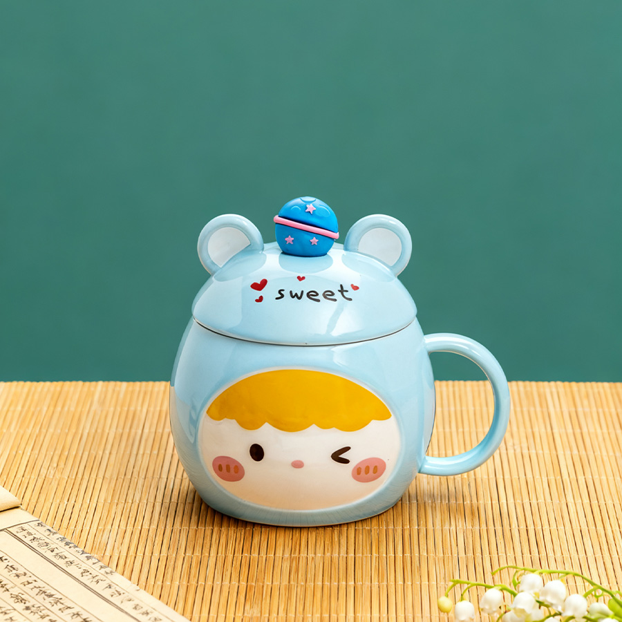 蓝杯黄发【带盖+勺】