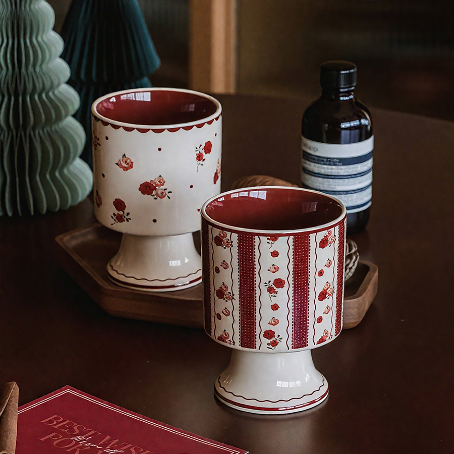 陶瓷杯 浮雕碎花