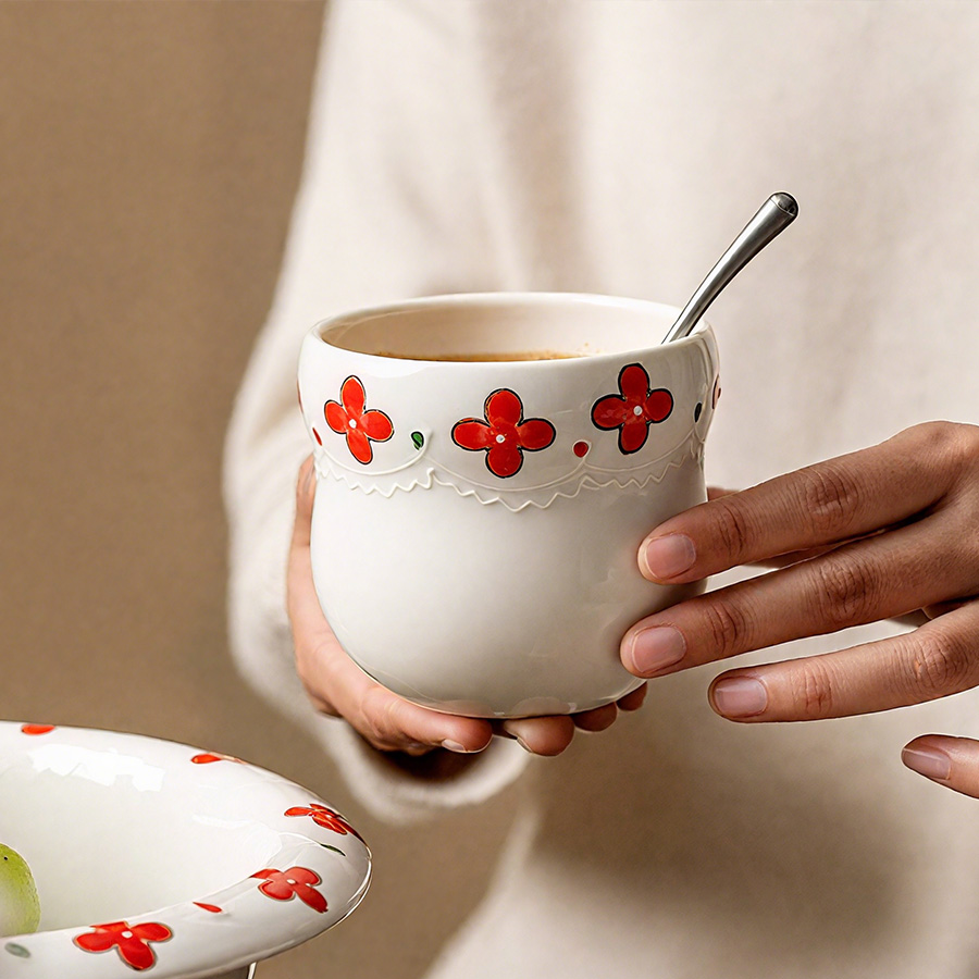 陶瓷杯 浮雕碎花