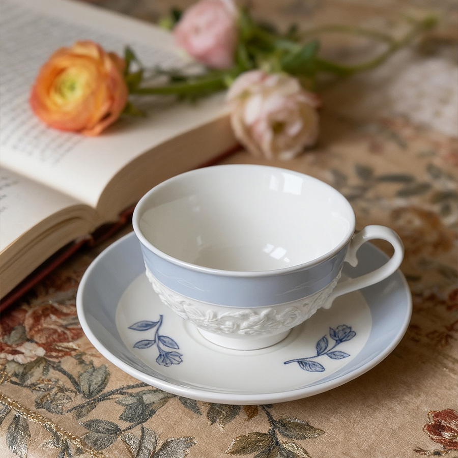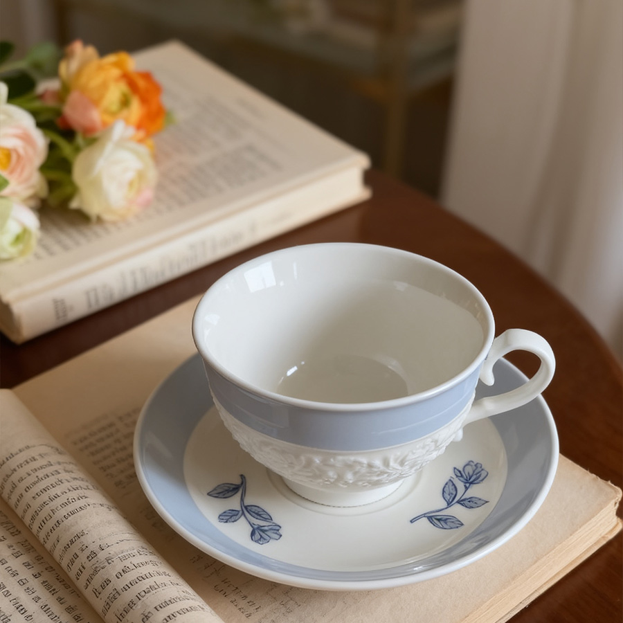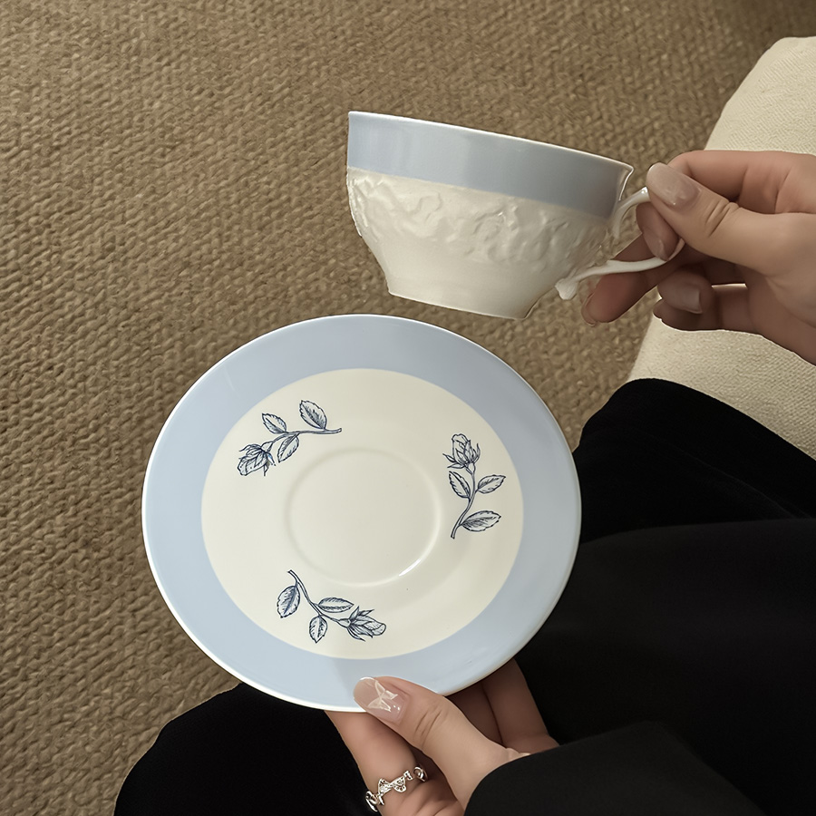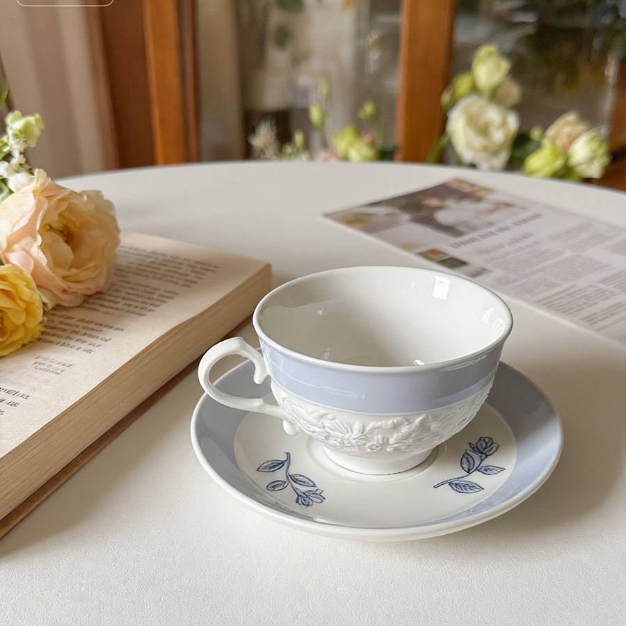陶瓷杯 浮雕碎花