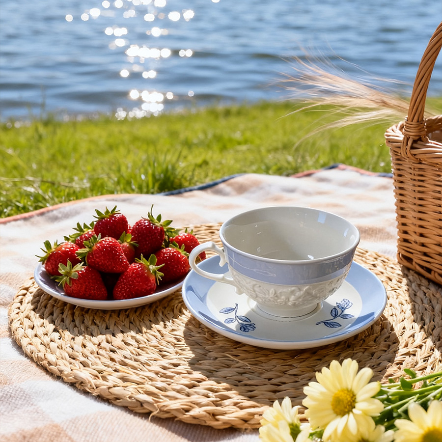 杯碟 夏日花朵