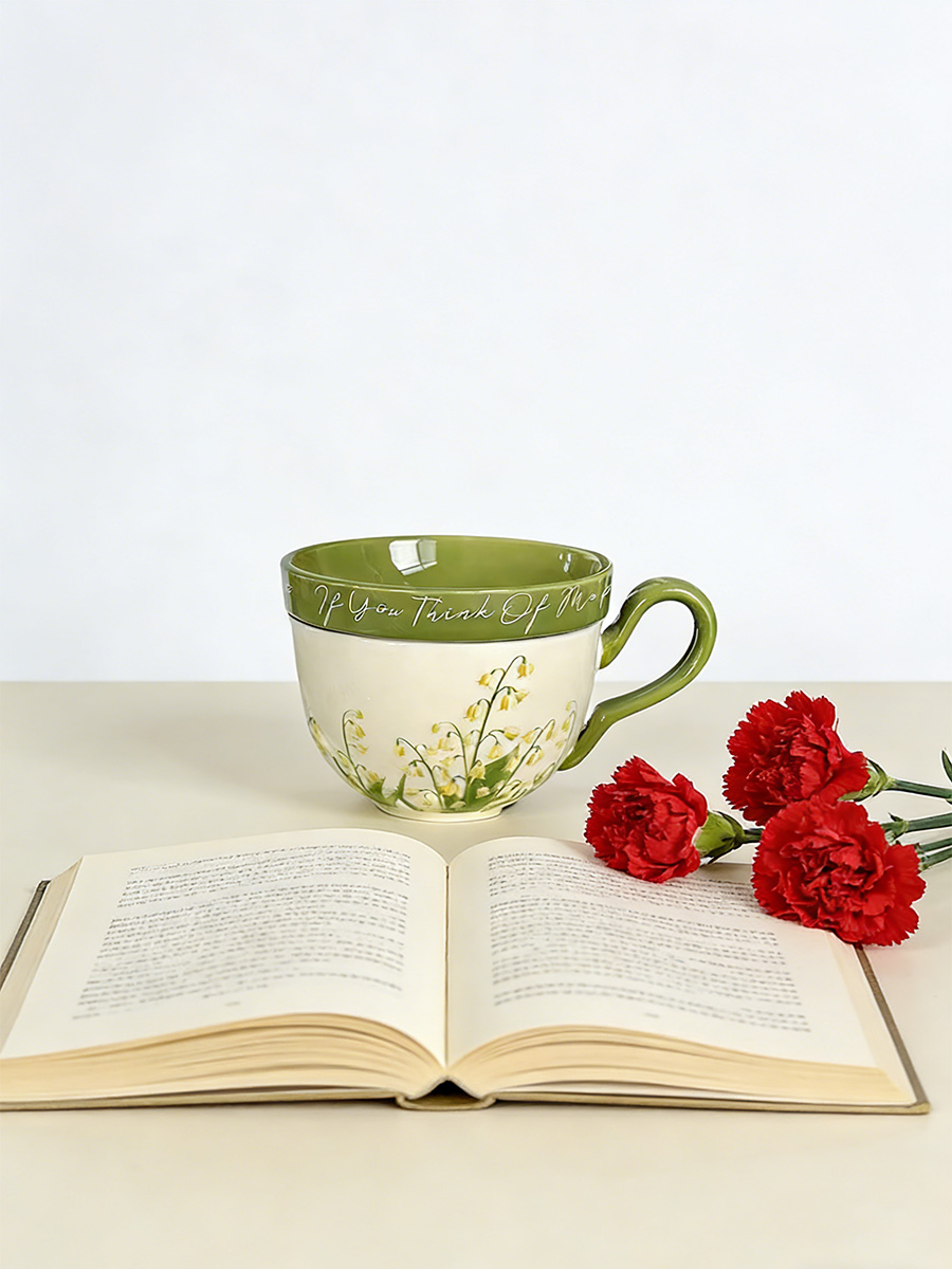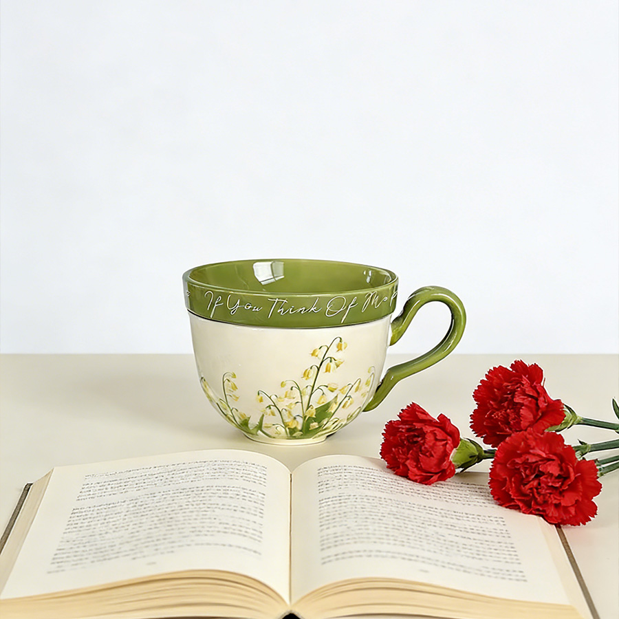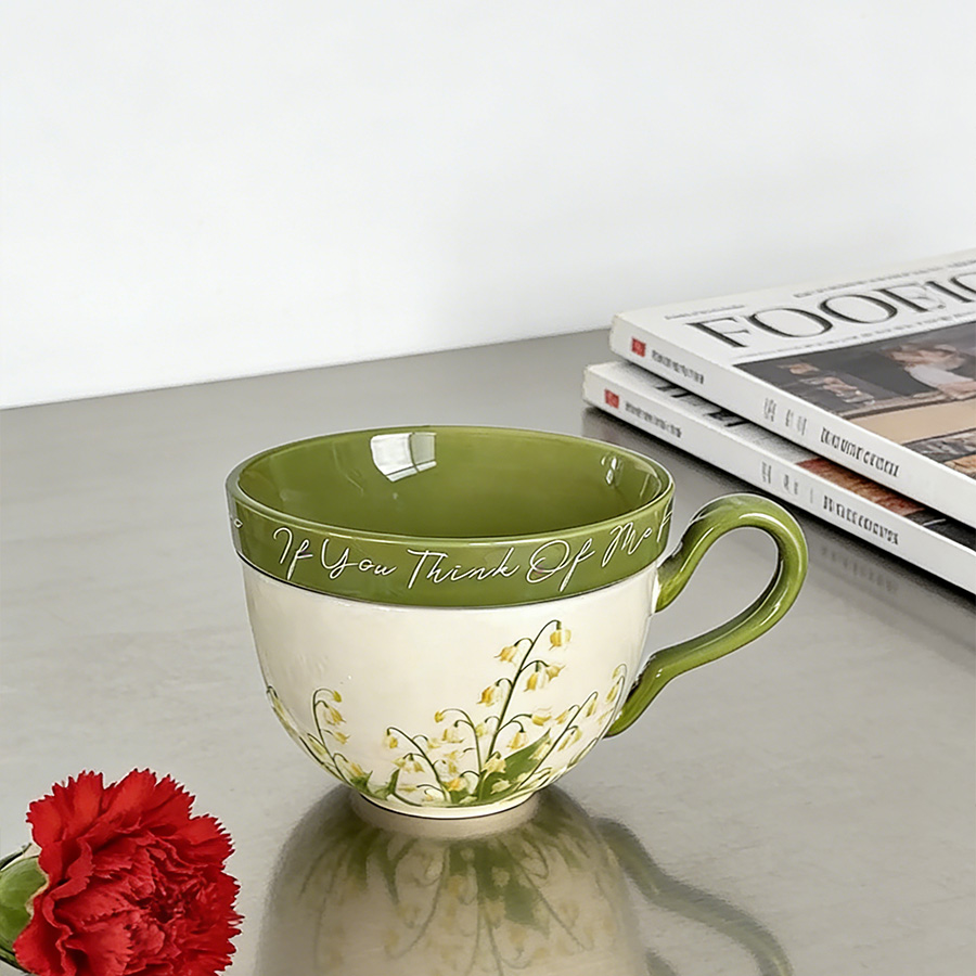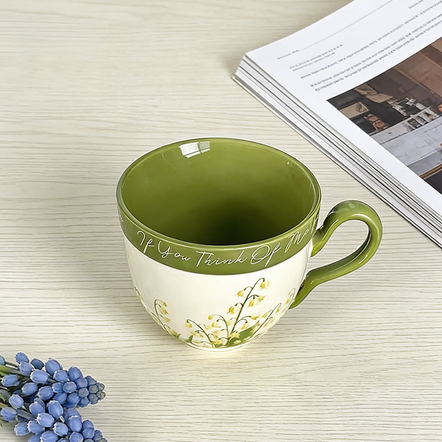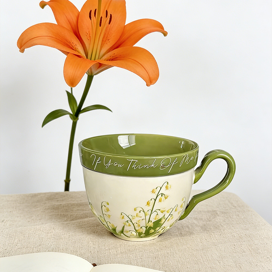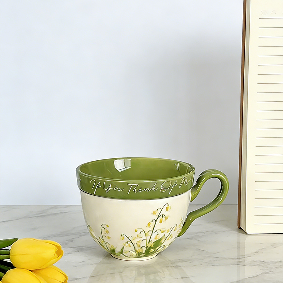 陶瓷杯 黄色铃兰花