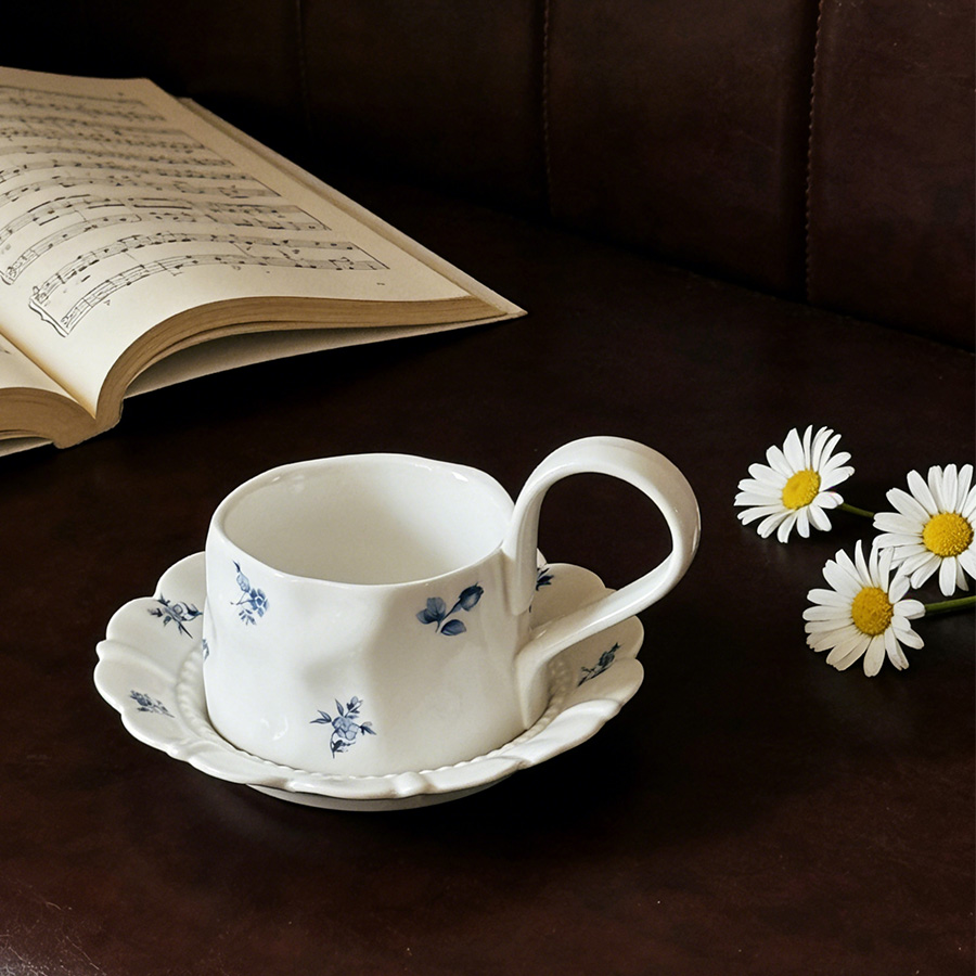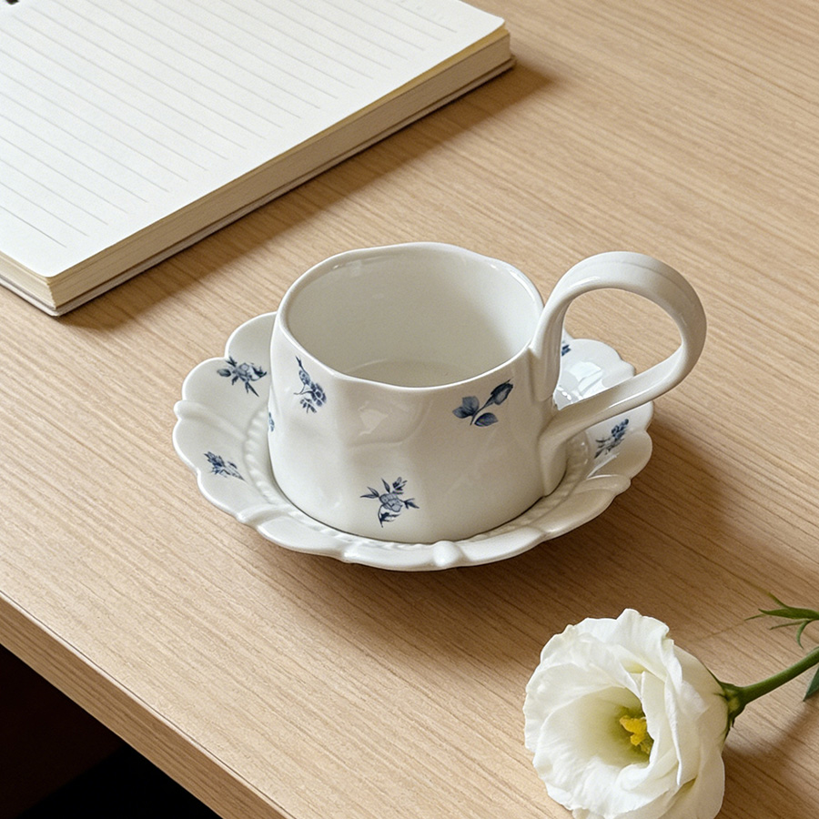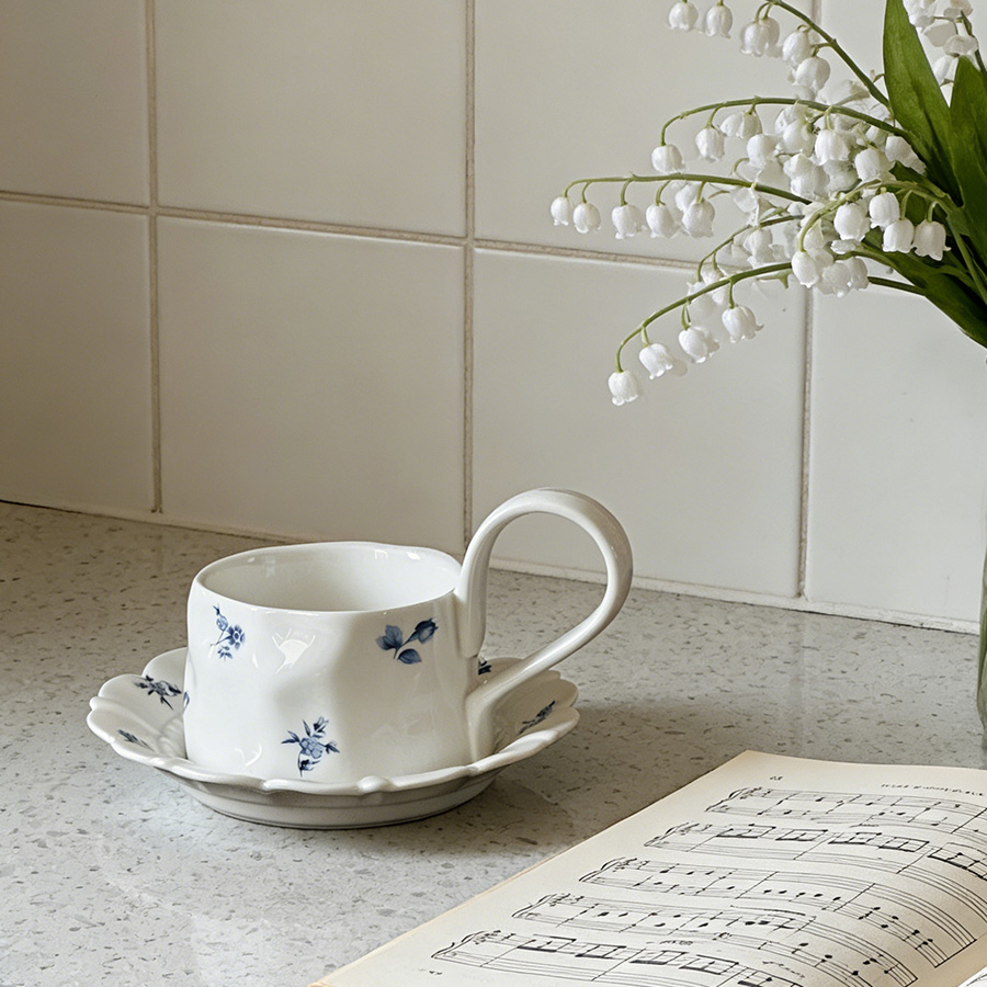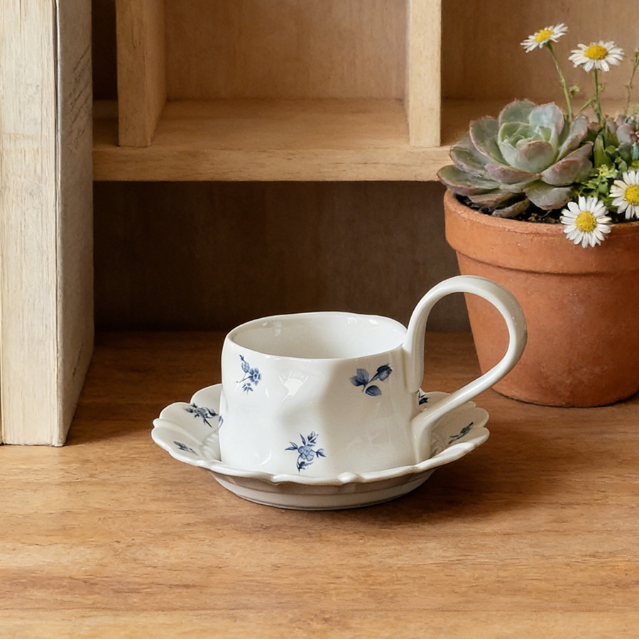 杯碟 复古蓝色碎花