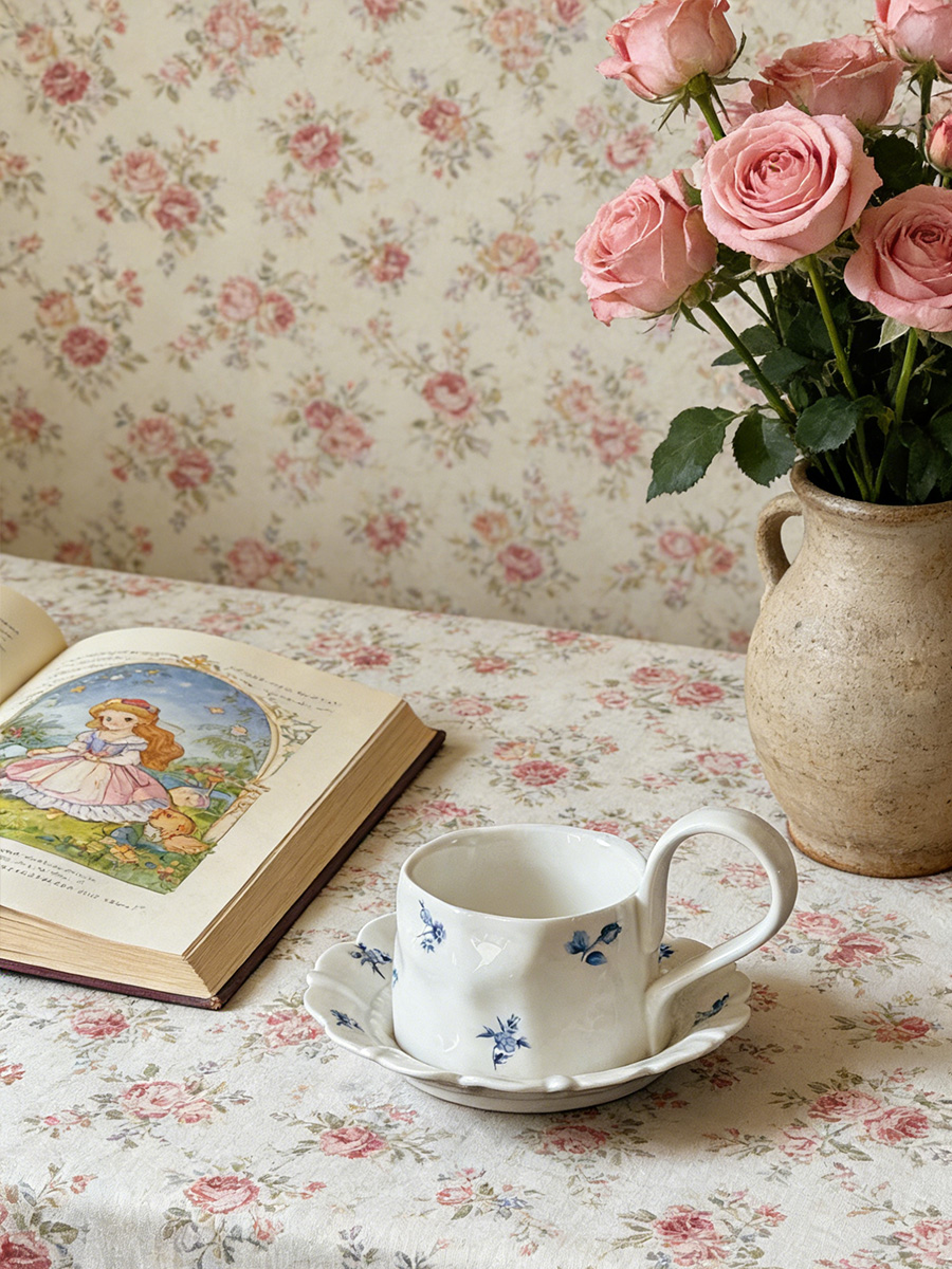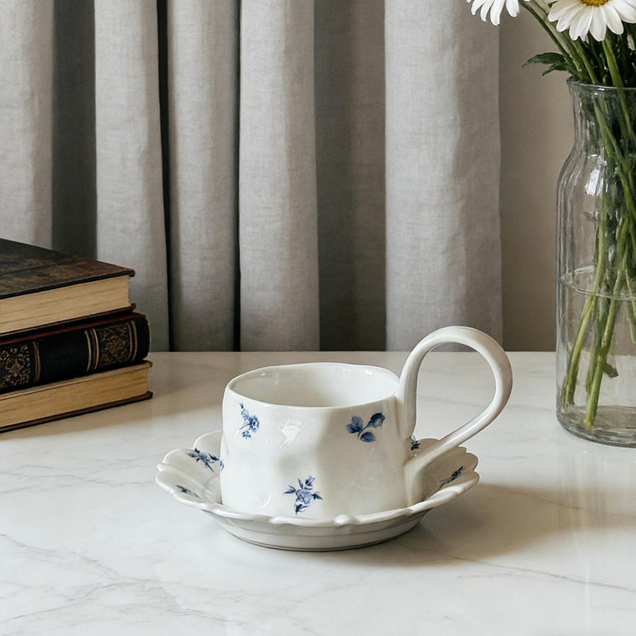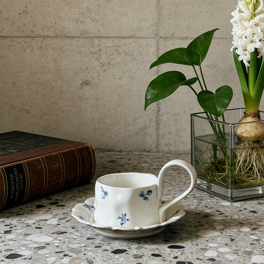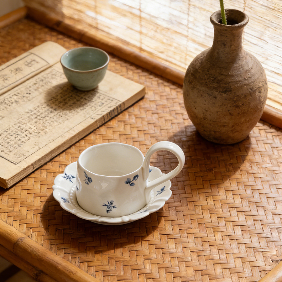 杯碟 复古蓝色碎花