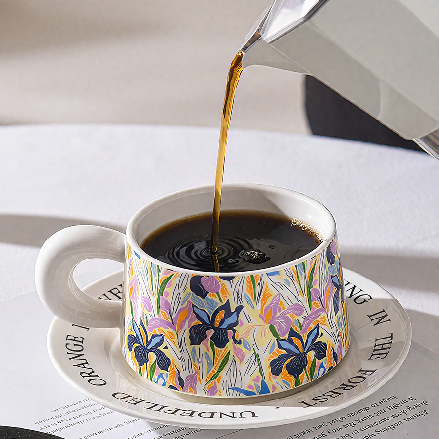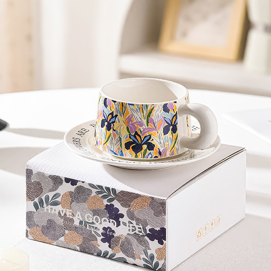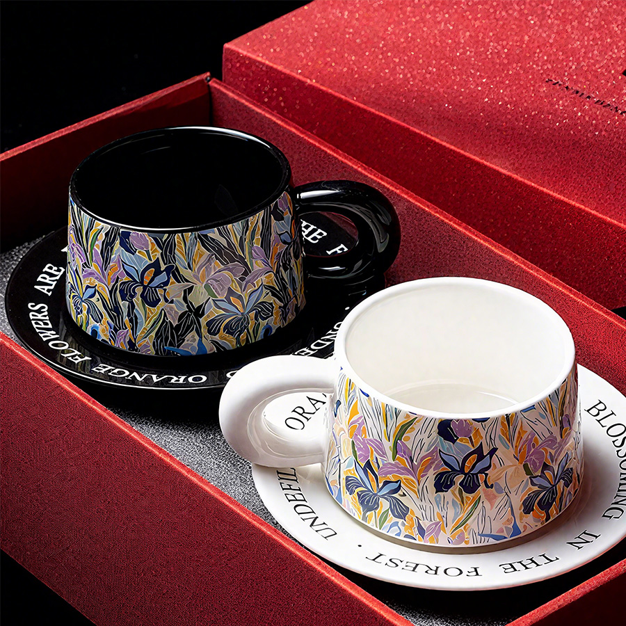 陶瓷杯 浮雕碎花