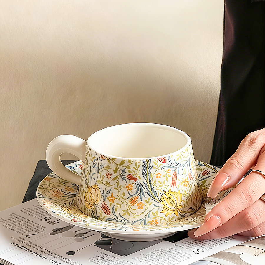 陶瓷杯 浮雕碎花