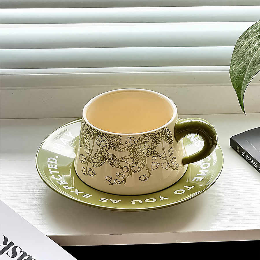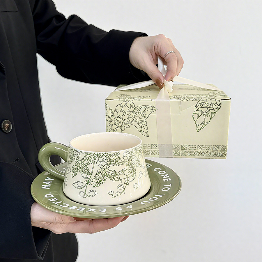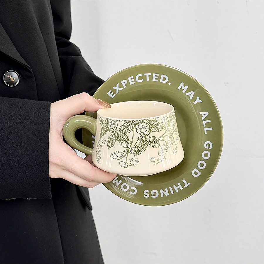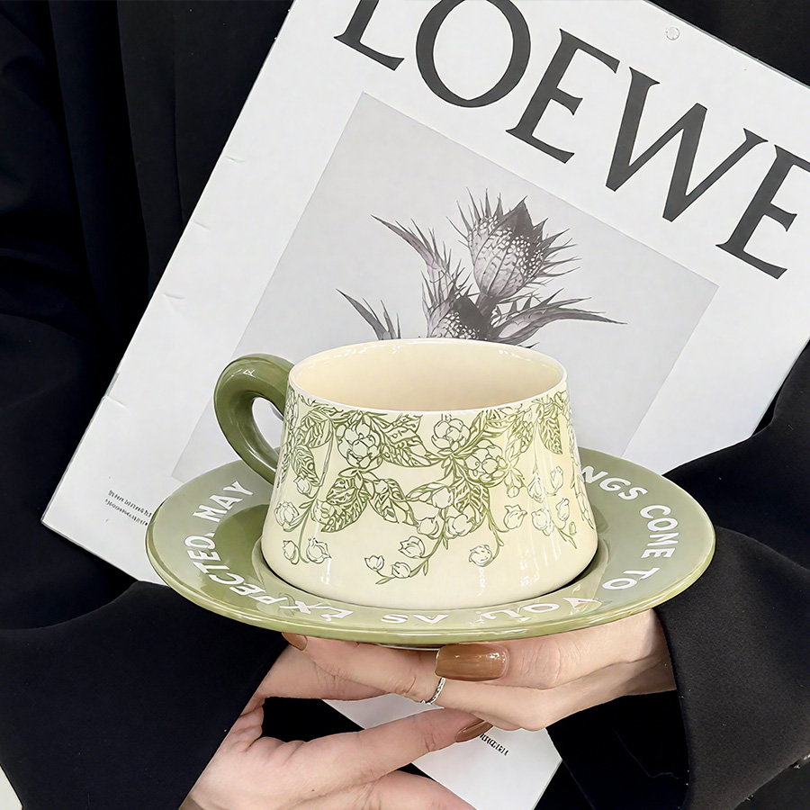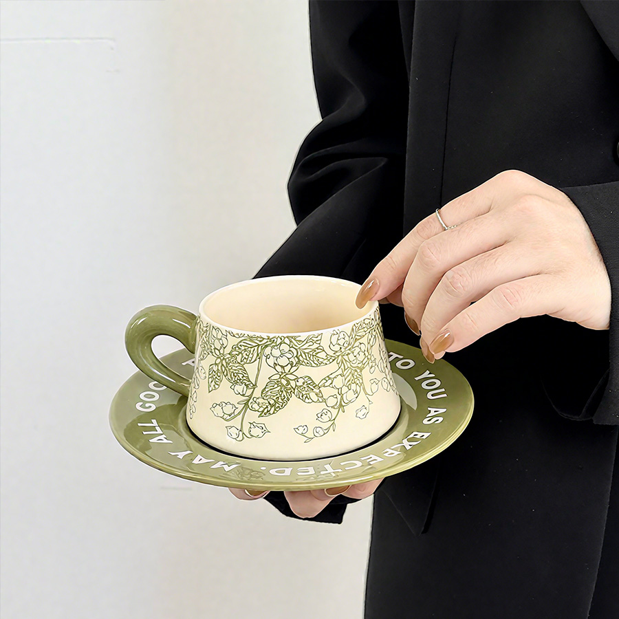 陶瓷杯 浮雕碎花