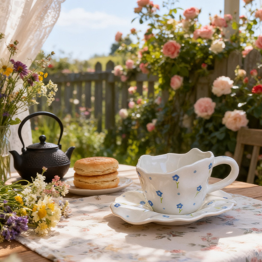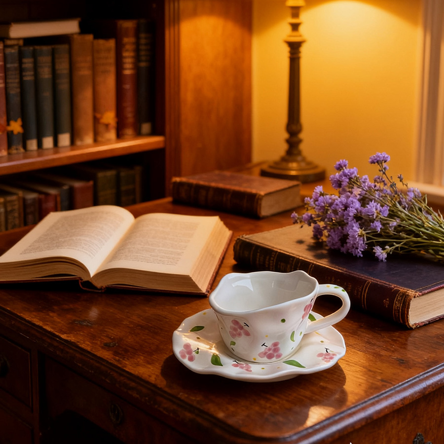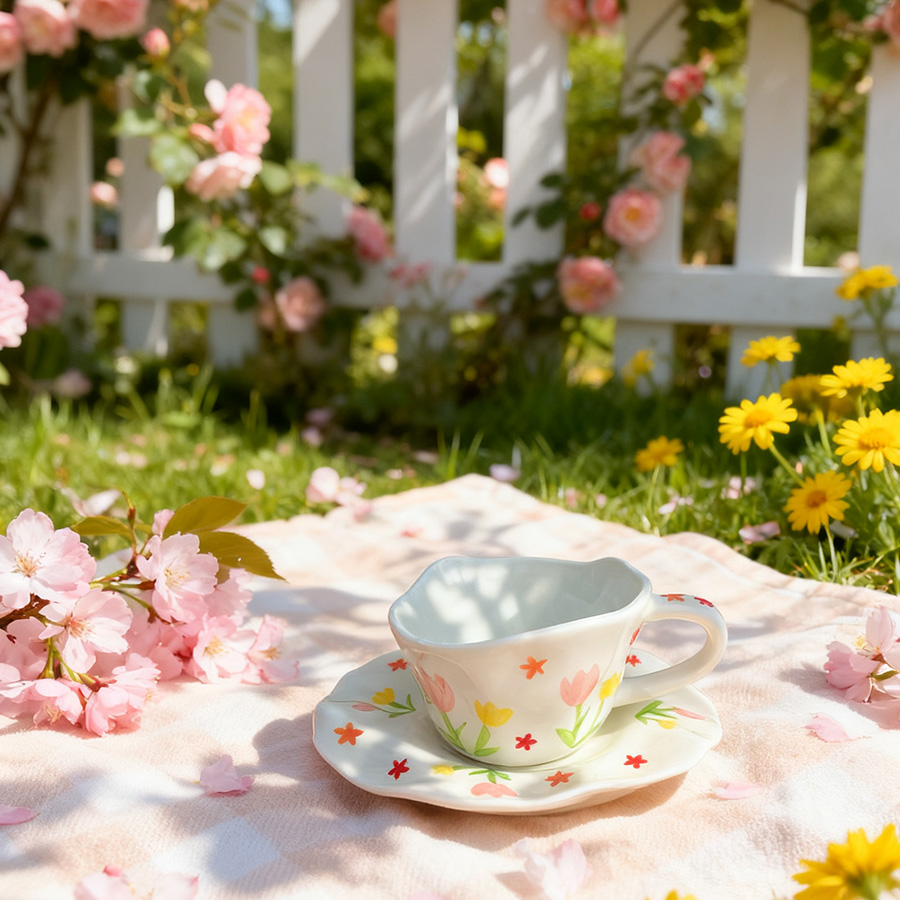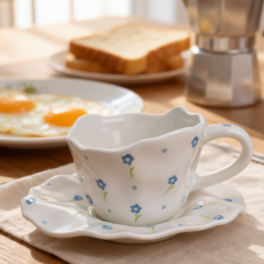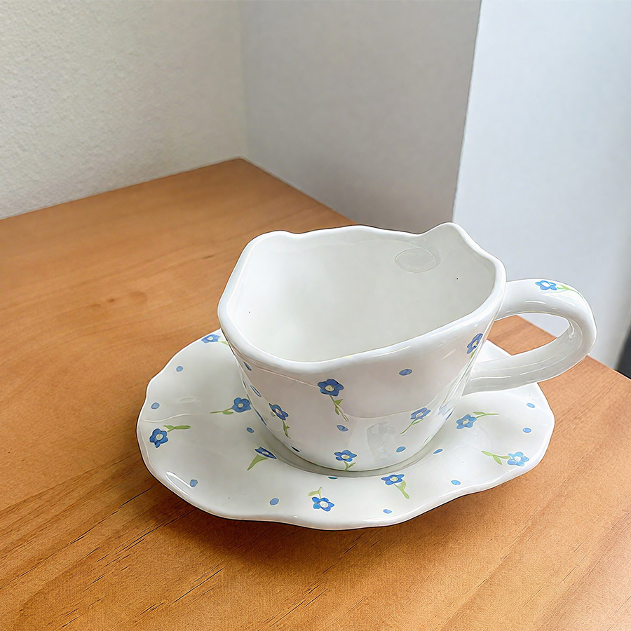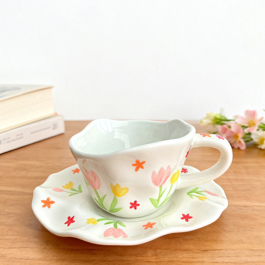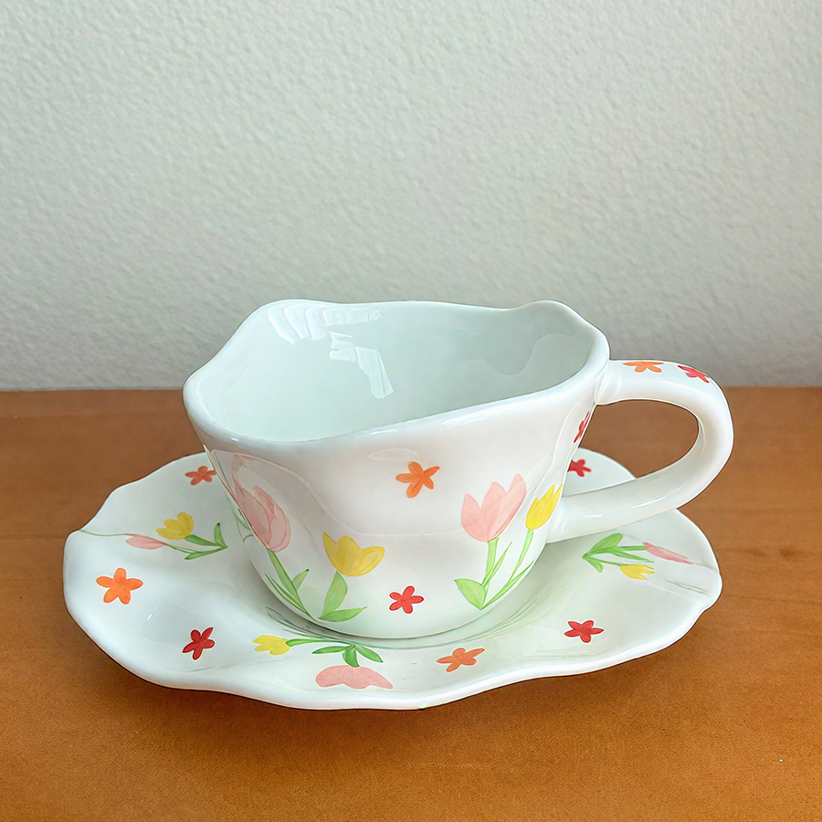 杯碟 斜口手绘花
