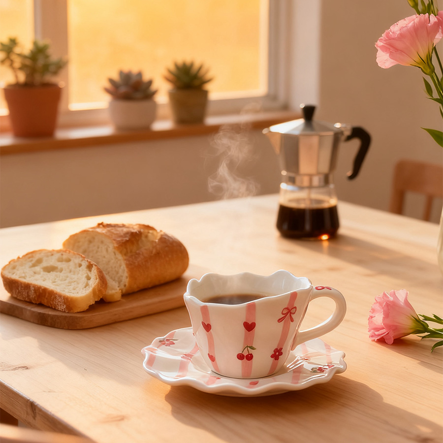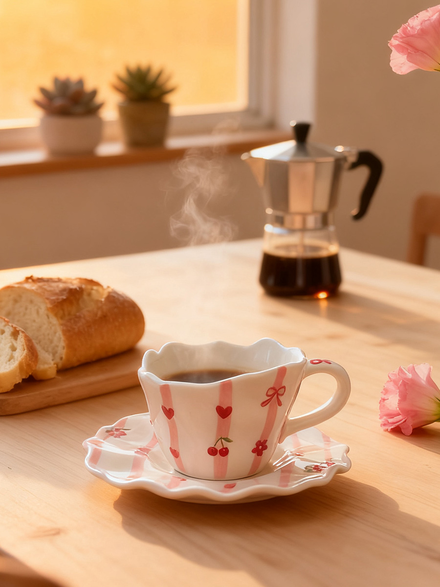 粉白条纹【杯+碟】