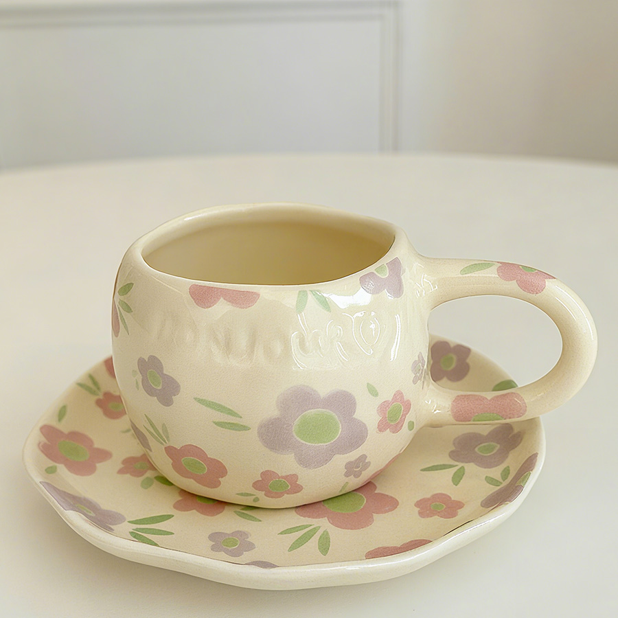 陶瓷杯 浮雕碎花
