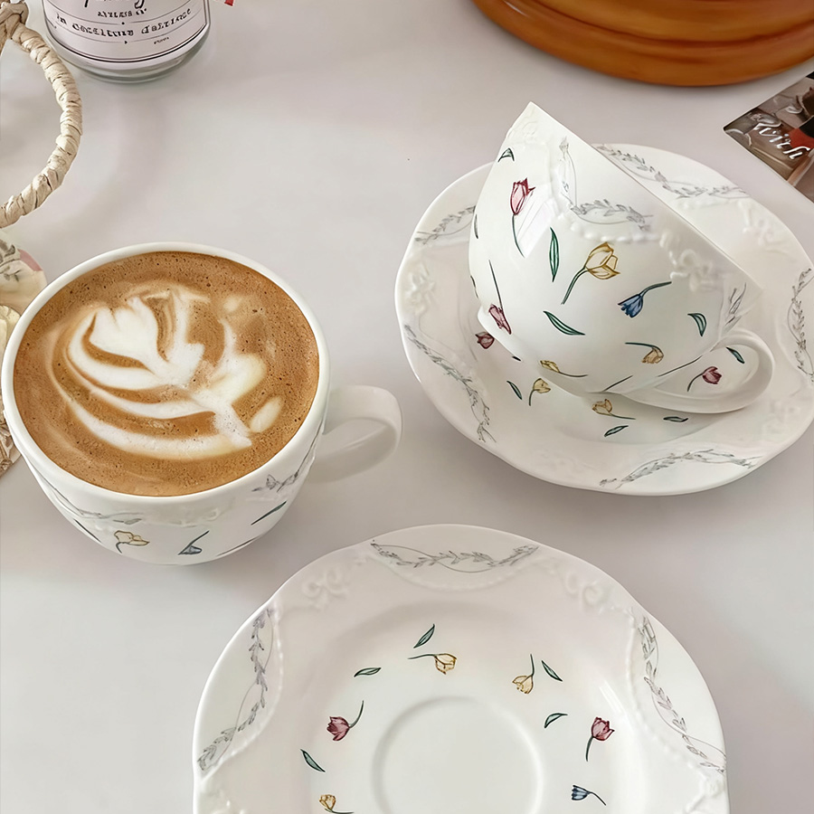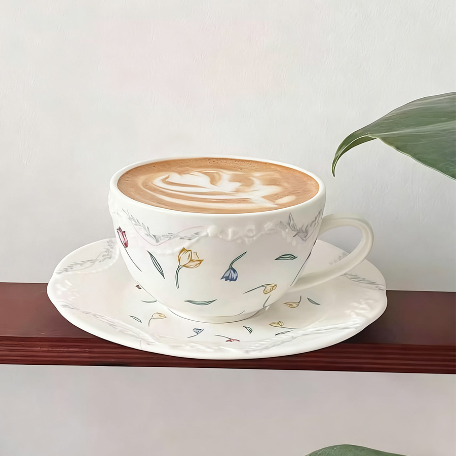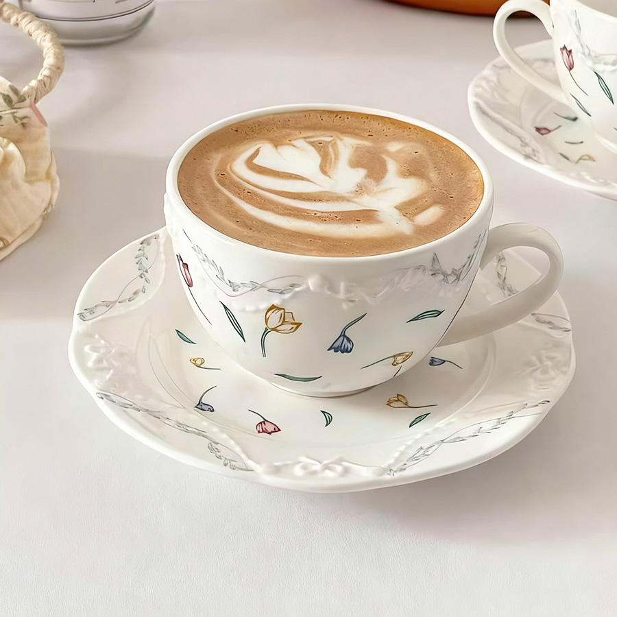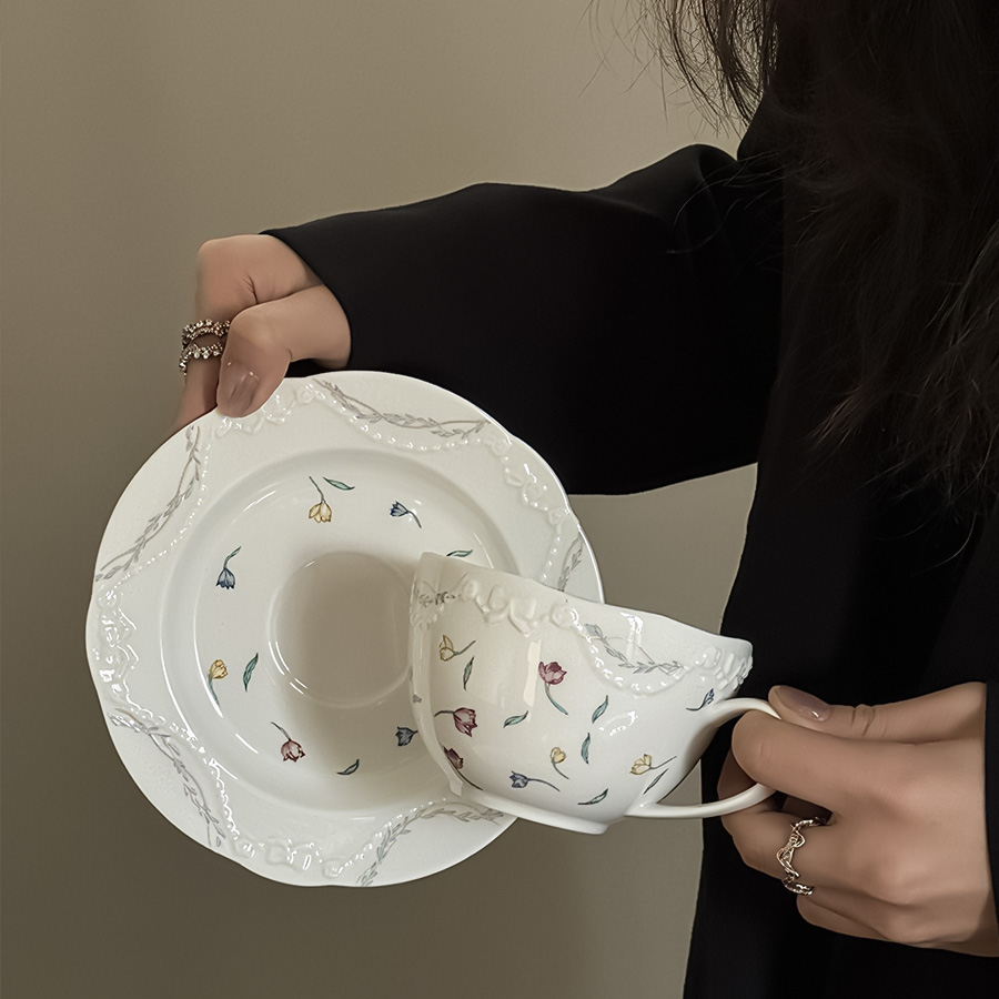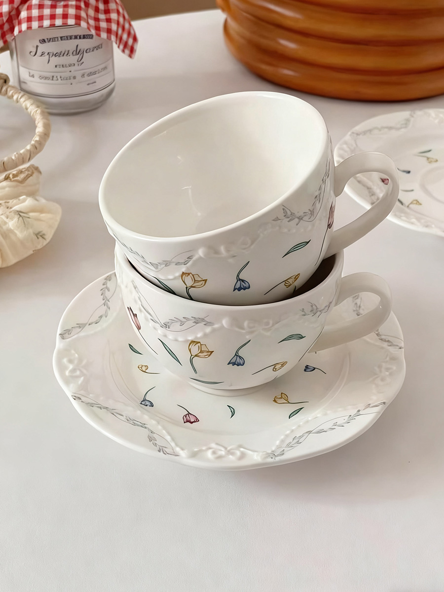 陶瓷杯 浮雕碎花