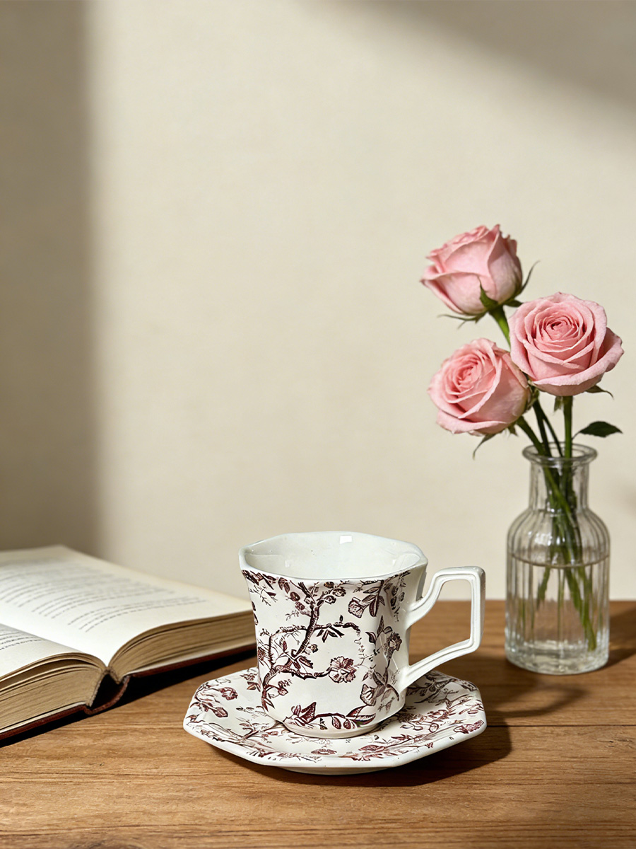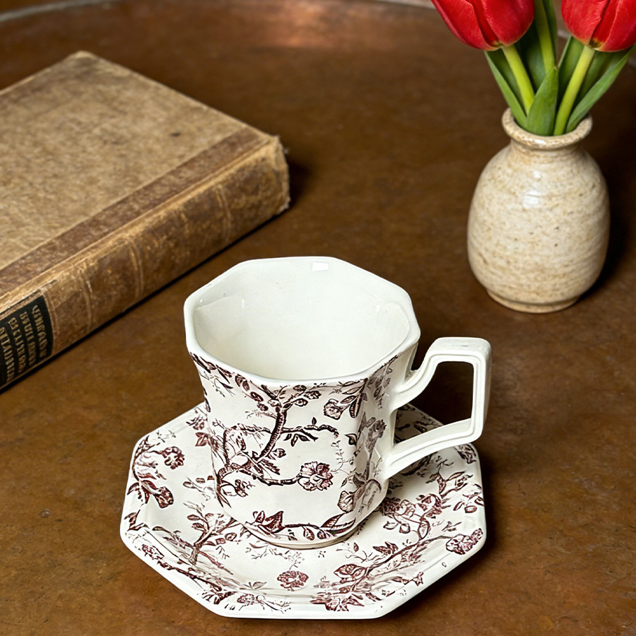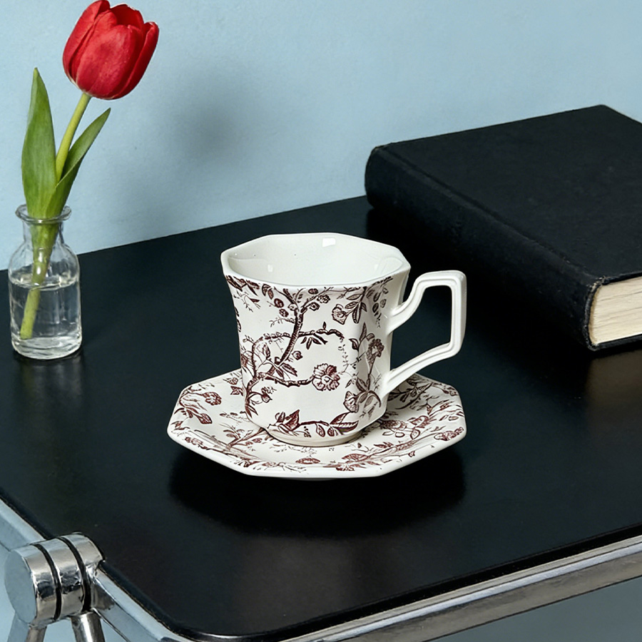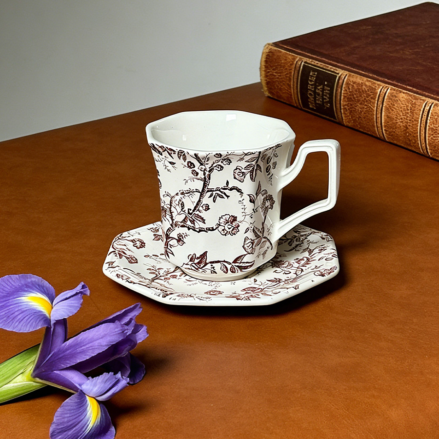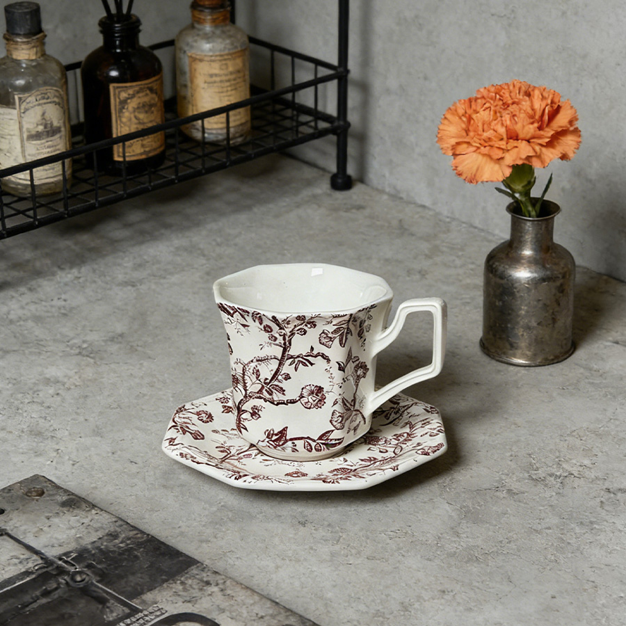 杯碟 红棕藤蔓八角