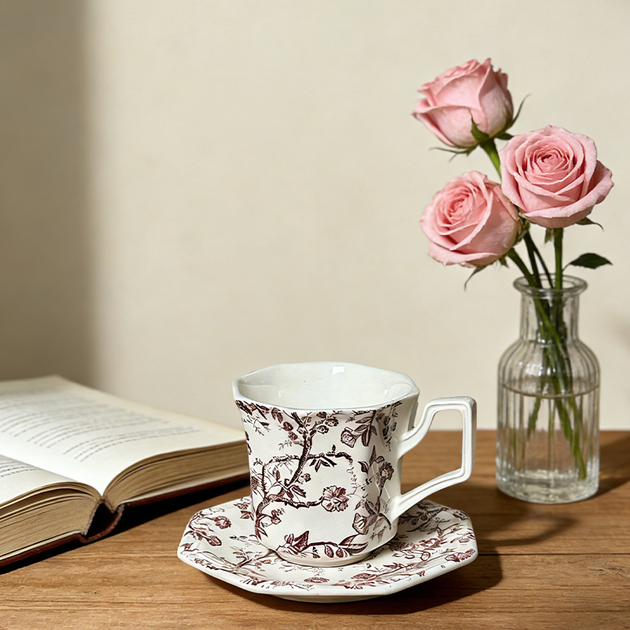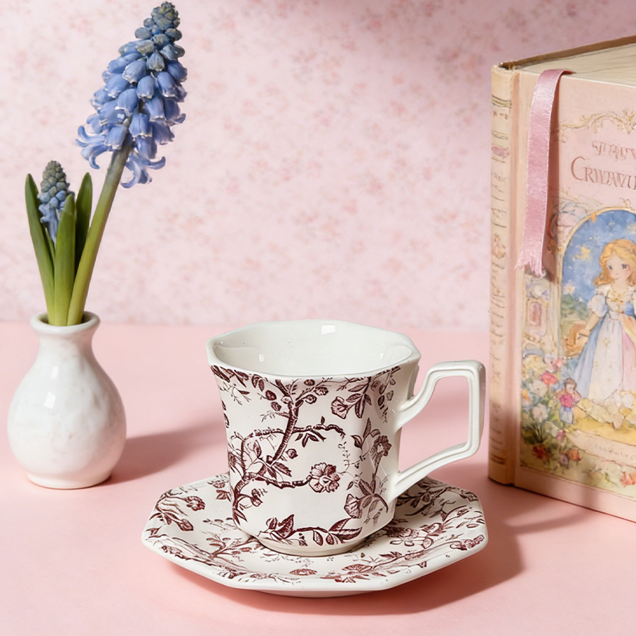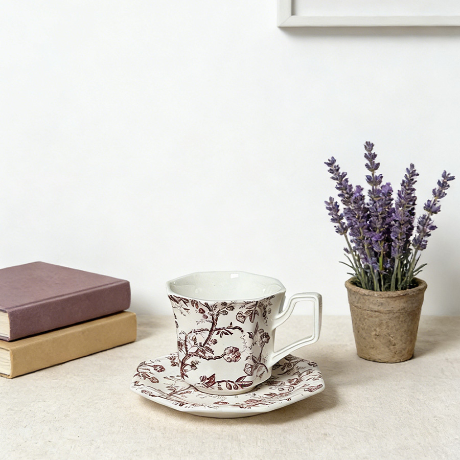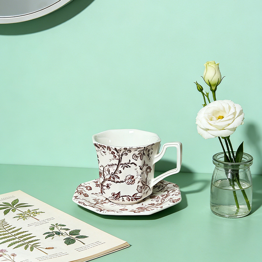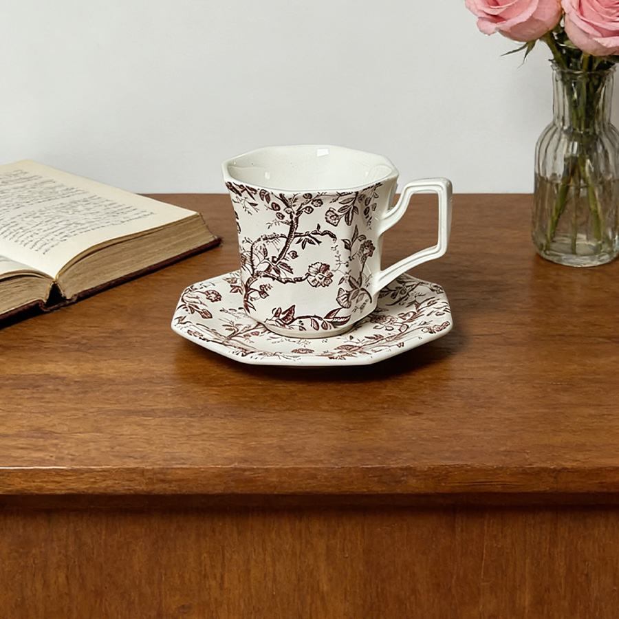 杯碟 红棕藤蔓八角