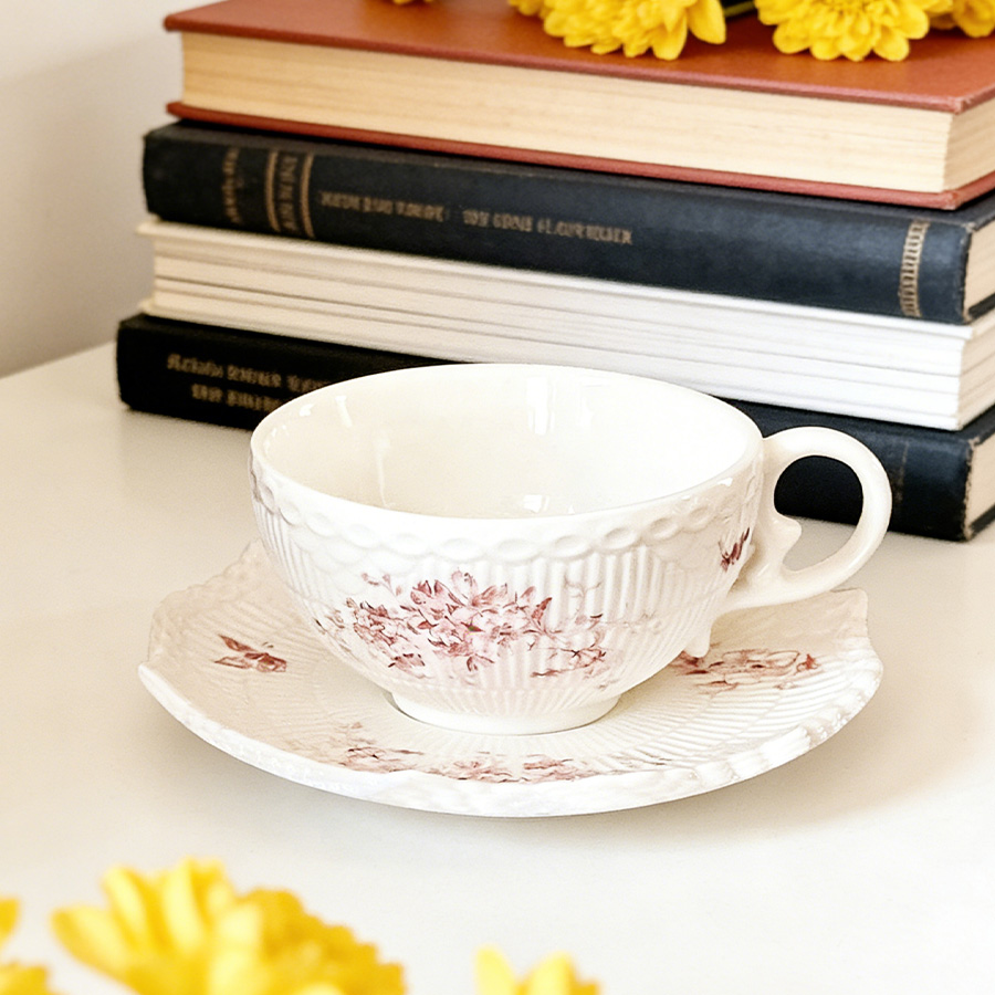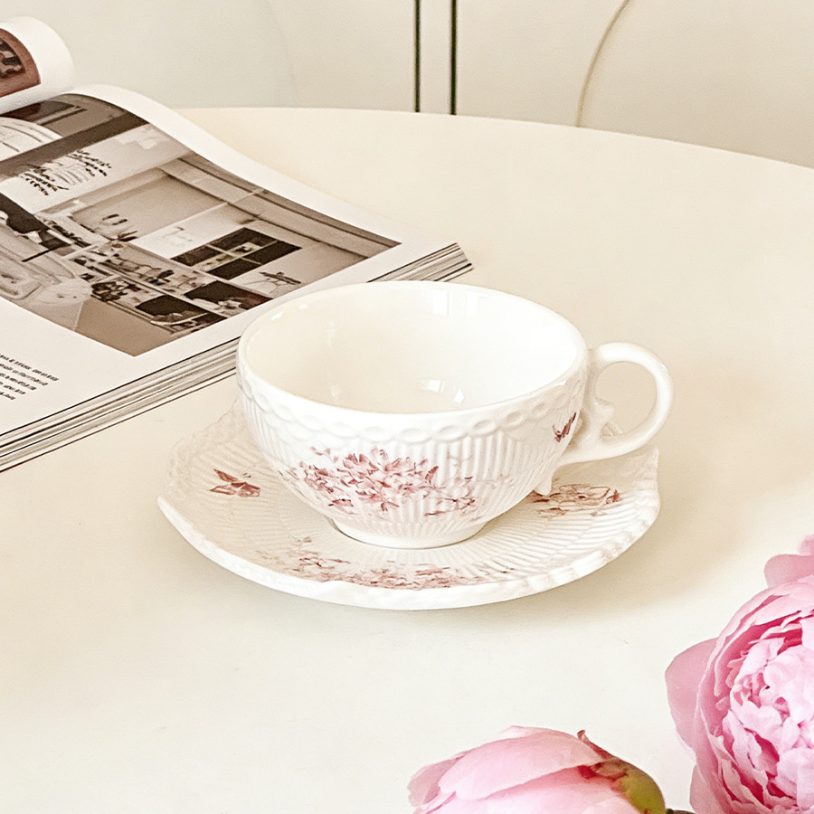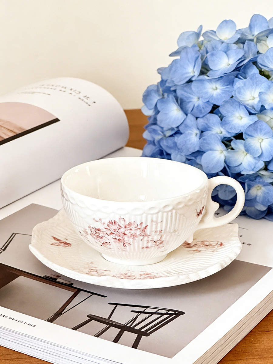陶瓷杯 浮雕碎花