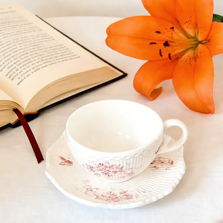 杯碟 红色蝴蝶花
