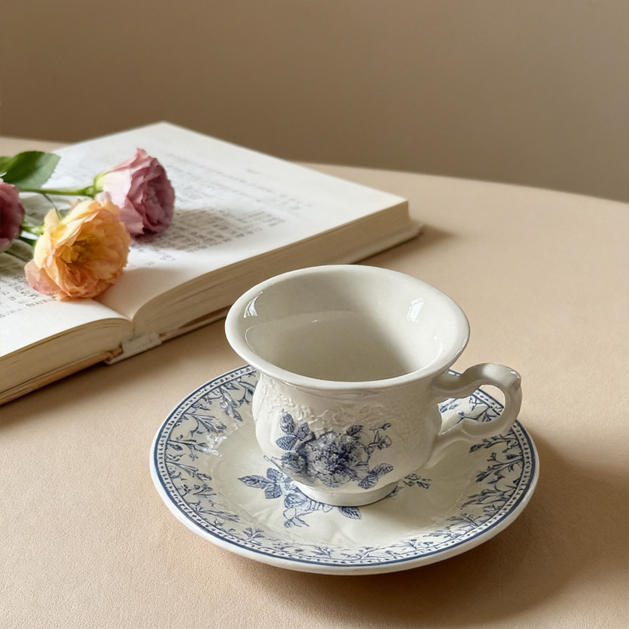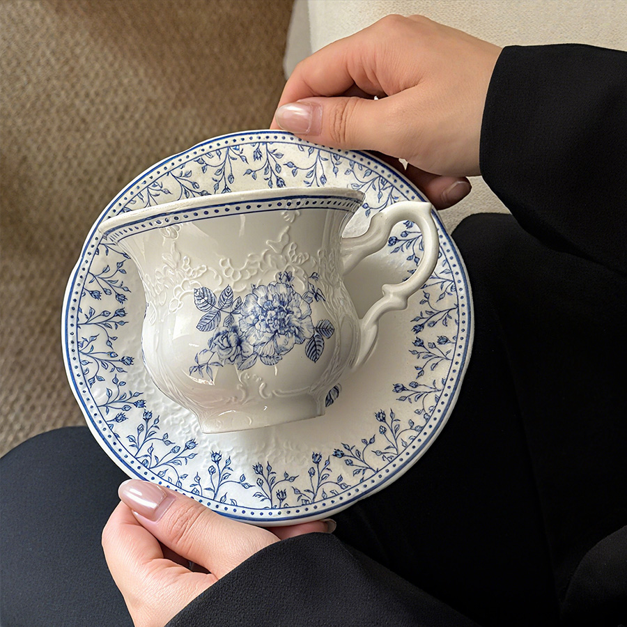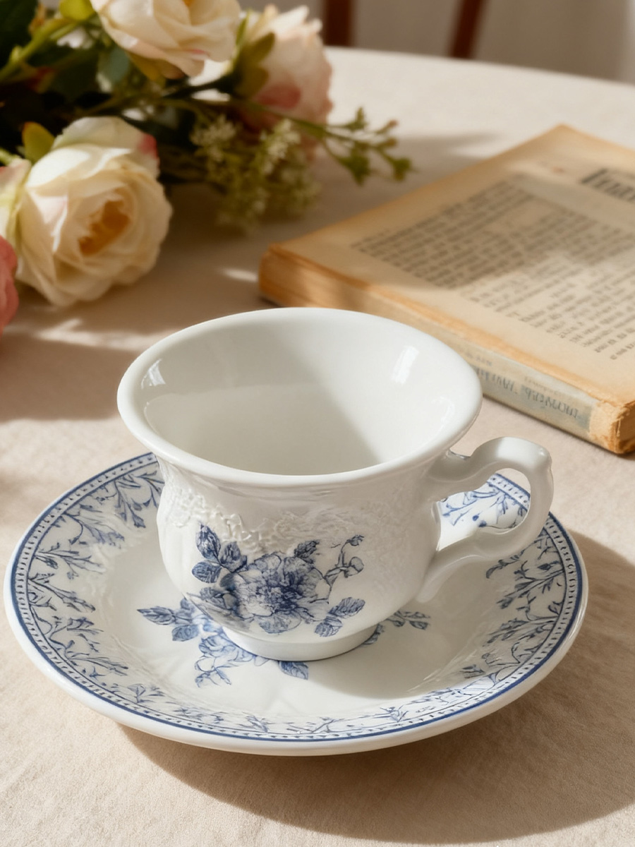 陶瓷杯 浮雕碎花
