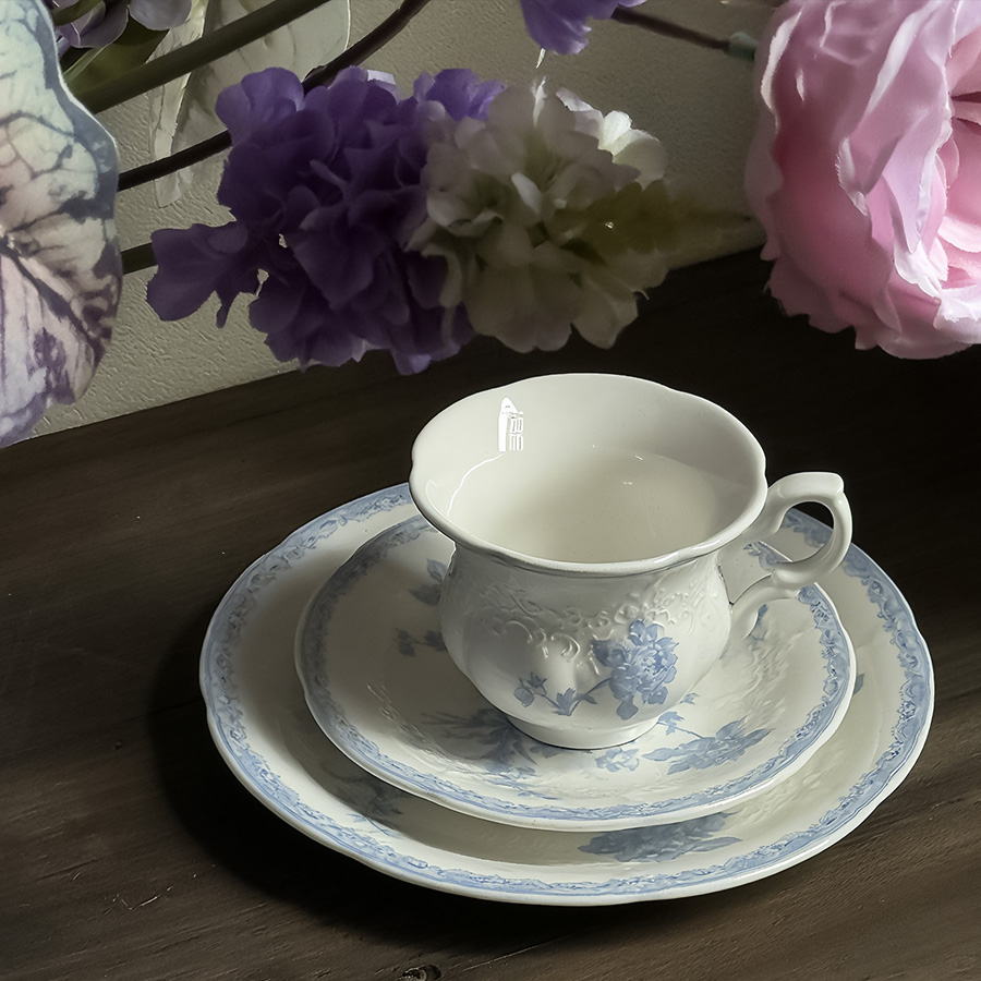 杯碟 蓝色牡丹