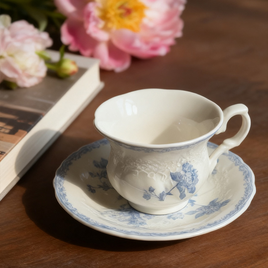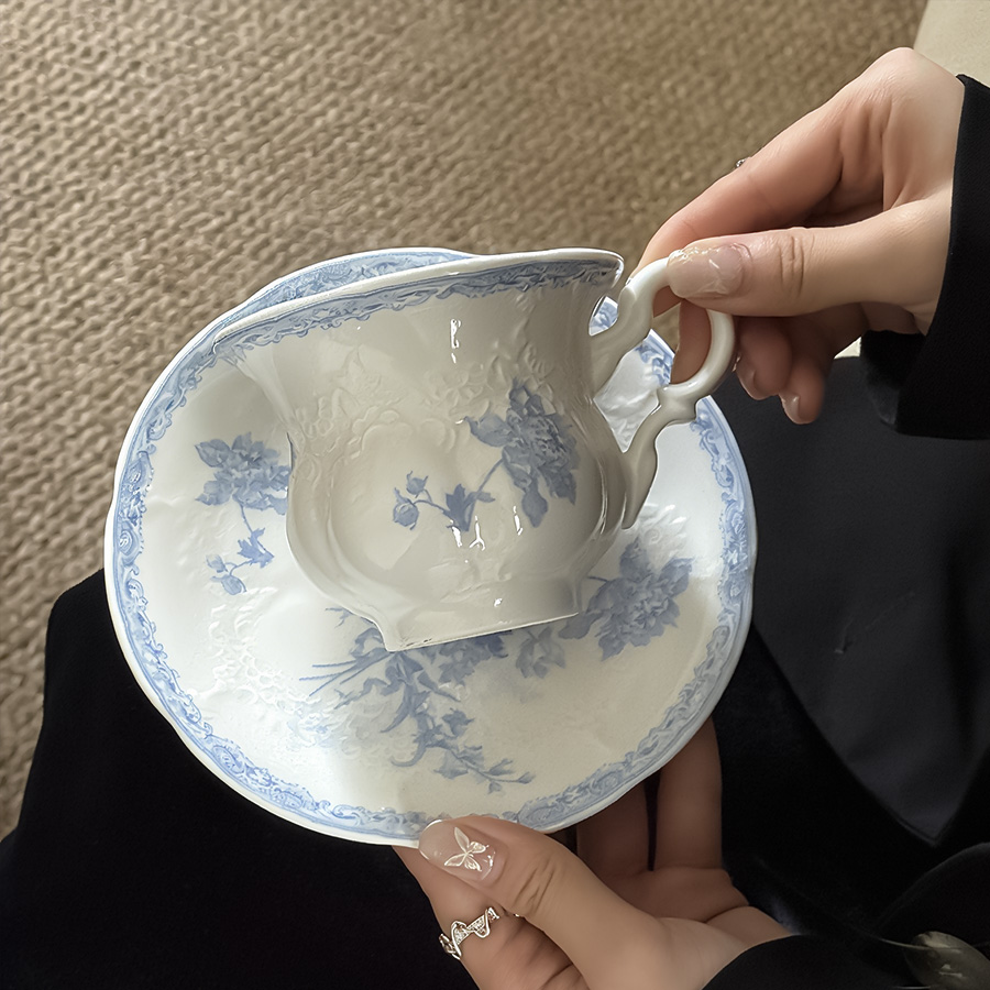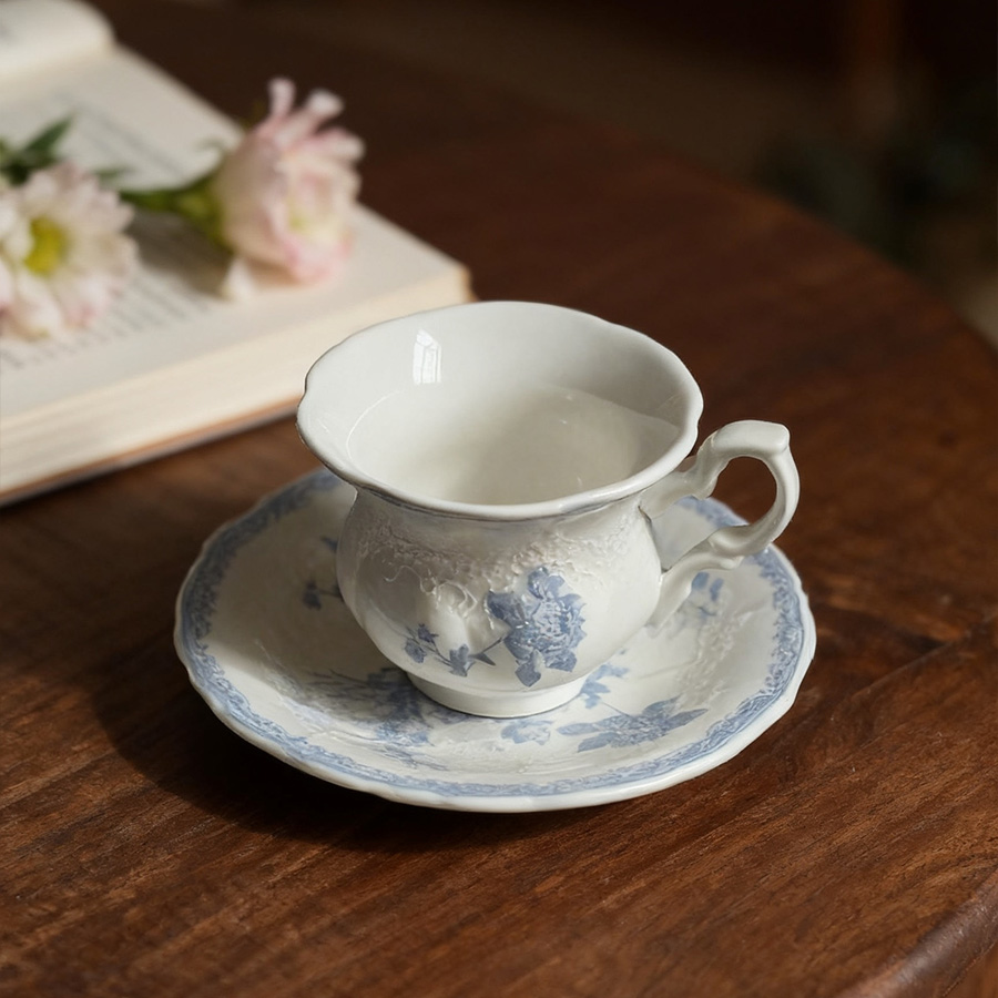 陶瓷杯 浮雕碎花