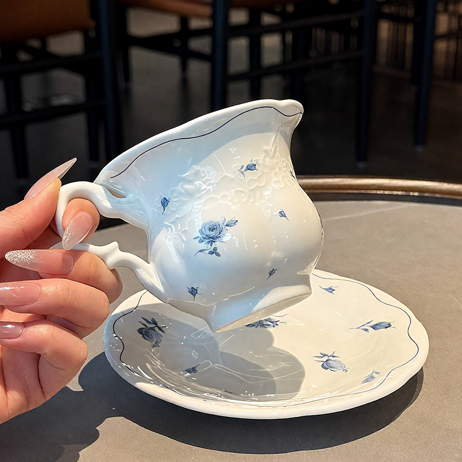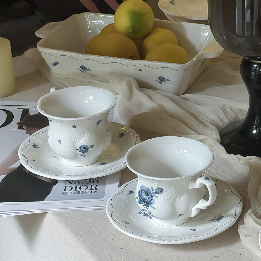 杯碟 蓝色玫瑰