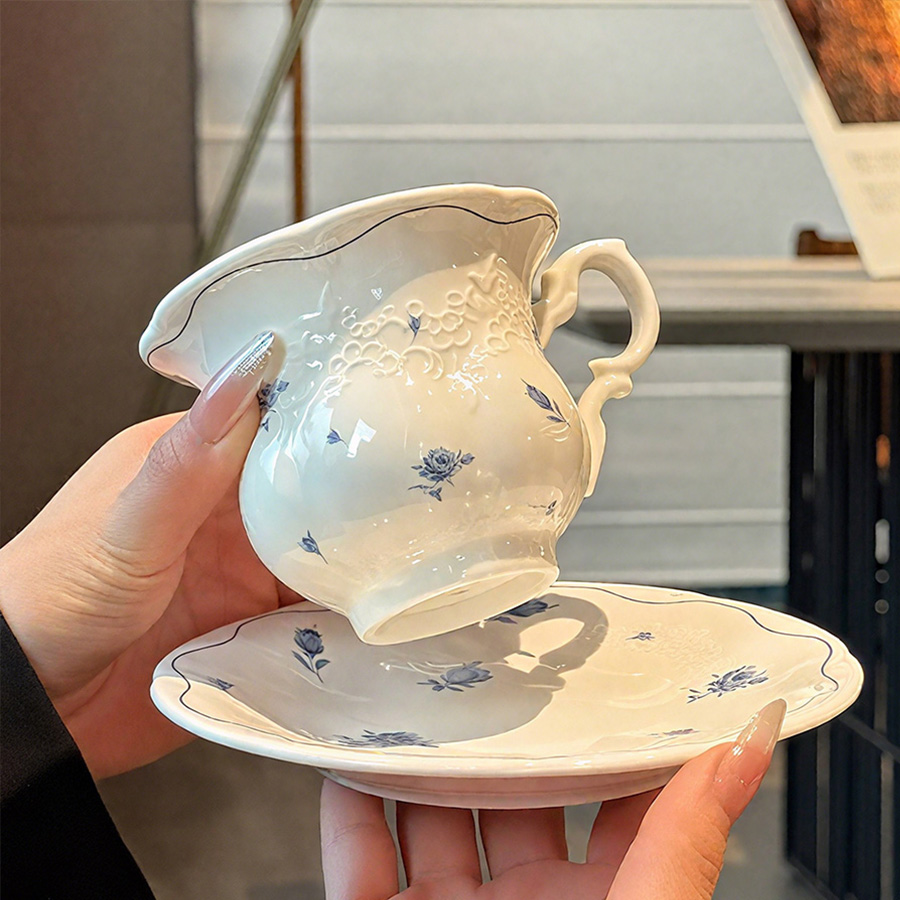 陶瓷杯 浮雕碎花
