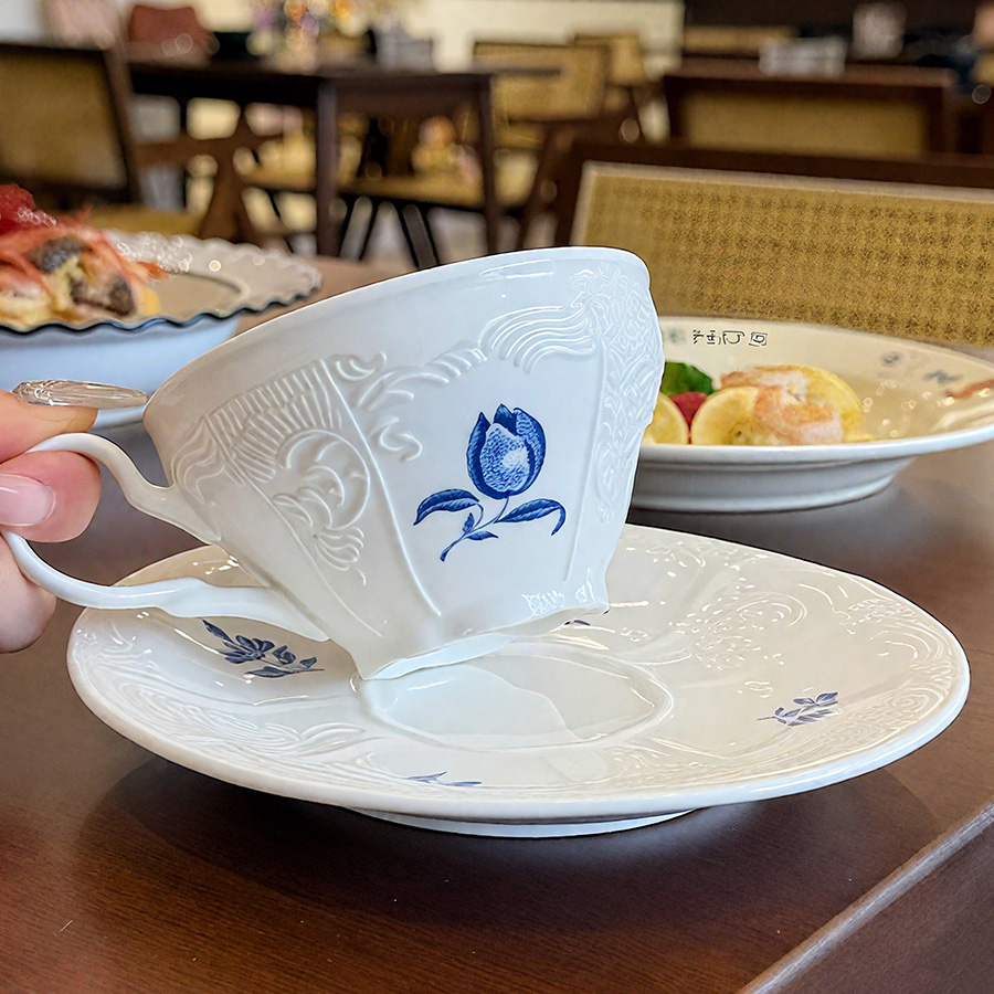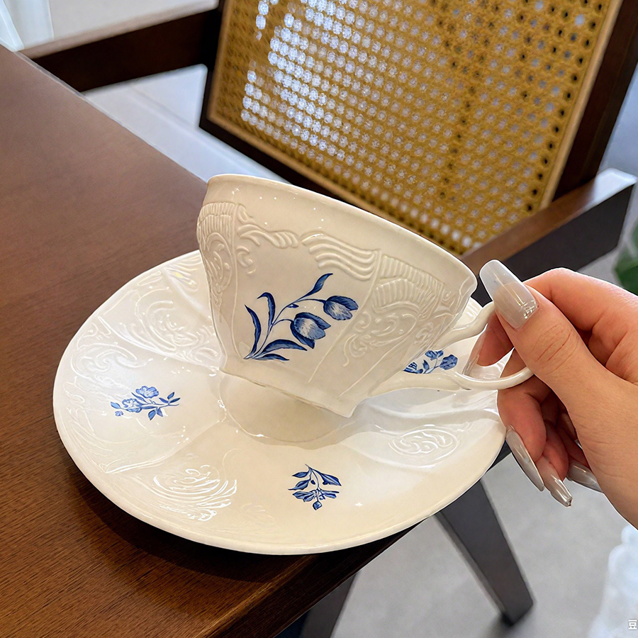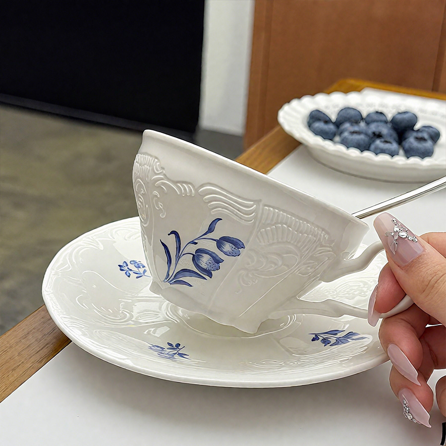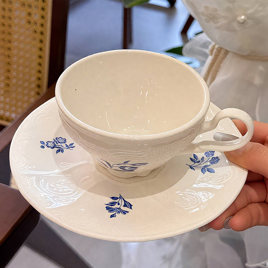 杯碟 复古蓝花