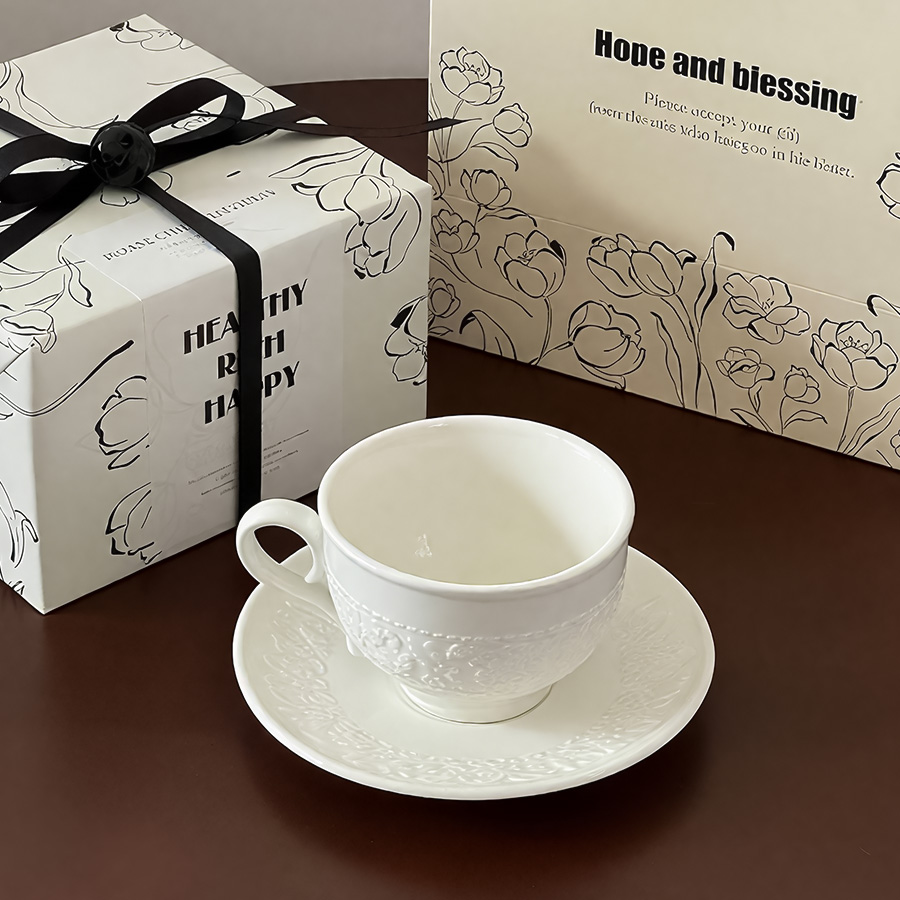 陶瓷杯 浮雕碎花