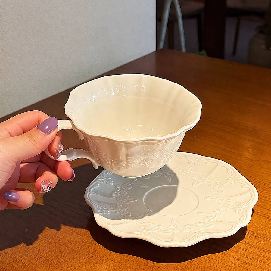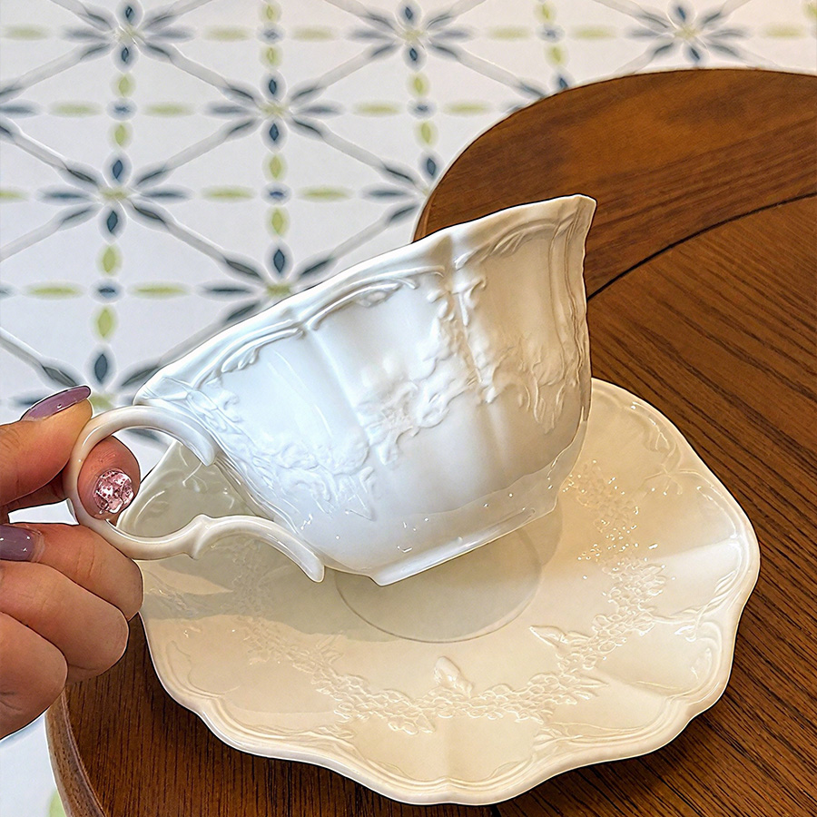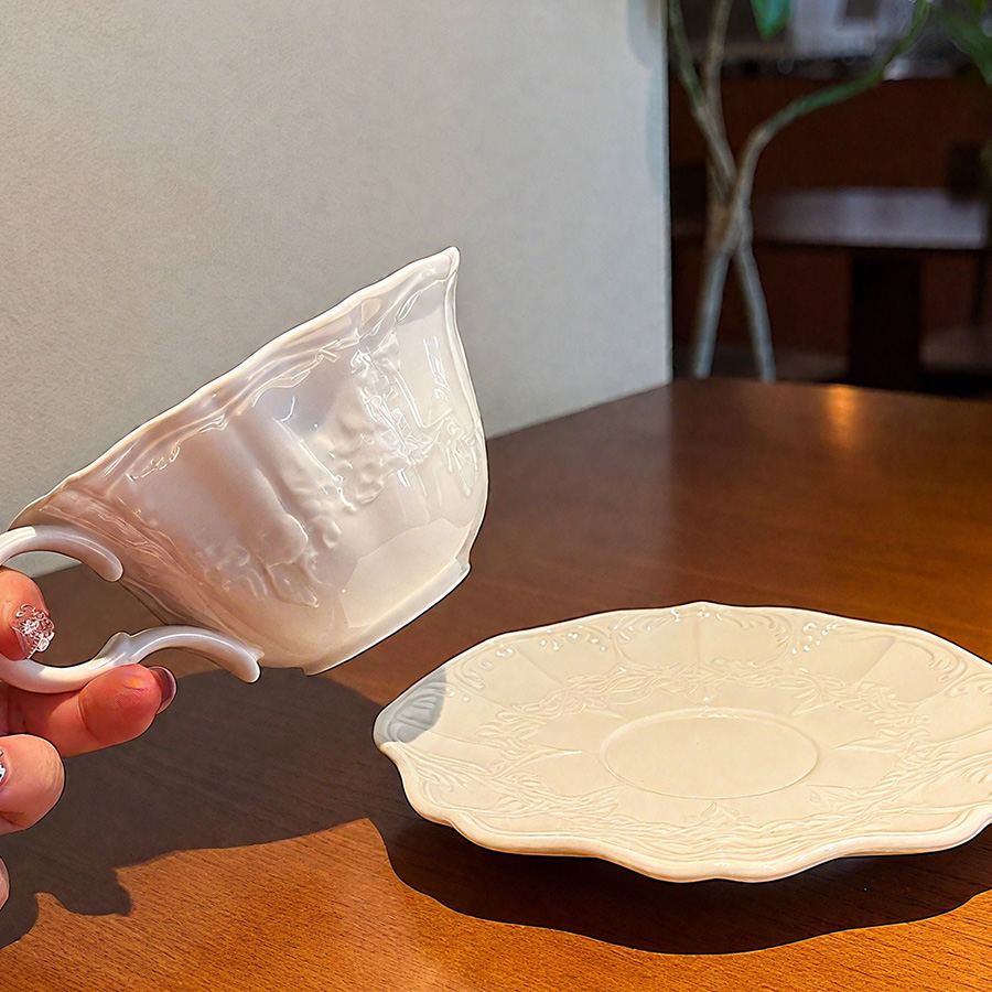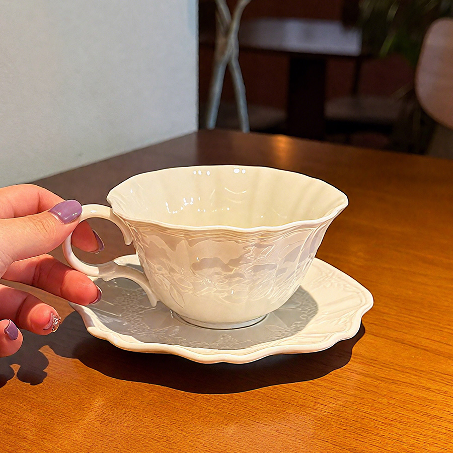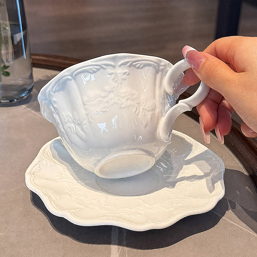 陶瓷杯 浮雕碎花