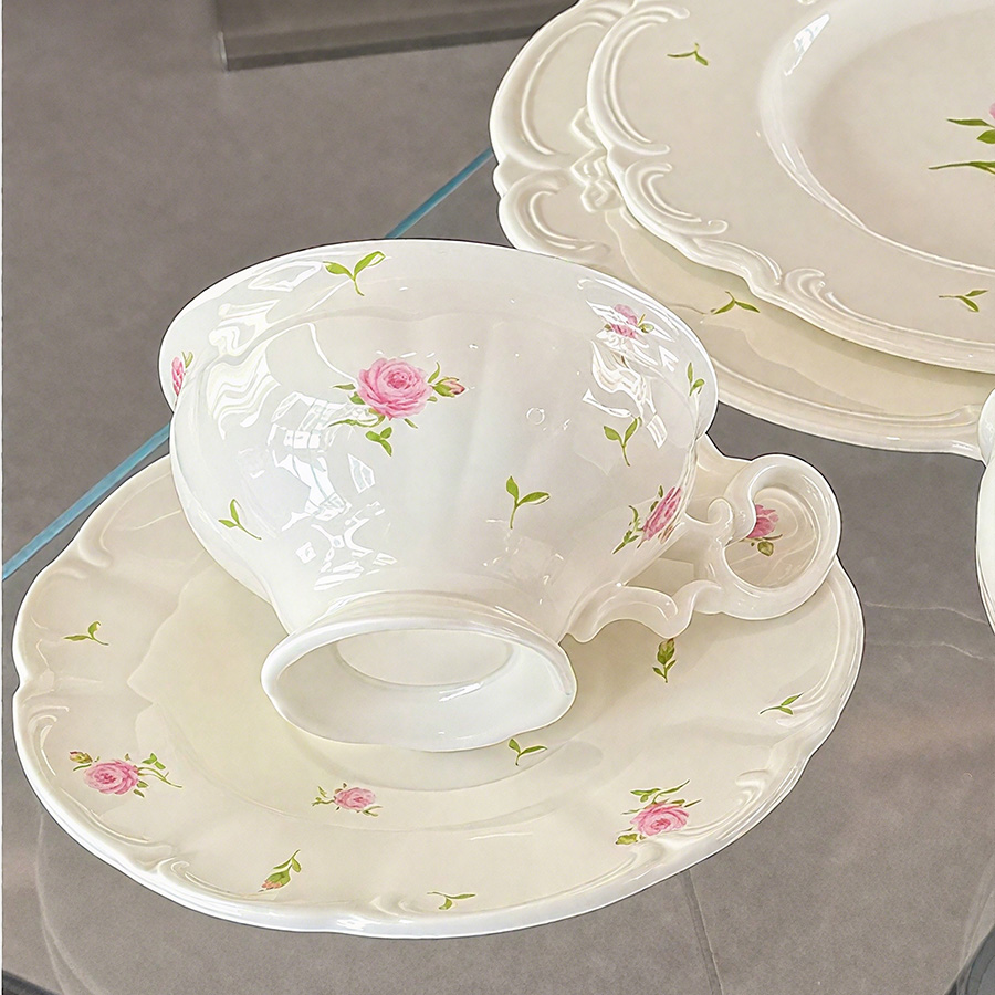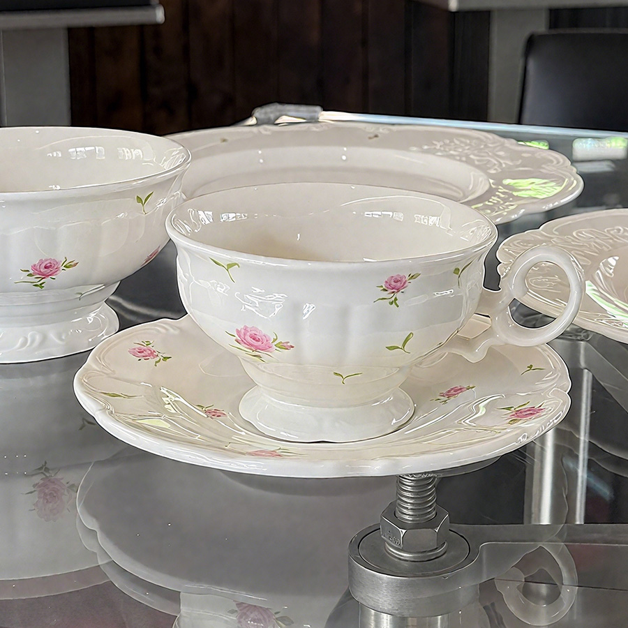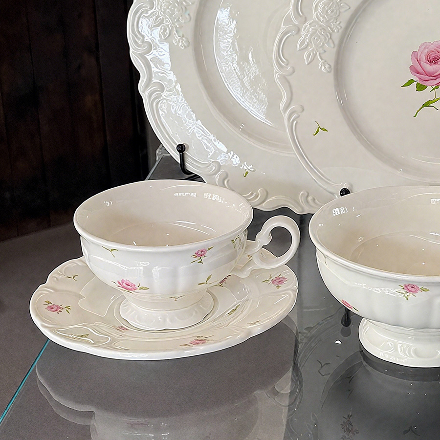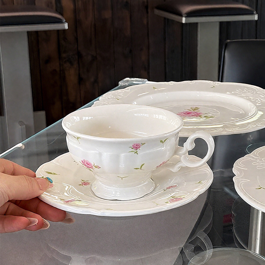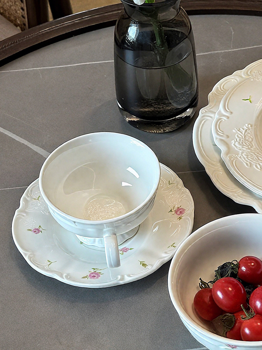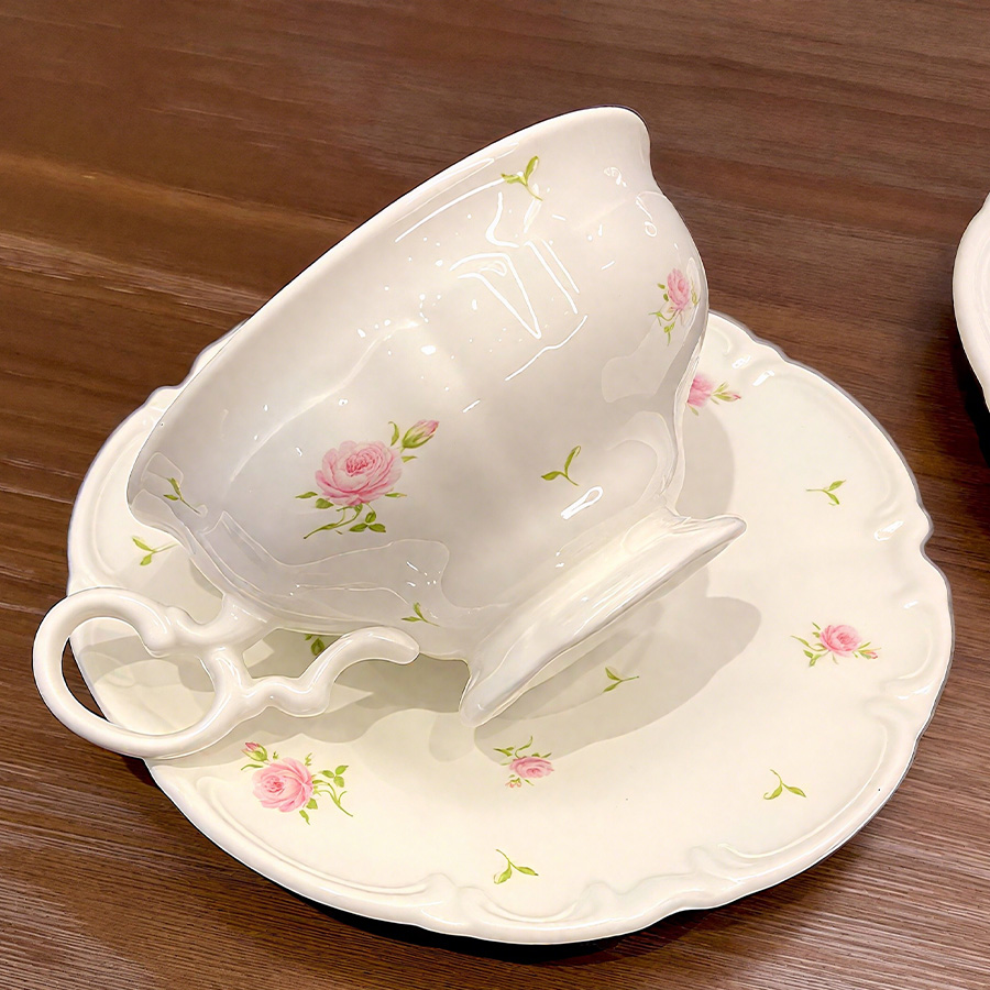 杯碟 花边粉玫瑰