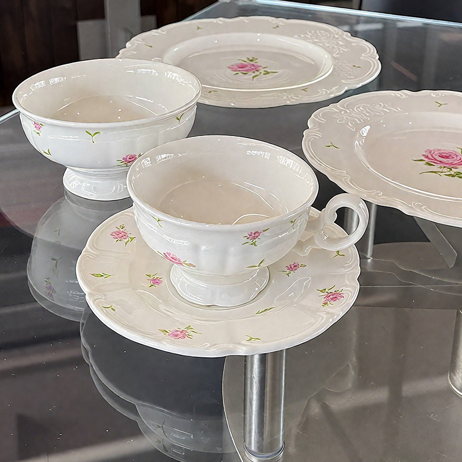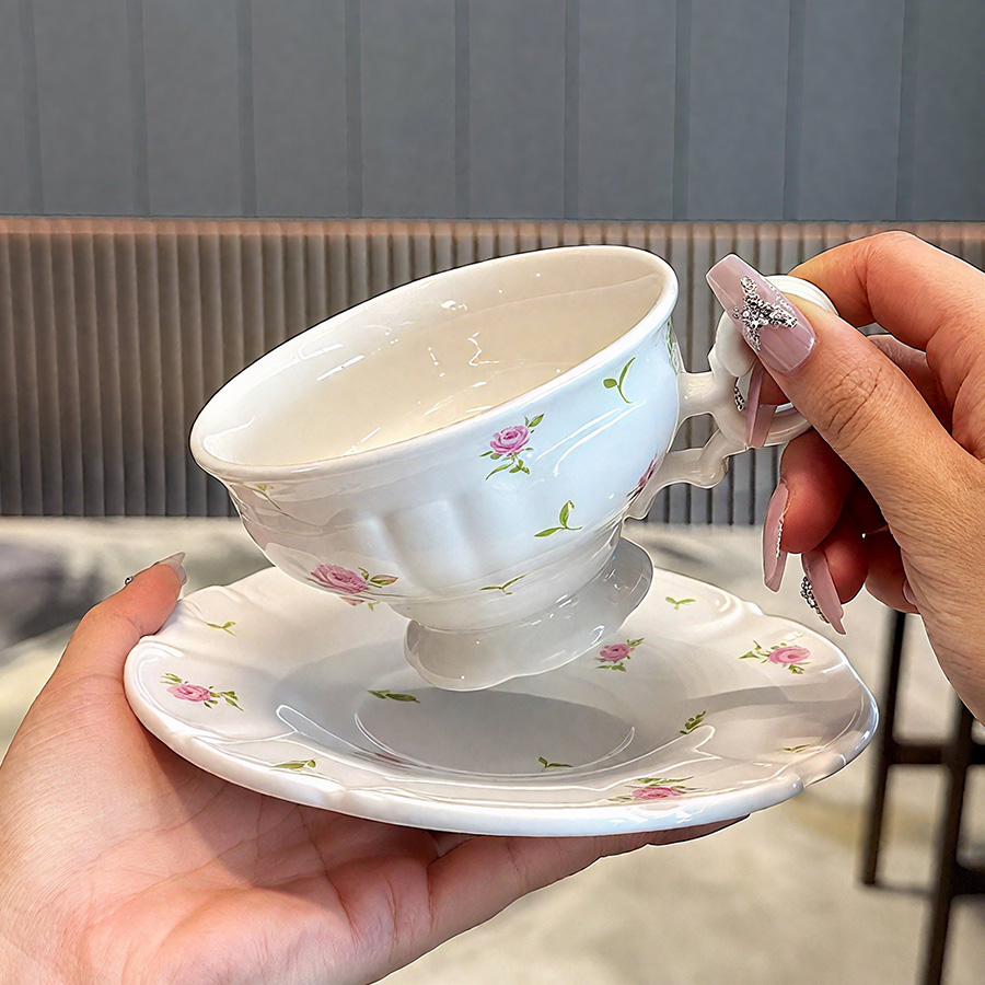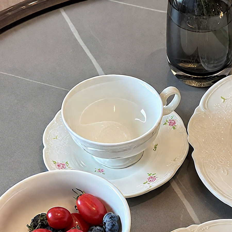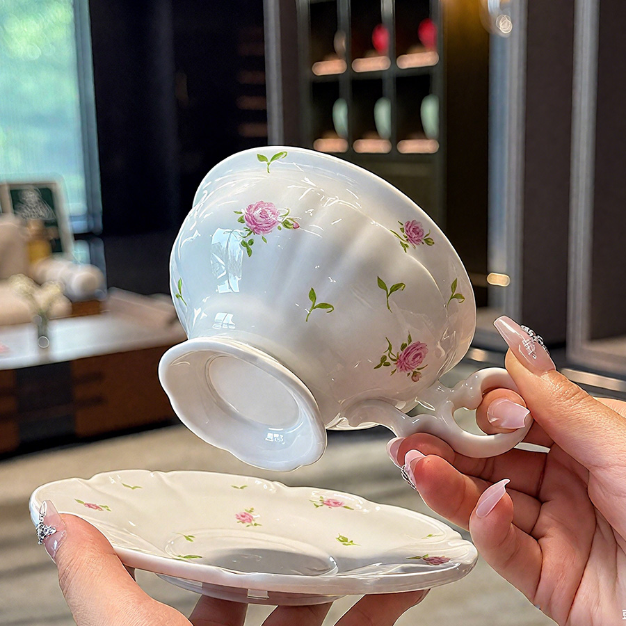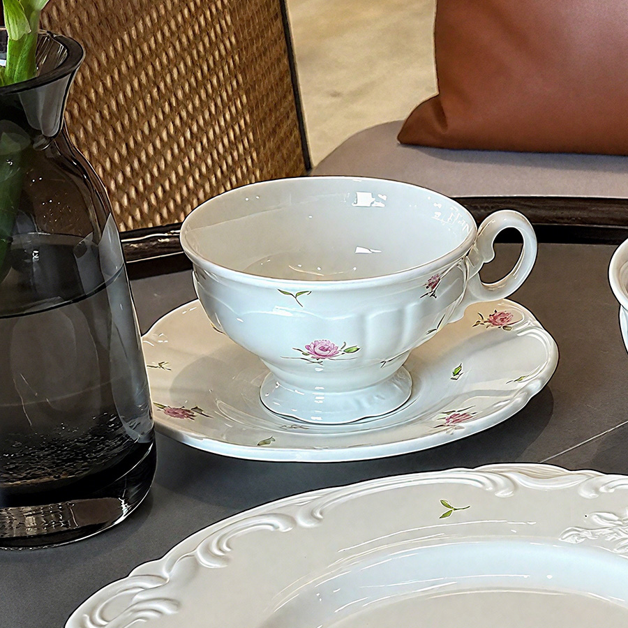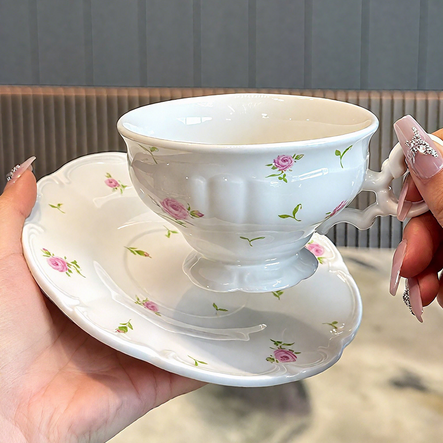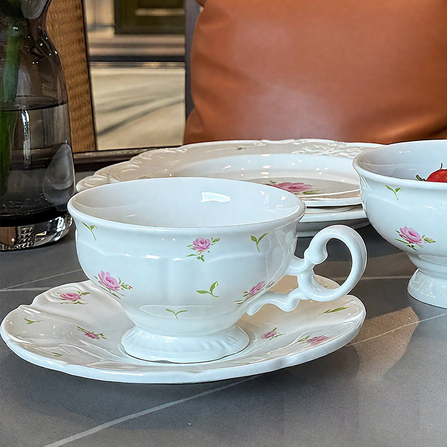 杯碟 花边粉玫瑰