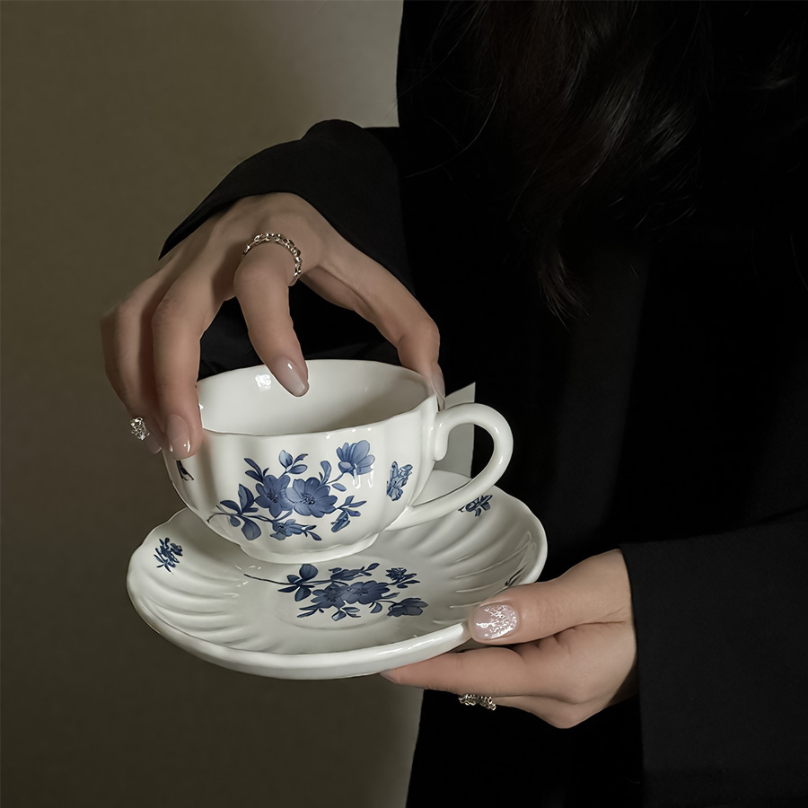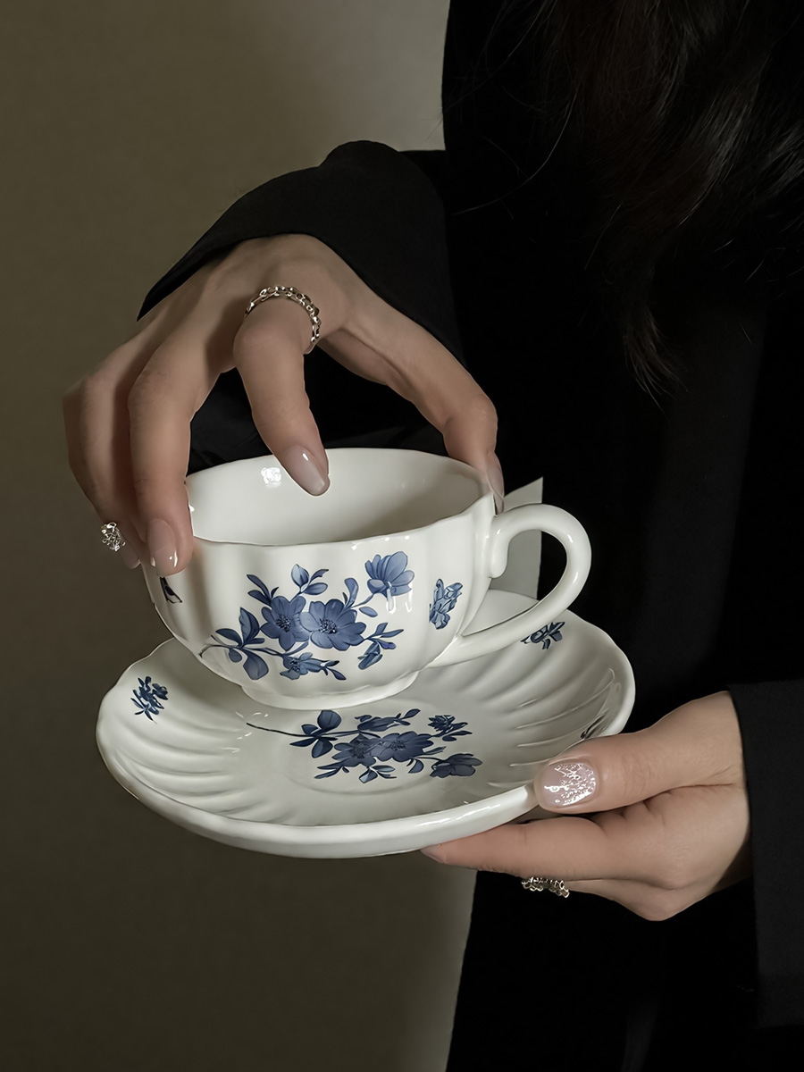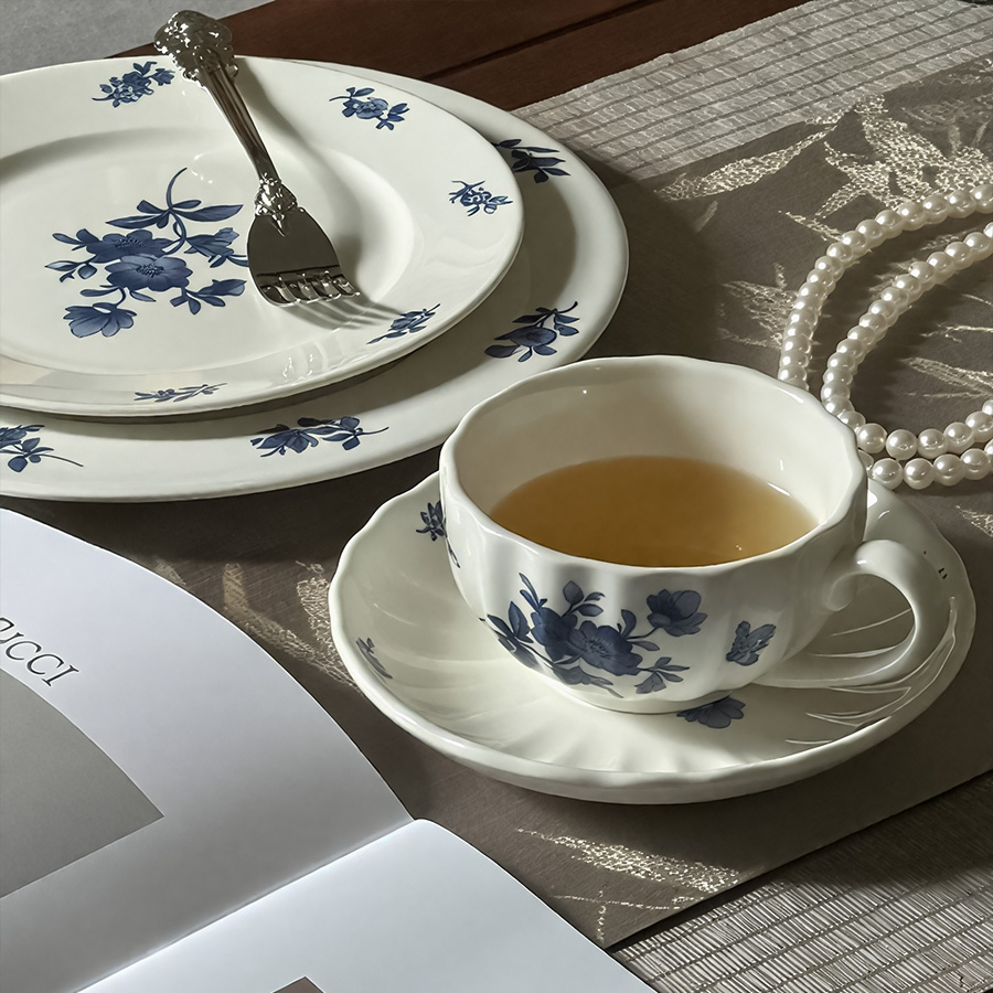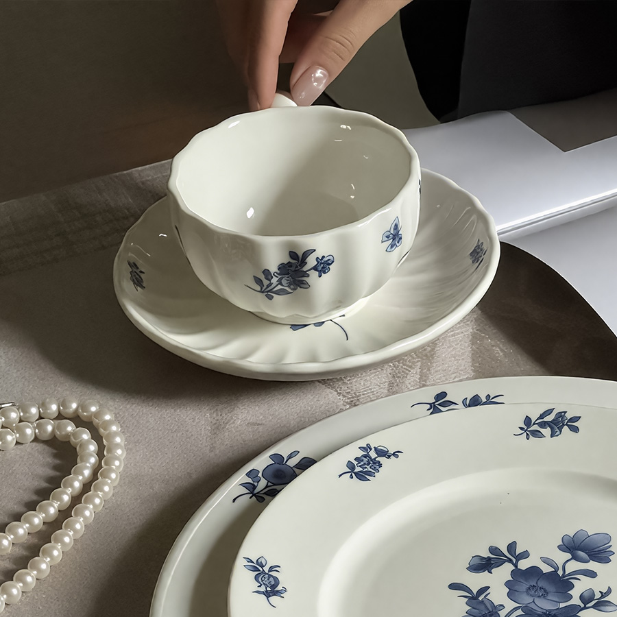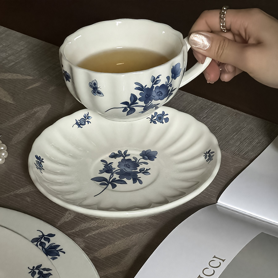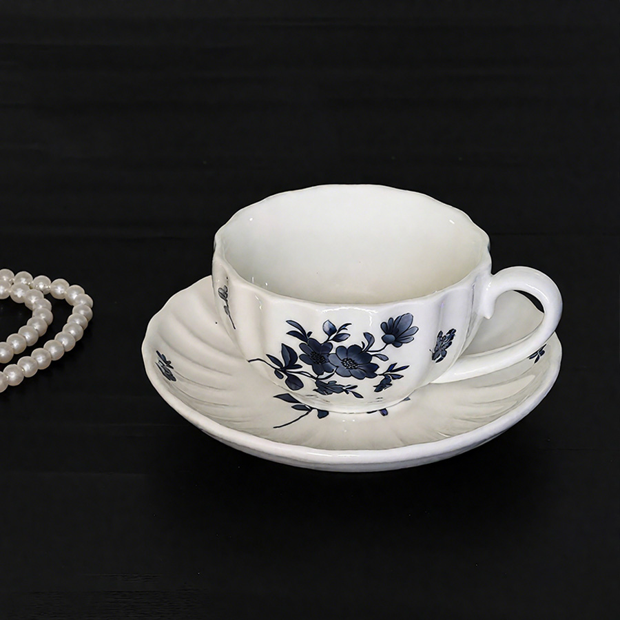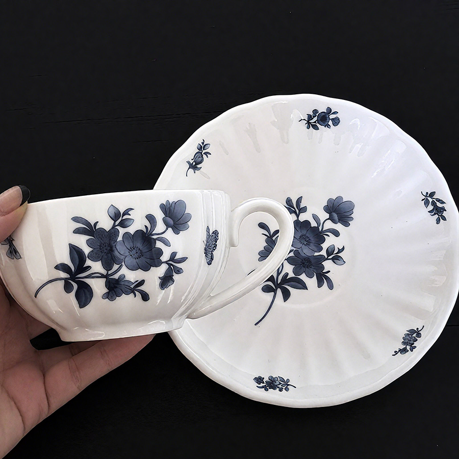 杯碟 波浪蓝花