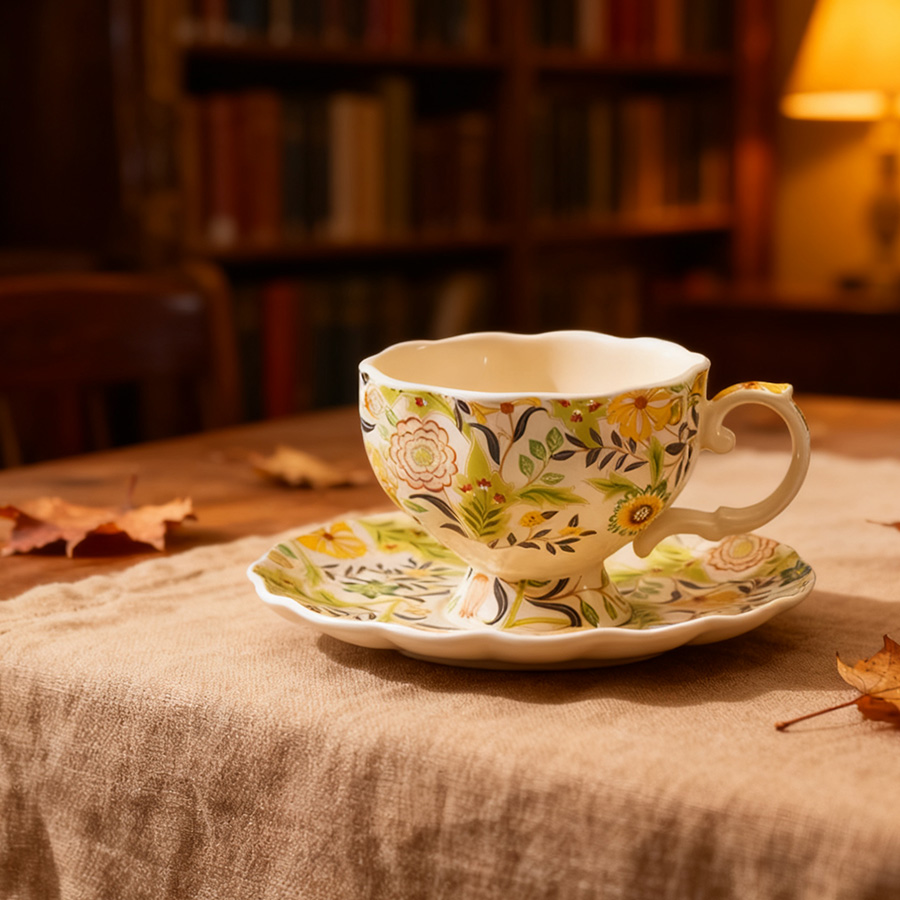 陶瓷杯 浮雕碎花