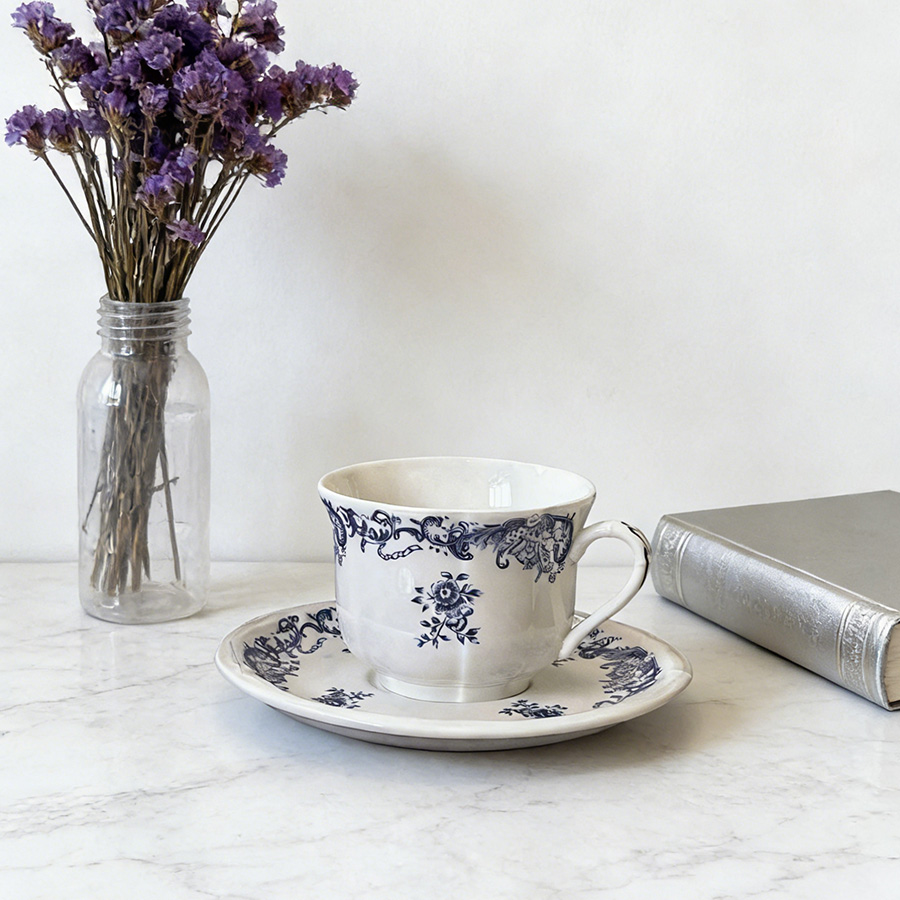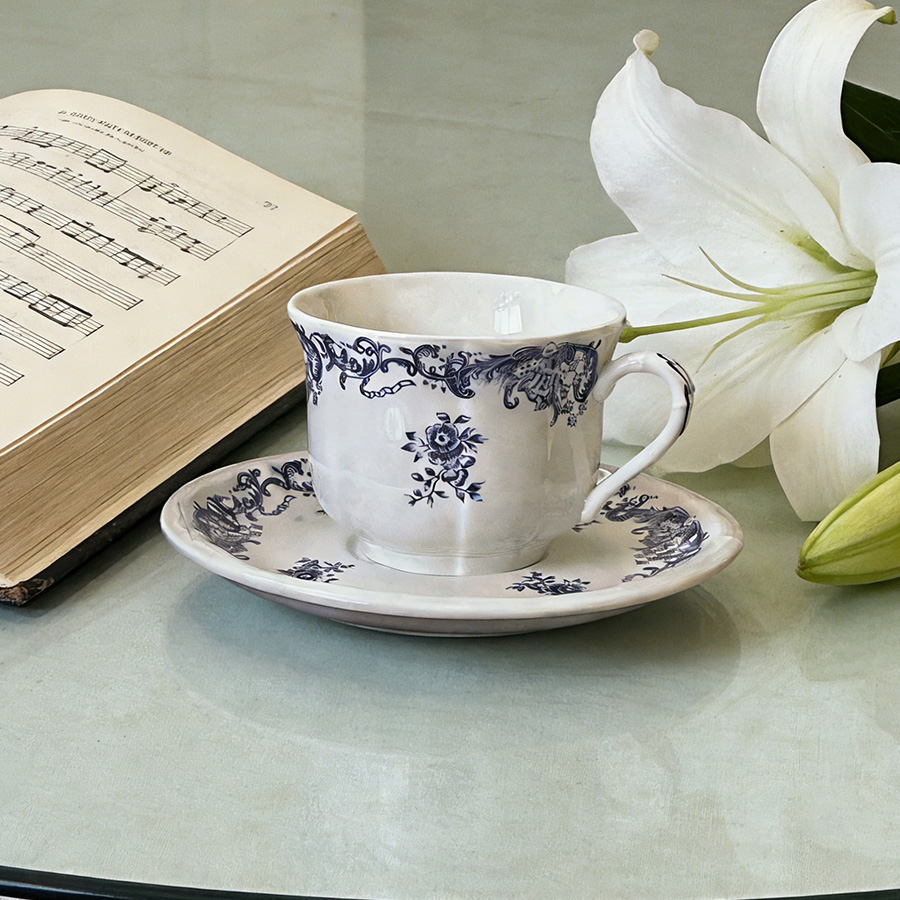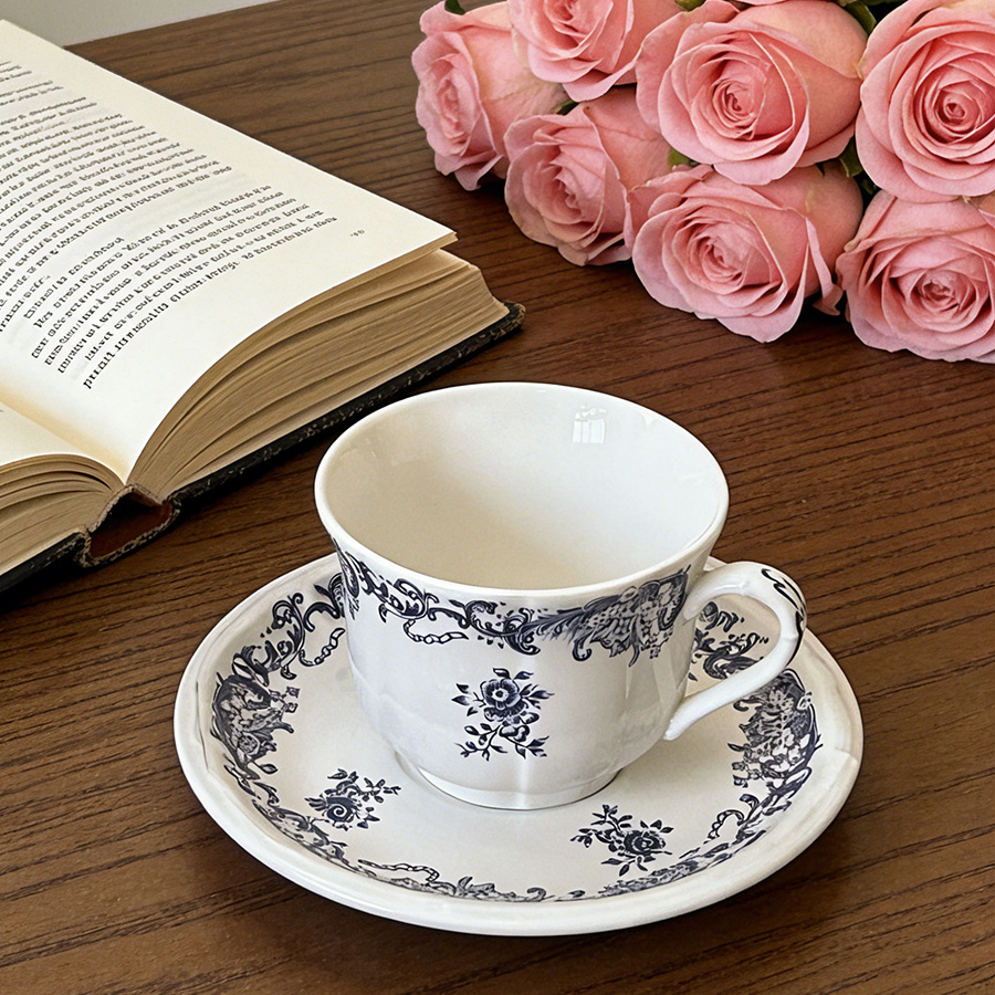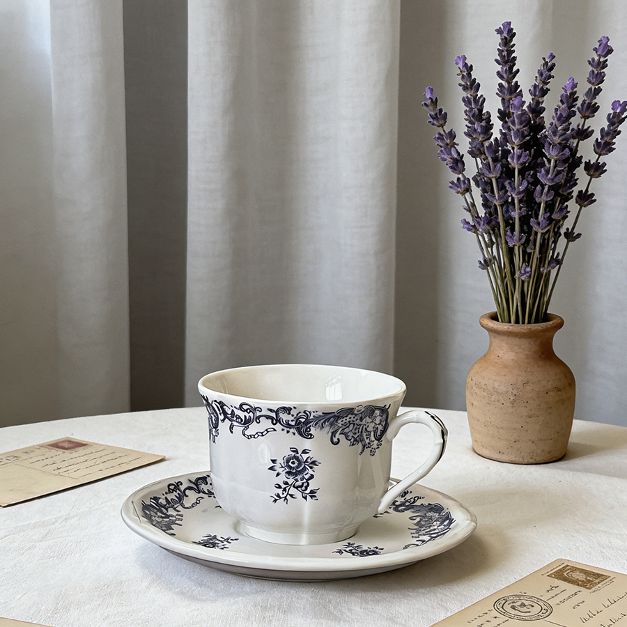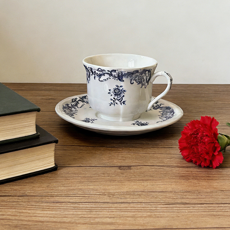 杯碟 复古蓝色花