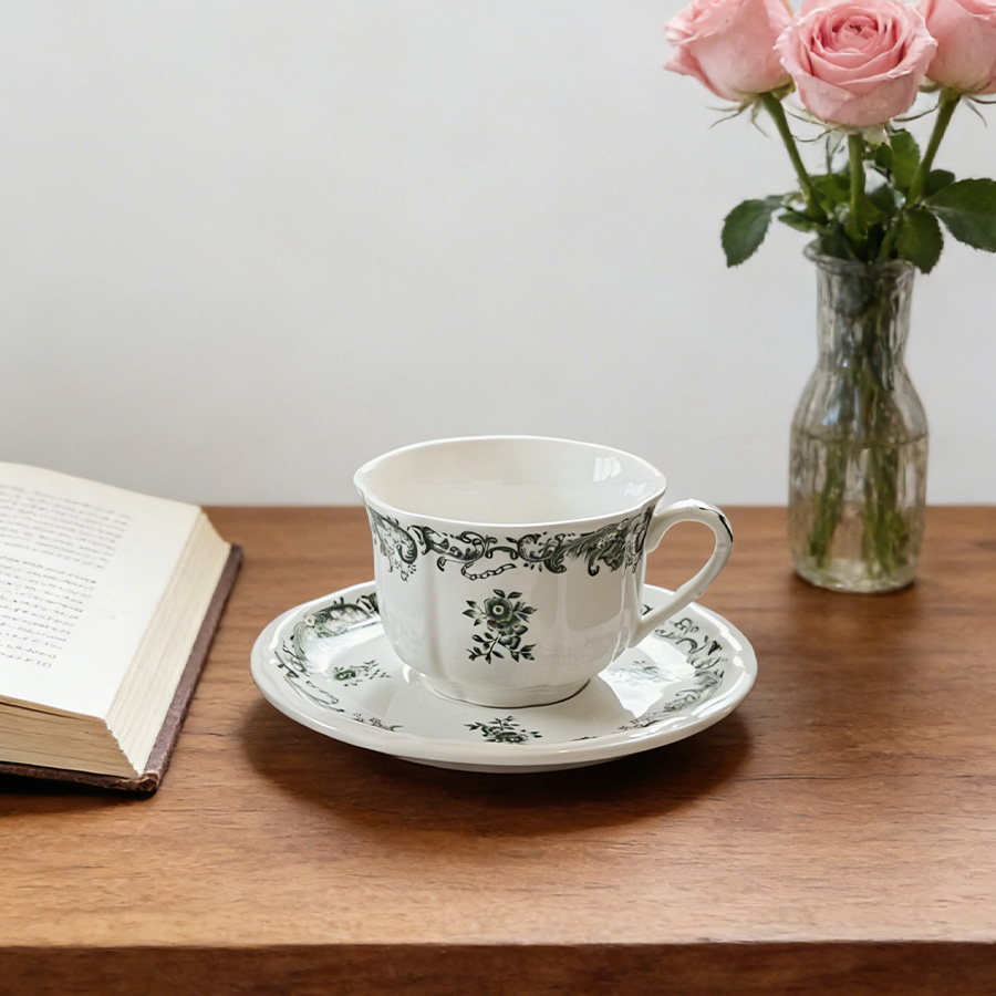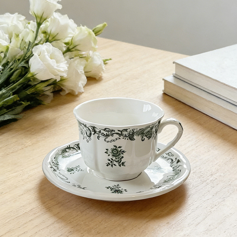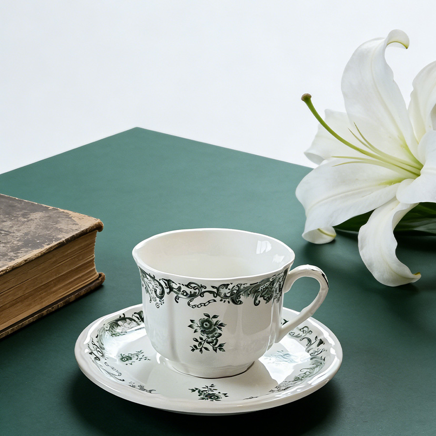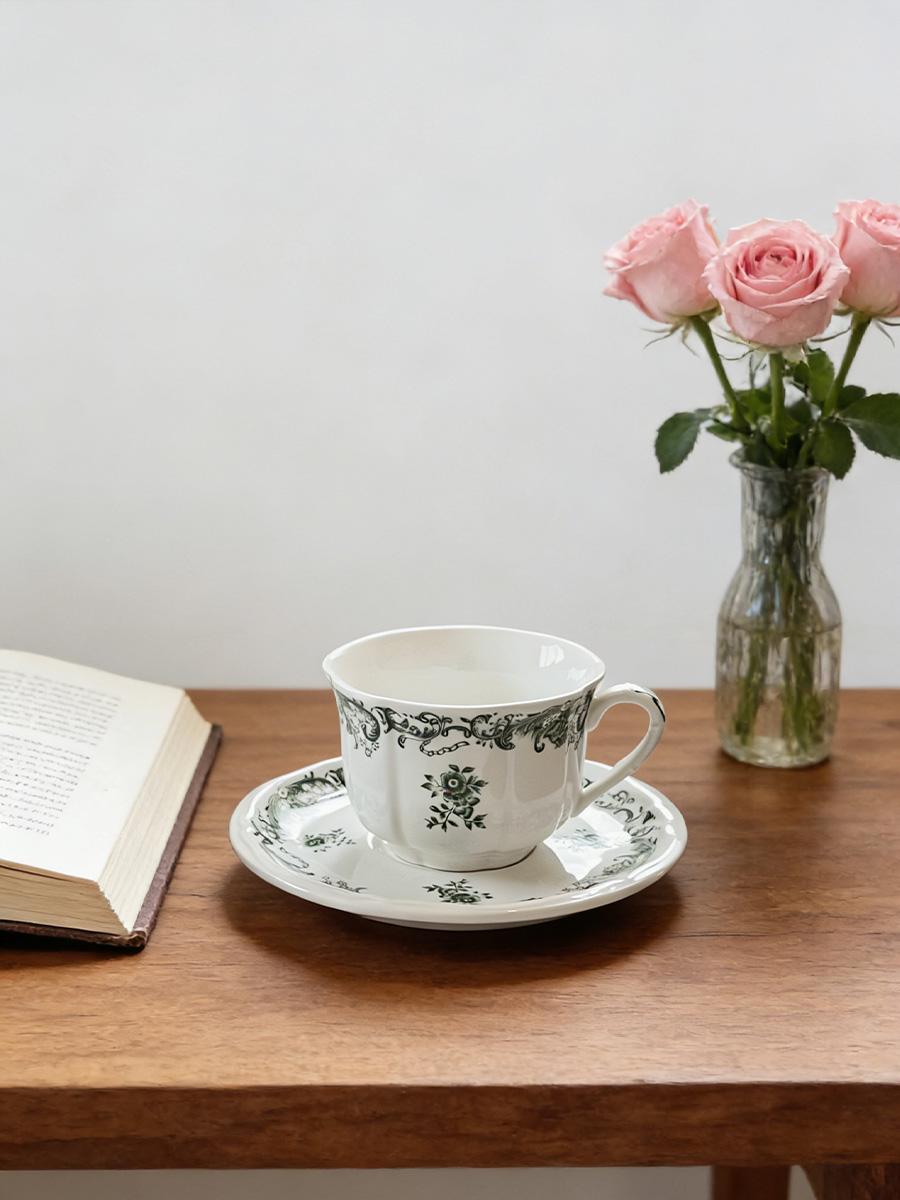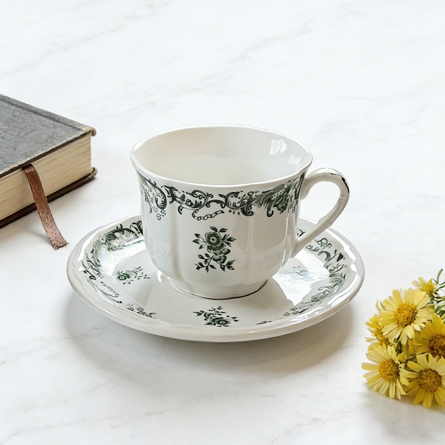 杯碟 复古绿花
