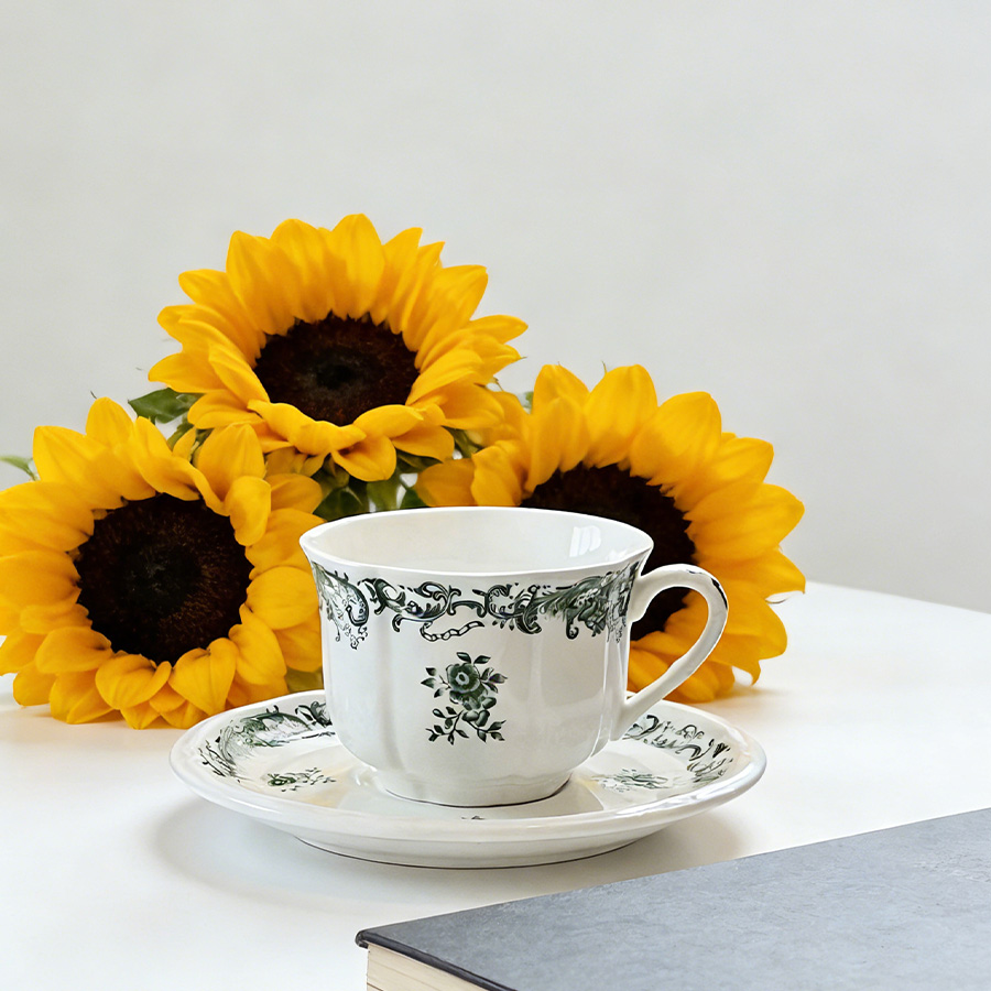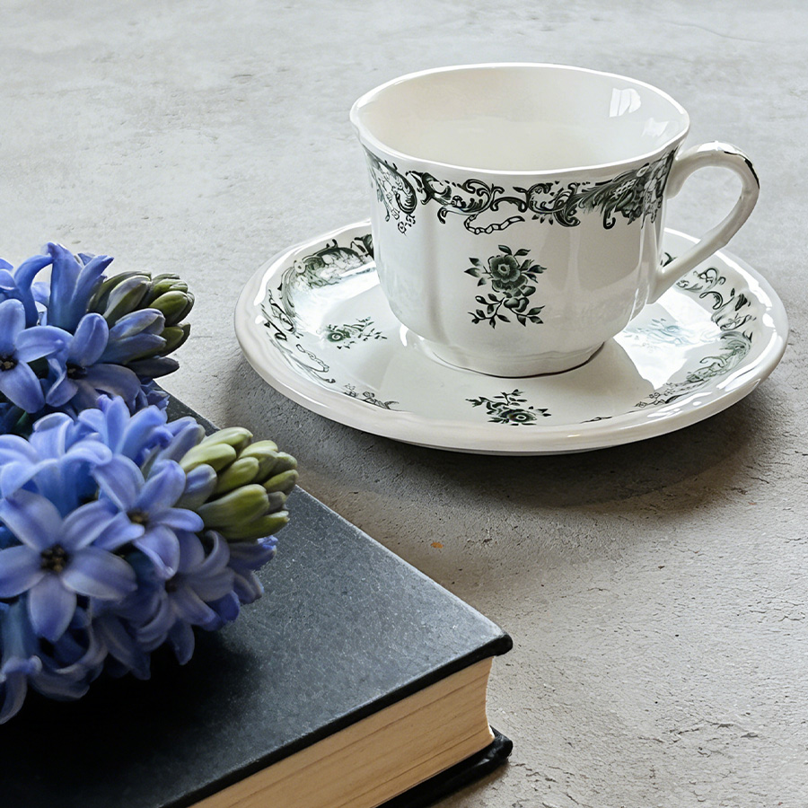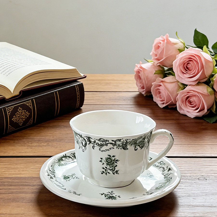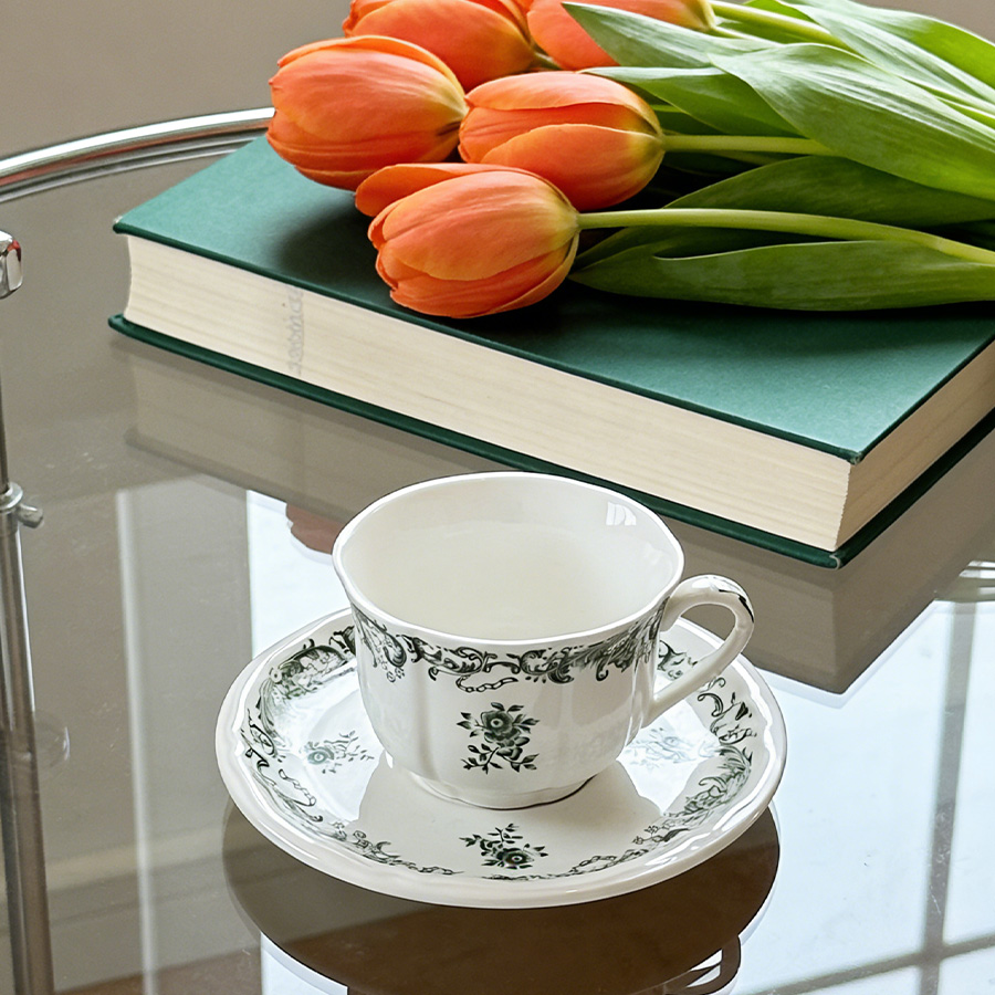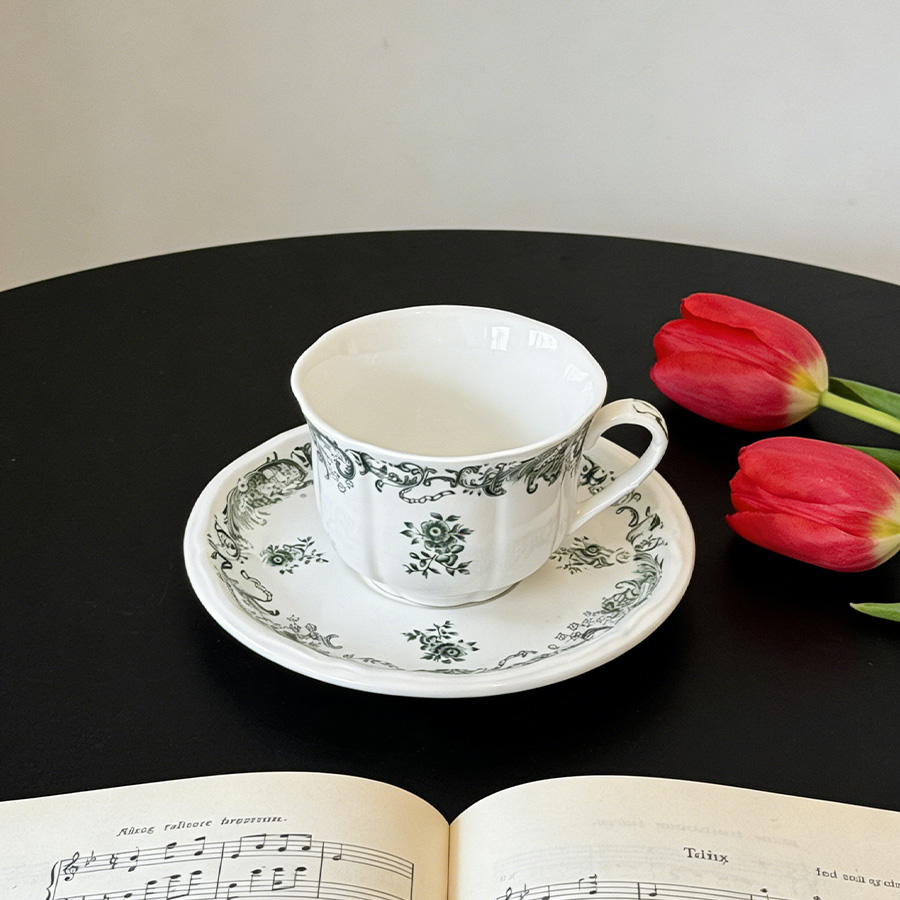 杯碟 复古绿花