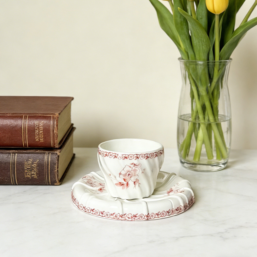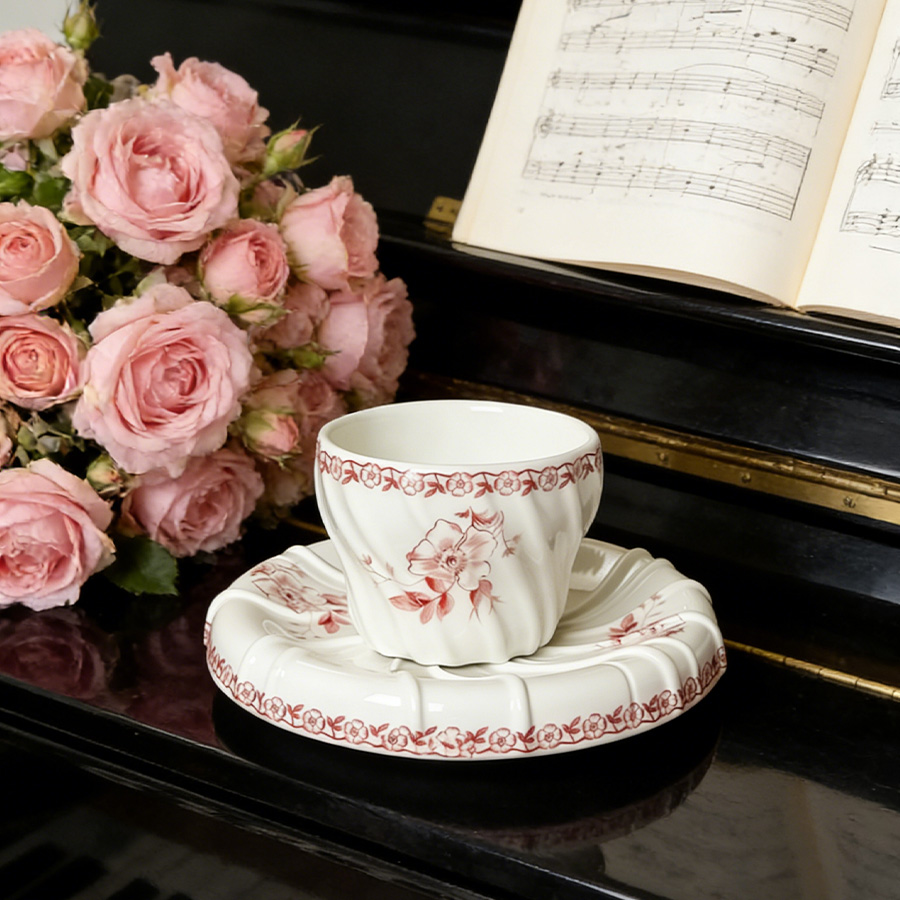 杯碟 法式复古海棠花