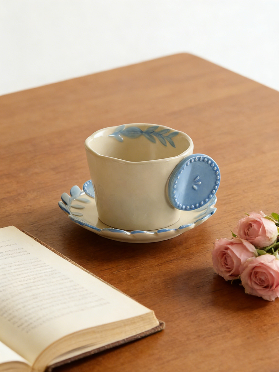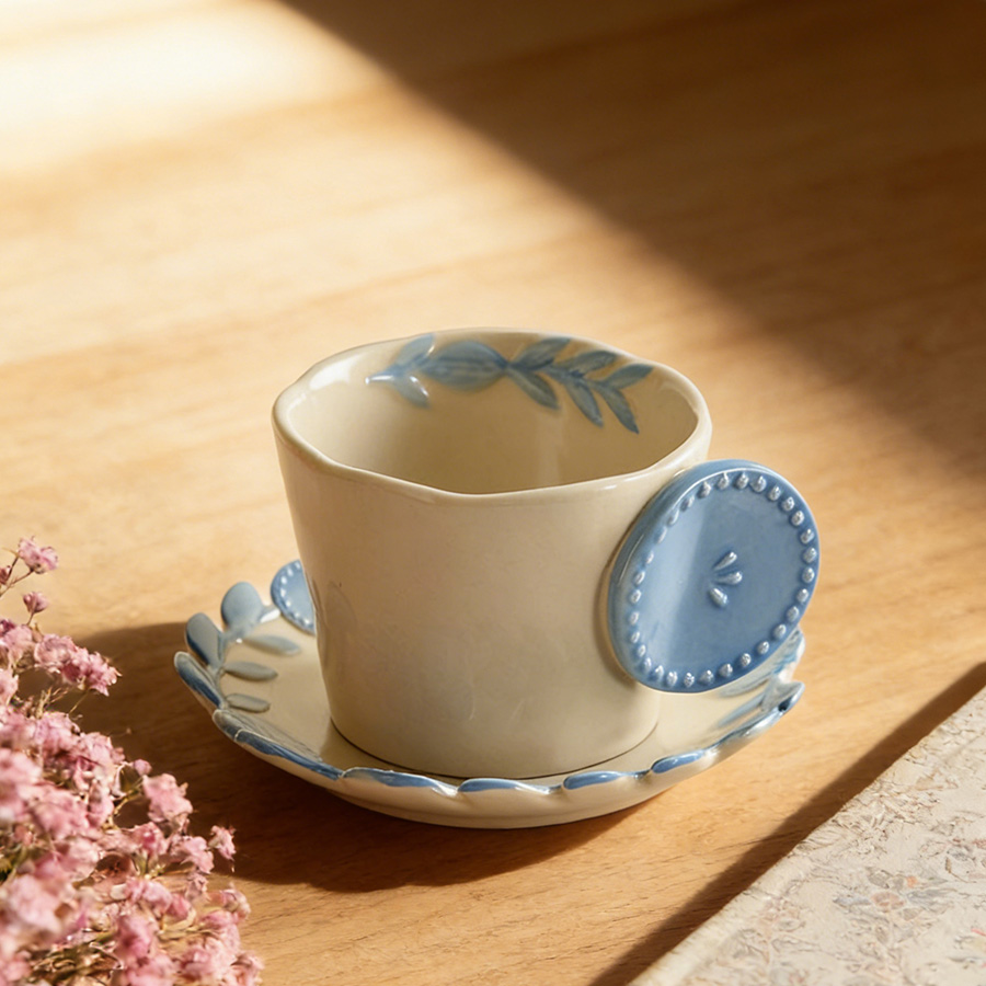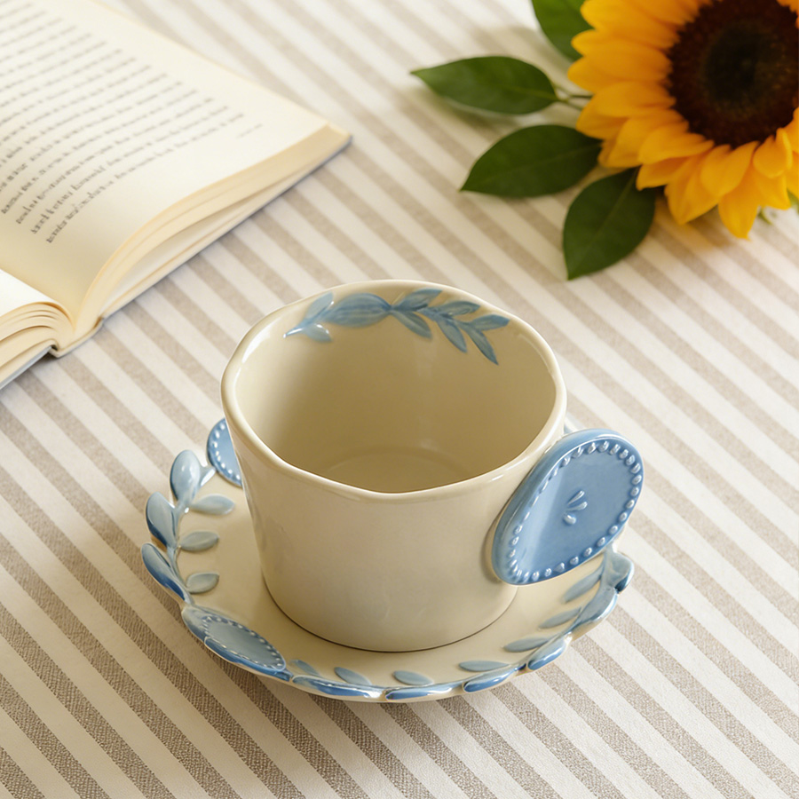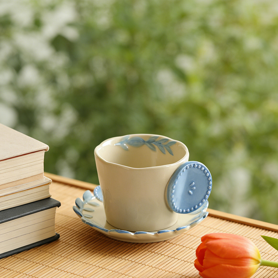 陶瓷杯 浮雕碎花