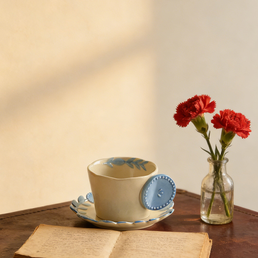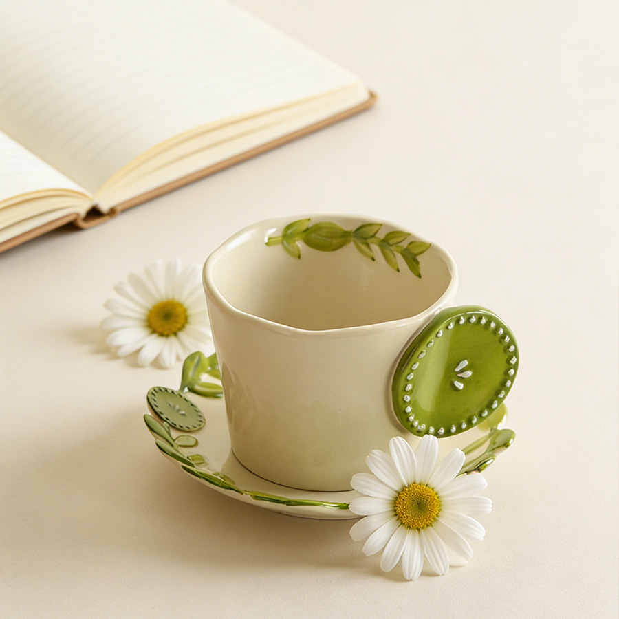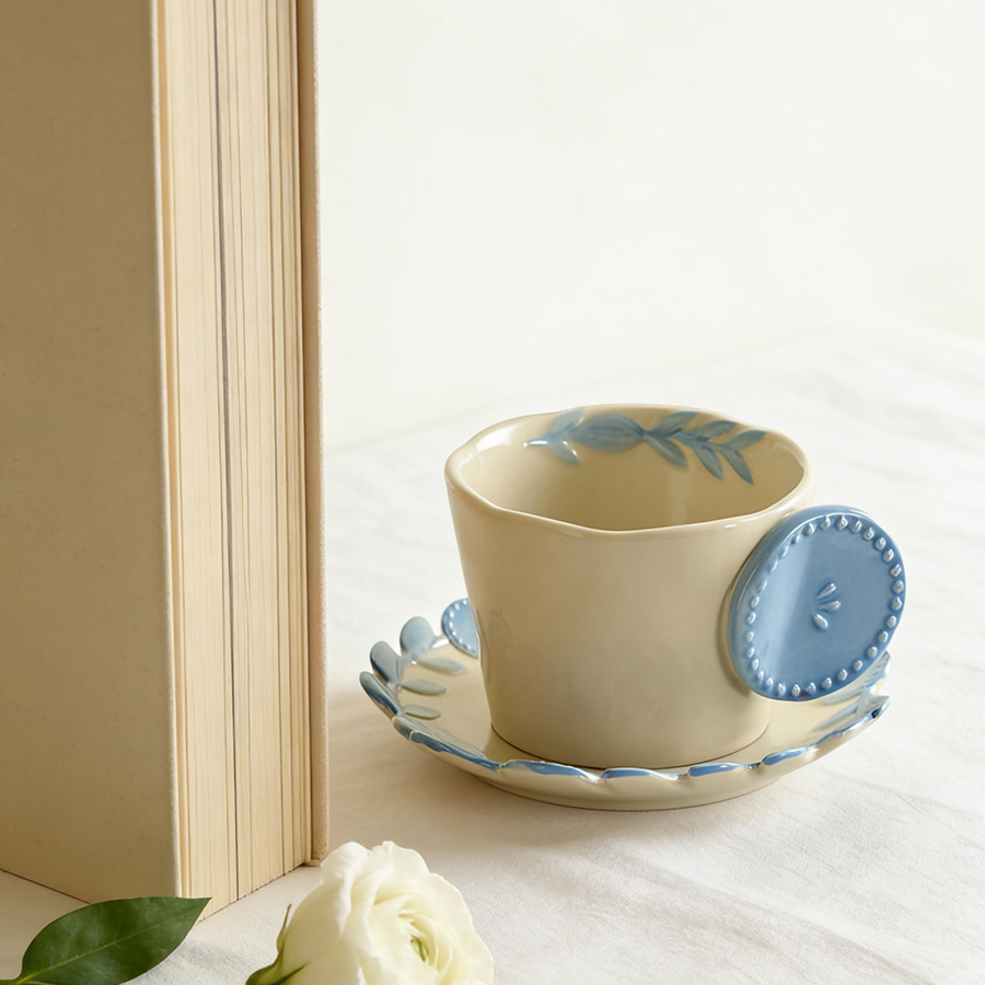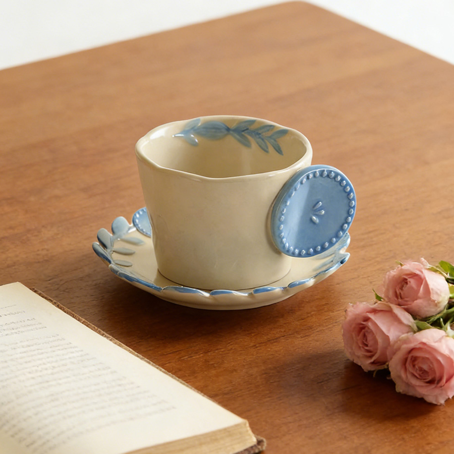 陶瓷杯 浮雕碎花