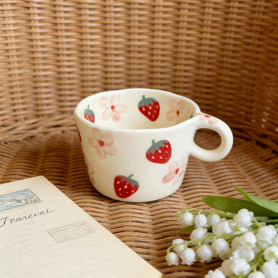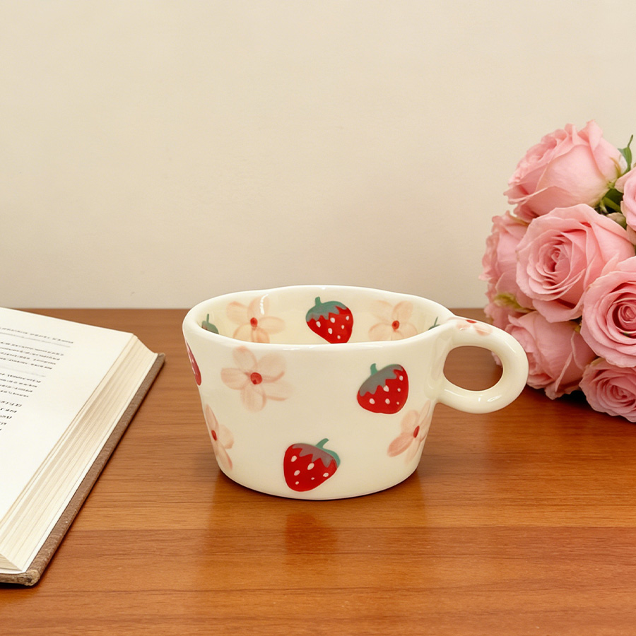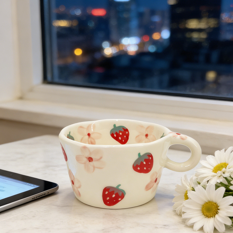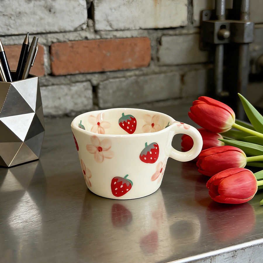 陶瓷杯 梯形草莓花