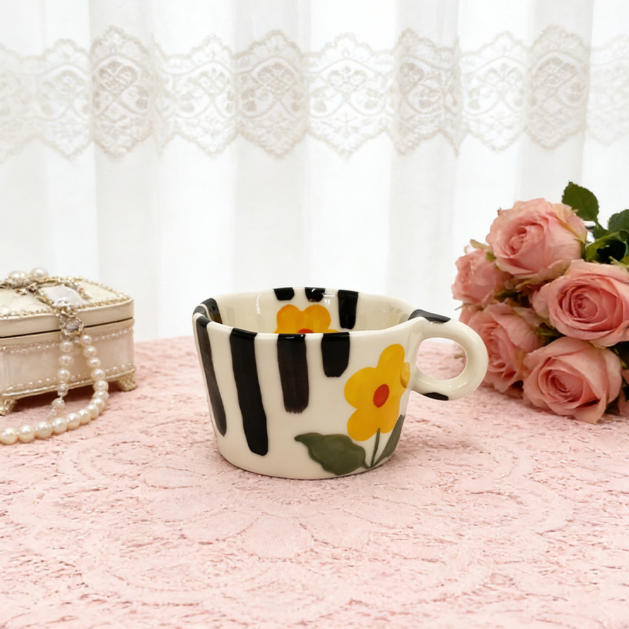 陶瓷杯 浮雕碎花